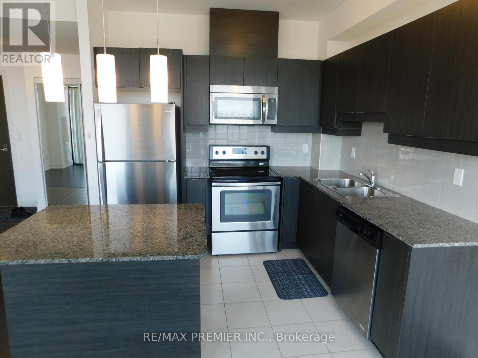 Welcome to Expo City 2! One of Vaughan's most prestigious condominium developments within walking distance to Vaughan Metropolitan Centre Subway! Very spacious one bedroom plus large den, approximately 746 sq ft with ensuite laundry. Upgraded kitchen with granite countertop, contemporary ceramic backsplash, stainless steel appliances. Desirable southern exposure with open balcony. Enjoy the convenience of 1 parking spot and a locker! State of the Art Amenities include theatre room, party room, roof top garden, indoor swimming pool, sauna, guest suites, and 24 hr Concierge! Great Value for a busy executive! Recently painted making this unit move-in ready. **EXTRAS** 1 Parking + Locker, 746 sq.ft. (id:50787)