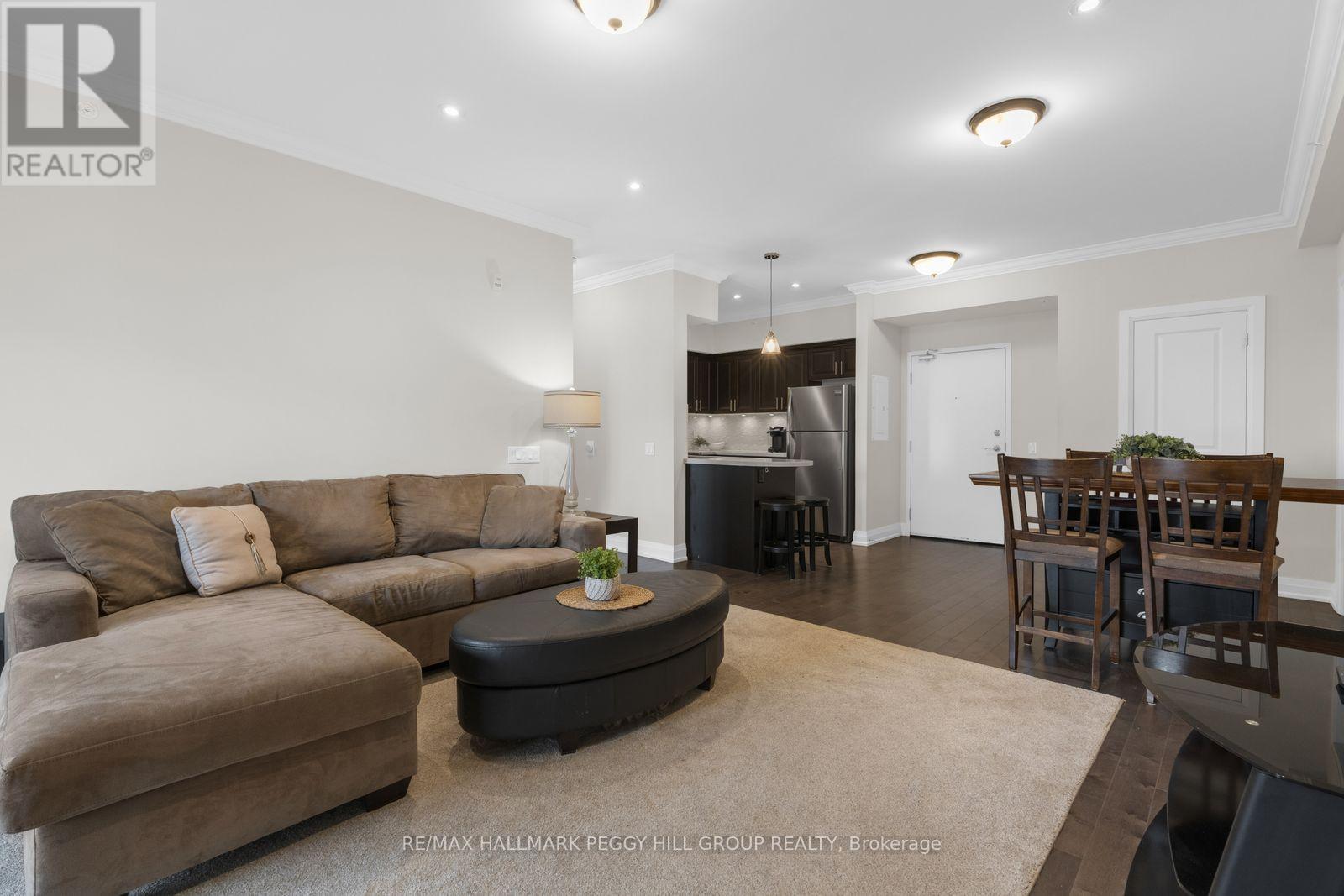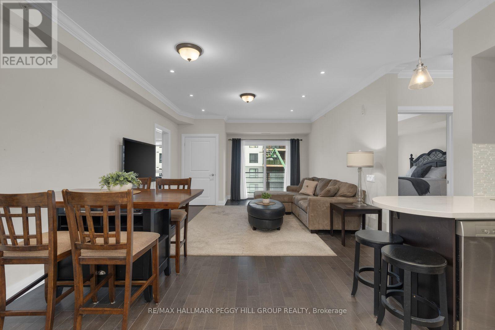 BRIGHT 2-BEDROOM CONDO WITH MODERN FINISHES, UNDERGROUND PARKING, A LOCKER, & IN-SUITE LAUNDRY! Instead of spending weekends cutting the grass or shovelling snow, enjoy your time on the rooftop terrace, at nearby beaches, or in the comfort of your modern condo. Located at 306 Essa Road, Unit 407 in Barrie's desirable Ardagh neighbourhood, this 2-bedroom, 1-bath suite offers just over 1,000 sq. ft. with a well-planned layout and an open-concept kitchen, dining, and living area designed for easy everyday living. Neutral finishes, crown moulding, 9-foot smooth ceilings, and pot lights give the space an updated feel, while easy-care laminate flooring carries through the main living area. The kitchen features stainless steel appliances, quartz countertops, under-cabinet lighting, and a mosaic tile backsplash, while a patio door walkout leads from the living room to the spacious covered balcony, where BBQs are permitted. Bedrooms are positioned on opposite sides of the unit for added privacy and are served by a well-appointed 3-piece bathroom. In-suite laundry with additional storage space, one underground parking spot, and an owned locker add convenience where it counts. Building amenities include a 12,000 sq. ft. rooftop terrace with breathtaking views, a community BBQ area, and ample visitor parking. Hiking and biking trails are just steps away, while shopping, services, fine and casual dining, entertainment, public transit, GO Train service, and convenient commuter routes toward cottage country and the GTA are all close by, making this #HomeToStay an easy fit for anyone looking for low-maintenance living in a well-connected Barrie location. (id:50787)