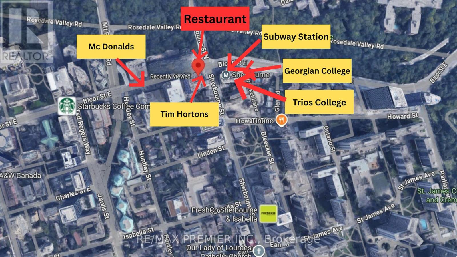 Exceptional Turnkey Restaurant Opportunity Offering A Rare Combination Of Prime Bloor Street Location, Attractive Asking Price, Competitive Rent And Strong Growth Potential. Positioned Directly Between Tim Hortons And McDonald's On The Busy Bloor Street East Corridor With Exposure To Approx. 15,000-20,000 Vehicles Daily And Thousands Of Pedestrians. Steps To Sherbourne Subway Station And Surrounded By The Extremely Dense St. James Town Community Featuring Over 19 Residential Towers And 17,000+ Residents Within Walking Distance. Short Walk To Georgian College At ILAC and Trios College Bringing Thousands Of Students To The Area Year-Round And Creating Strong Demand For Take-Out And Casual Dining. Located In A Proven Food Corridor With Consistent Lunch, Evening And Late-Night Traffic. Recently Renovated With All Equipment In Great Condition. The Buyer Can Continue The Current Concept And Branding Or Easily Convert The Space To Another Food Concept. With A Strong Established Customer Base And Competitive Rent Of $7,290 Including TMI and Hst, This Turnkey Operation Presents An Excellent Opportunity For Entrepreneurs Seeking A Profitable Business In A High-Demand Downtown Location With Significant Upside Potential. (id:50787)