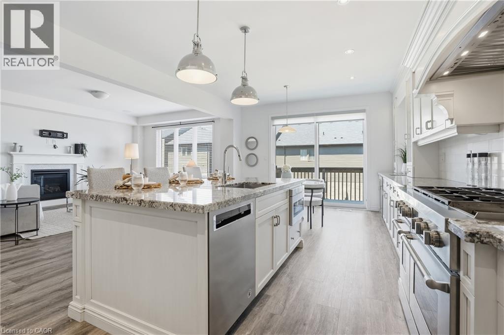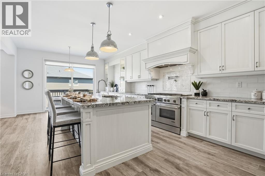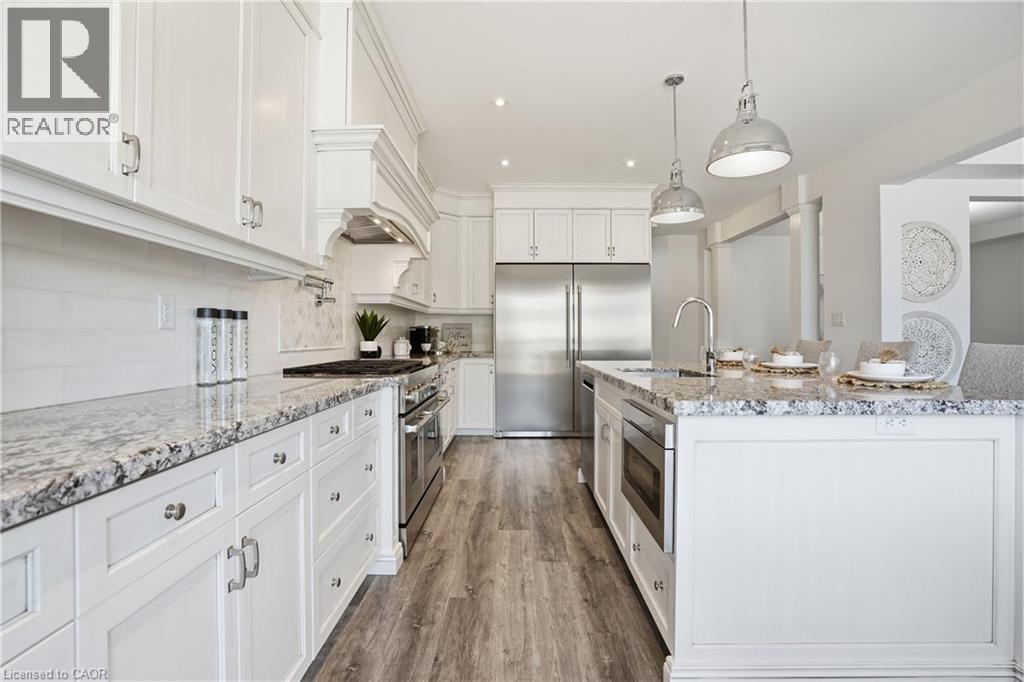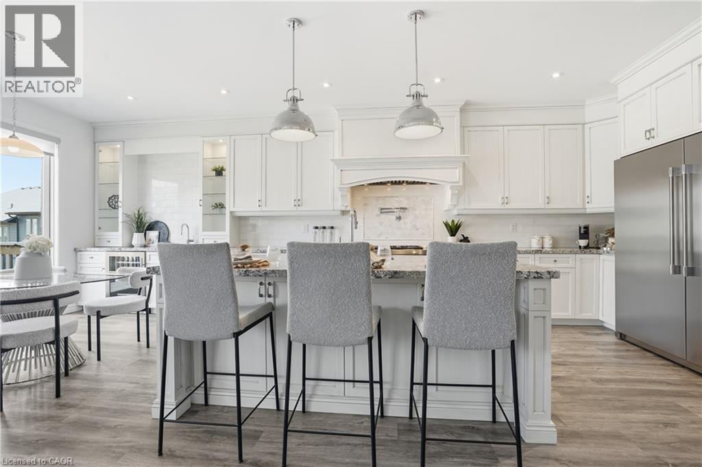 Welcome to an exceptional detached residence in the heart of Beamsville, where thoughtful design meets effortless elegance. Crafted with entertaining in mind, the open-concept layout flows seamlessly into a beautifully appointed kitchen, featuring extended cabinetry and upgraded appliances that elevate both style and function. All four bedrooms are generously scaled, offering comfortable, versatile living spaces. The primary suite is a true retreat, complete with a luxurious ensuite bath and a spacious walk-in closet. The walkout basement presents a rare opportunity to customize and expand your living space, opening directly to the backyard. Set on a desirable pie-shaped lot, the fully fenced yard is ideal for children, pets, or hosting unforgettable summer gatherings, complemented by a custom stamped concrete patio and walkways. Perfectly positioned within walking distance to excellent schools, the Bruce Trail, and a nearby dog park, this home also offers quick access to shopping, dining, major highways, and the region’s renowned wineries—bringing together lifestyle, convenience, and refined living. (id:50787)