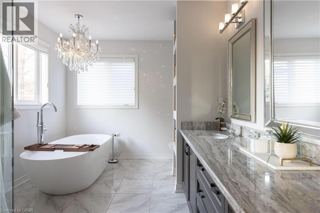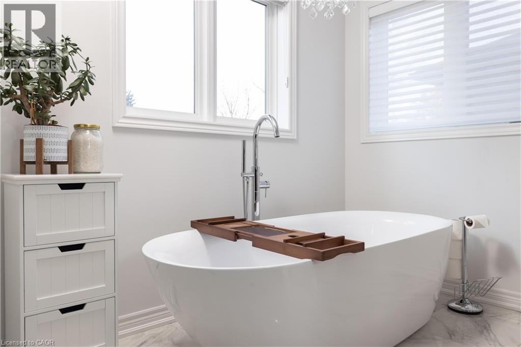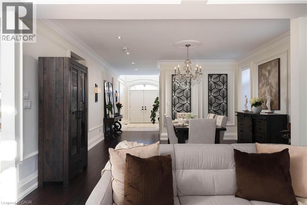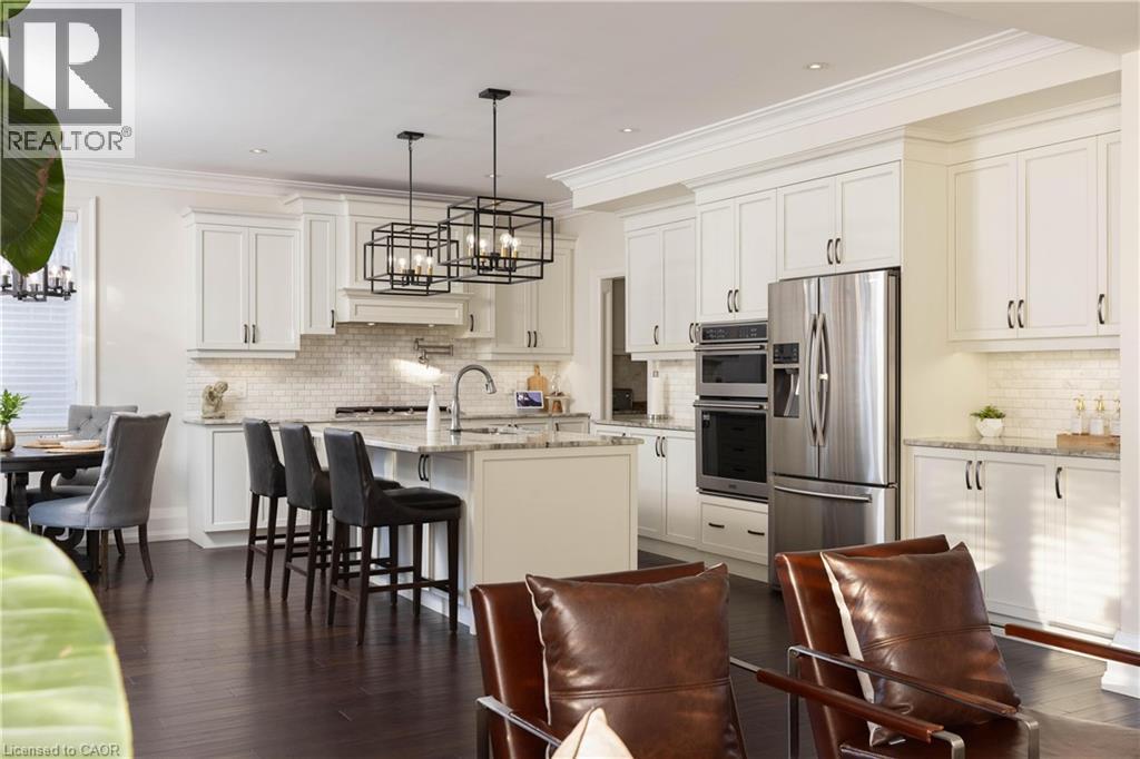 Most homes today are built to sell.This one was built by people who actually planned on living in it. You notice the difference the moment you walk through the door. Craftsmanship shows up immediately: crown moulding, oversized door and window casings, nine-inch baseboards, and engineered hardwood flows seamlessly through the first and second floors. Warm, consistent, and notably no carpet anywhere. The living room anchors the home with a waffle ceiling that catches the light beautifully and a full custom millwork fireplace wall that extends all the way to the ceiling; architectural details that add both warmth and character. Then there’s the kitchen. Designed for both everyday living and entertaining, it features marble countertops, custom cabinetry with soft-close hardware, and a walk-in pantry that actually functions the way a pantry should. Upstairs, the primary suite offers a calm and private retreat with a spa inspired ensuite that might actually make mornings enjoyable. Three additional bedrooms, a beautifully updated bathroom, and laundry room because hauling baskets to the basement is a lifestyle choice no one should make. The finished lower level adds versatility with durable luxury vinyl plank flooring designed for real life. A wet bar, fireplace, gym, fifth bedroom, bathroom, cold cellar and generous storage. It also happens to be an excellent place to hide from your in-laws when they visit. Step outside and the backyard feels like its own private retreat. Fully fenced with mature trees, thoughtful landscaping, and a gazebo perfect for long summer evenings. The work has already been done all that’s left is to enjoy it. The location brings everything together. Steps to the water, two minutes to the highway. Five minutes to wineries, and scenic trails. Right in the heart of Stoney Creek quiet when you want it, close to everything when you don’t. Homes built like this don’t come along often, come see the difference for yourself (id:50787)