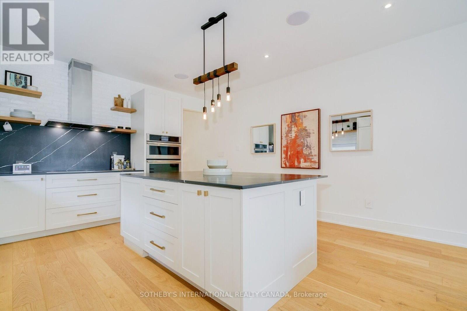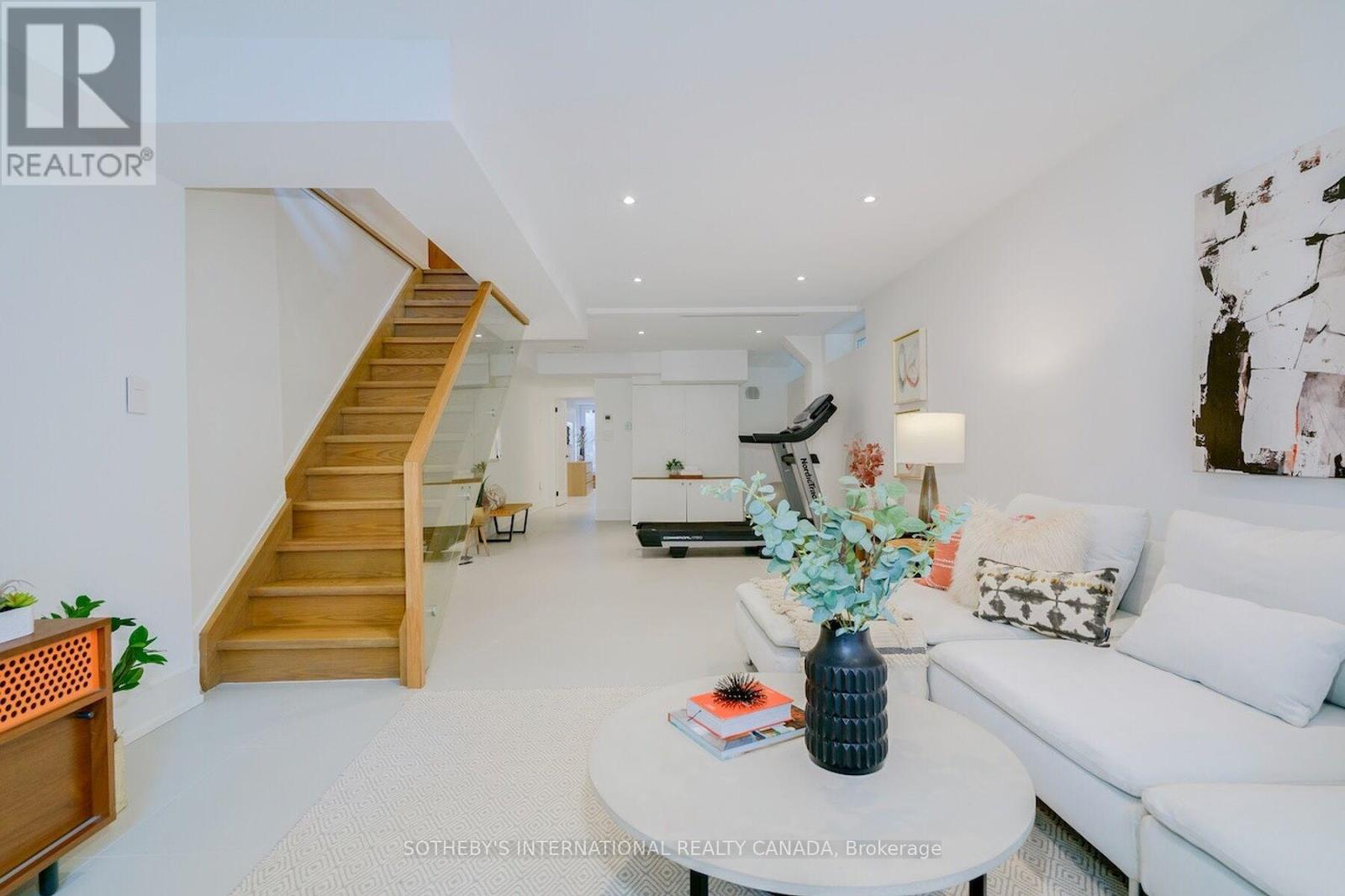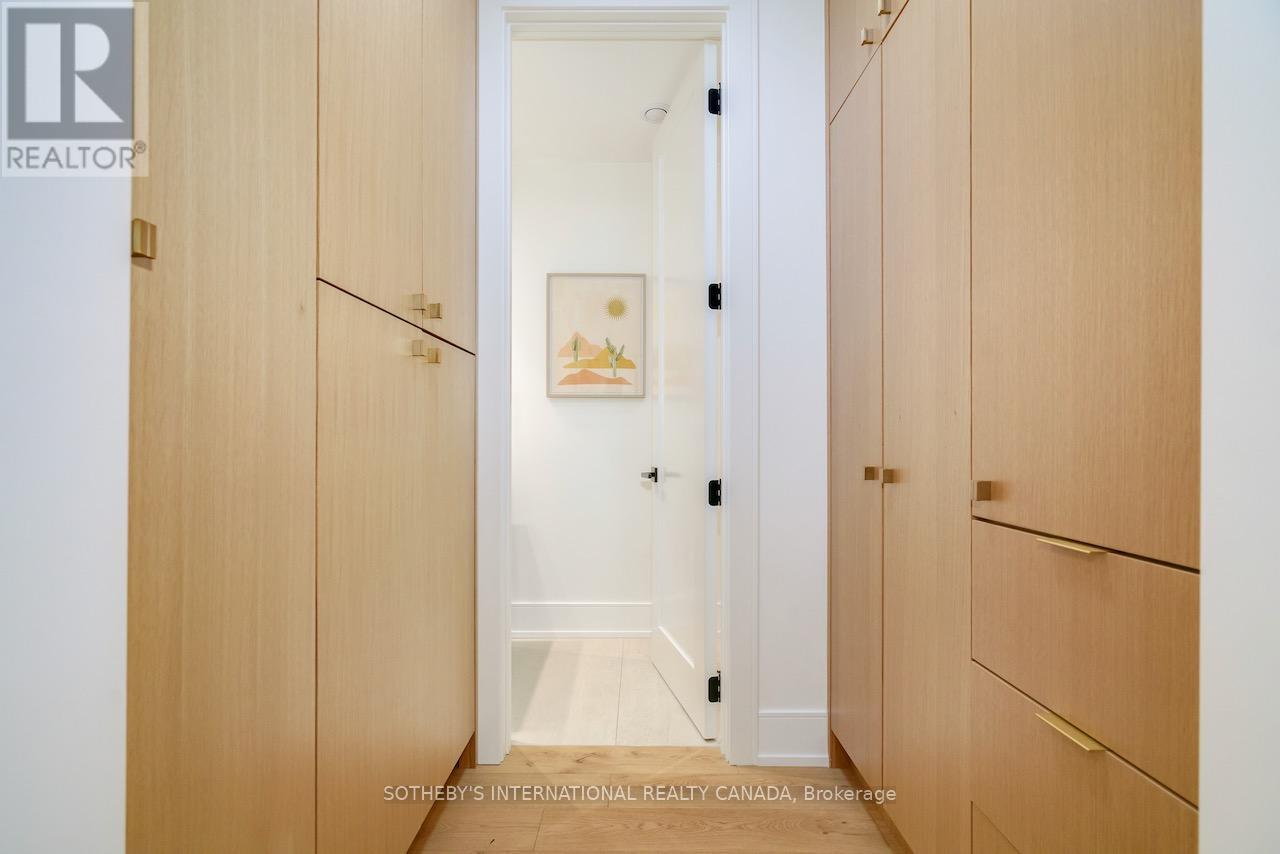 A rare Certified Passive Home in Queen West, this modern masterpiece is designed for both style and sustainability. Purpose-built to meet rigorous energy-efficiency standards, this ultra-low-cost home offers over 3,000 sq ft of above-ground living space, where sleek finishes and thoughtful details define an elevated urban lifestyle. The main floor welcomes you to a bright, open-concept layout featuring wide-plank hardwood floors, a statement staircase with glass railings, custom oak cabinetry, and designer LED lighting throughout. The chef's kitchen is a true showstopper complete with integrated high-end appliances, stone countertops, dramatic backsplash, and an oversized island with seating. The adjoining family room offers a seamless indoor-outdoor connection with a walkout to the private back patio. Upstairs, soaring 9ft ceilings enhance the sense of space and light. The serene primary suite features a walk-through closet with built-ins, a spa-like 4-pc ensuite, and large windows overlooking a private terrace. This level also includes a second bedroom with its own ensuite and a full laundry room. The third floor offers a stunning secondary primary retreat with a luxurious 5-pc ensuite featuring a soaker tub, extensive closet space, and direct access to a private rooftop deck. An additional large bedroom with generous storage completes this level. Bathrooms throughout are finished with premium fixtures by Gessi, Toto, and Nobili, complemented by floating vanities and wall-hung toilets. The lower level, with separate entrance, offers a spacious living and dining area, a 4-piece bath, and a generous bedroom-ideal for an in-law, guest, or nanny suite. A detached two-car garage wired for an EV charger and a rooftop terrace further enhance the outdoor lifestyle. Steps to the shops, cafes, and restaurants of Queen West and Ossington, and minutes to the future King-Liberty GO Station, this exceptional home delivers a rare blend of luxury, and urban convenience. (id:50787)