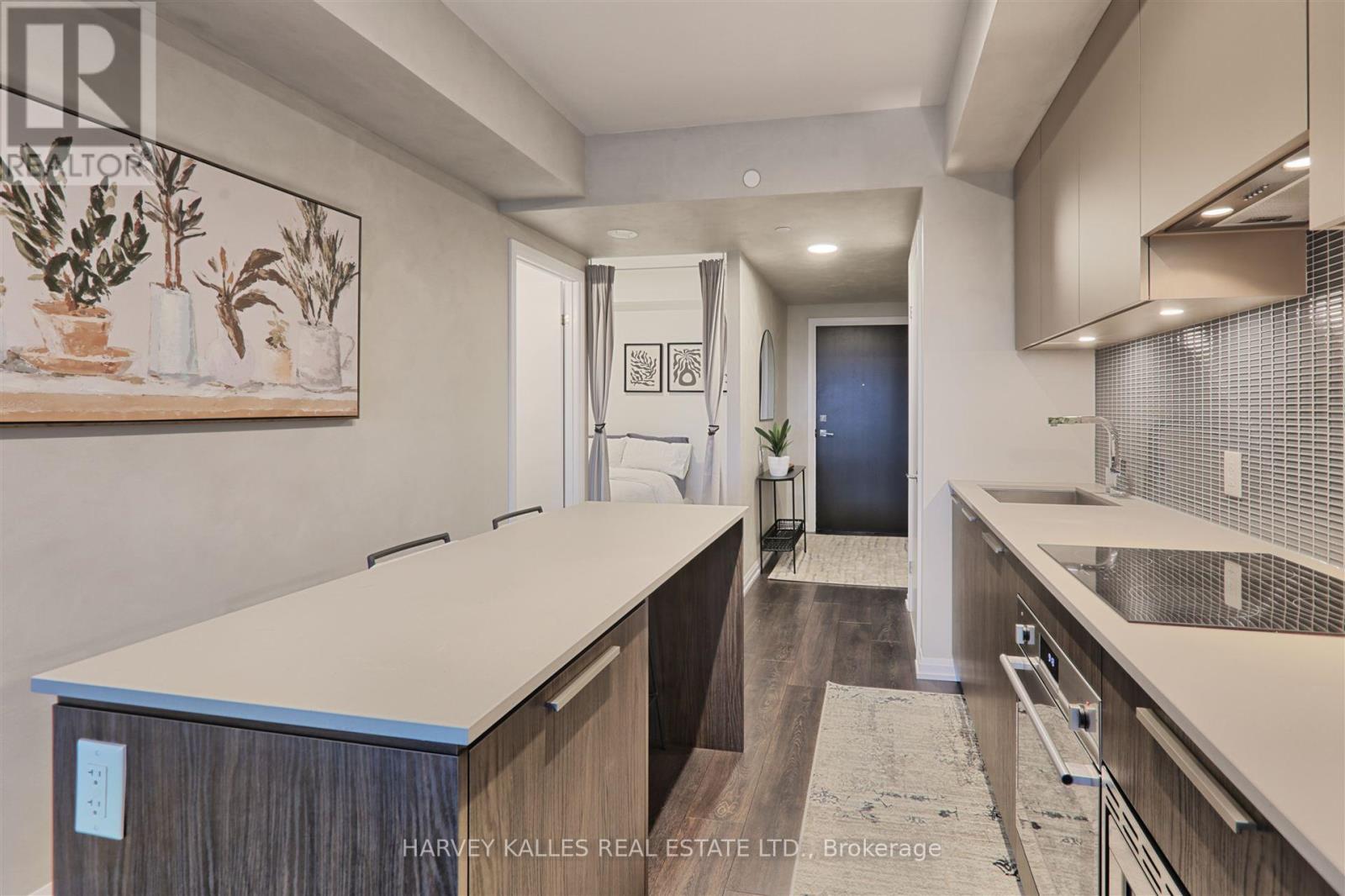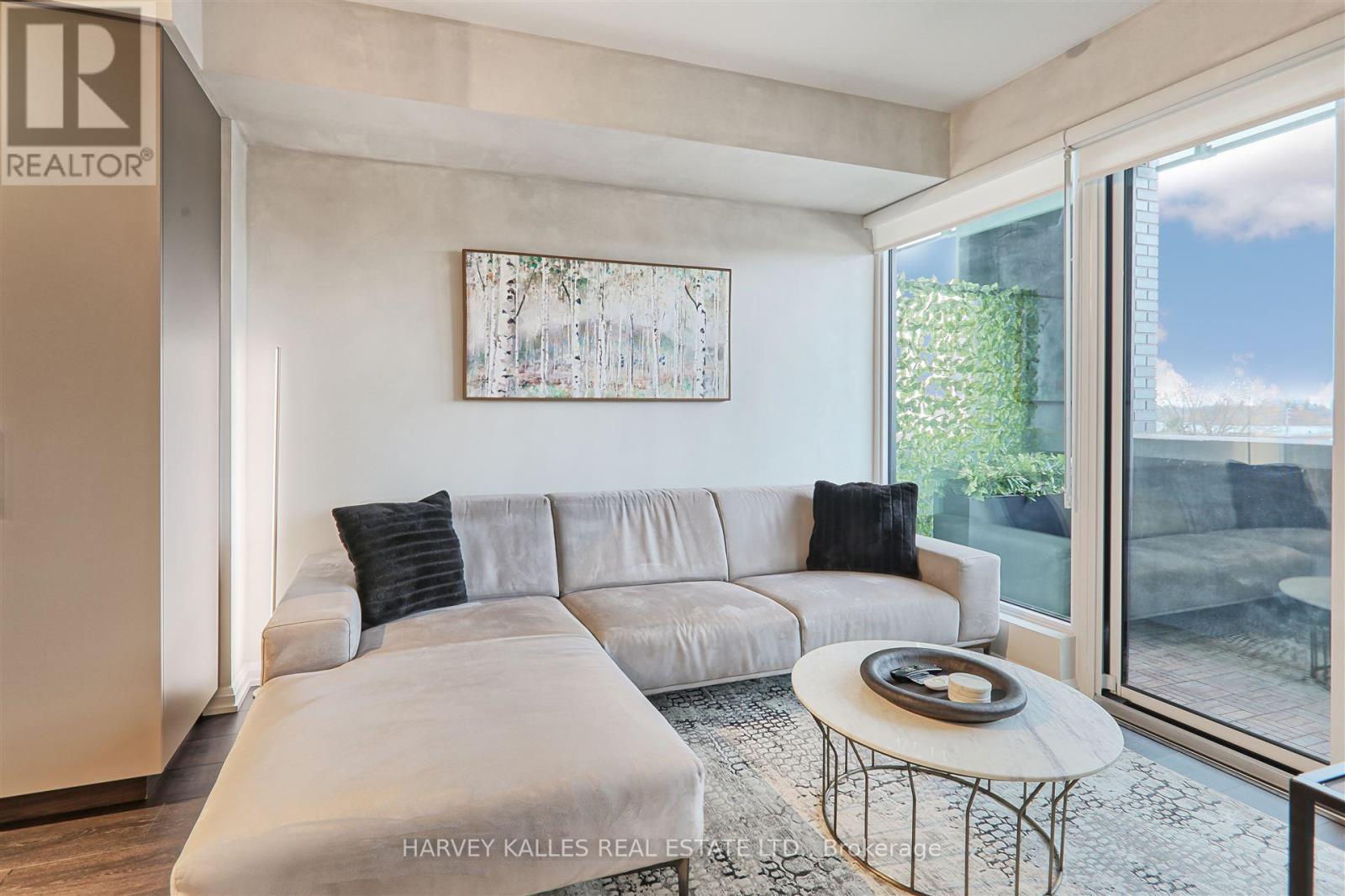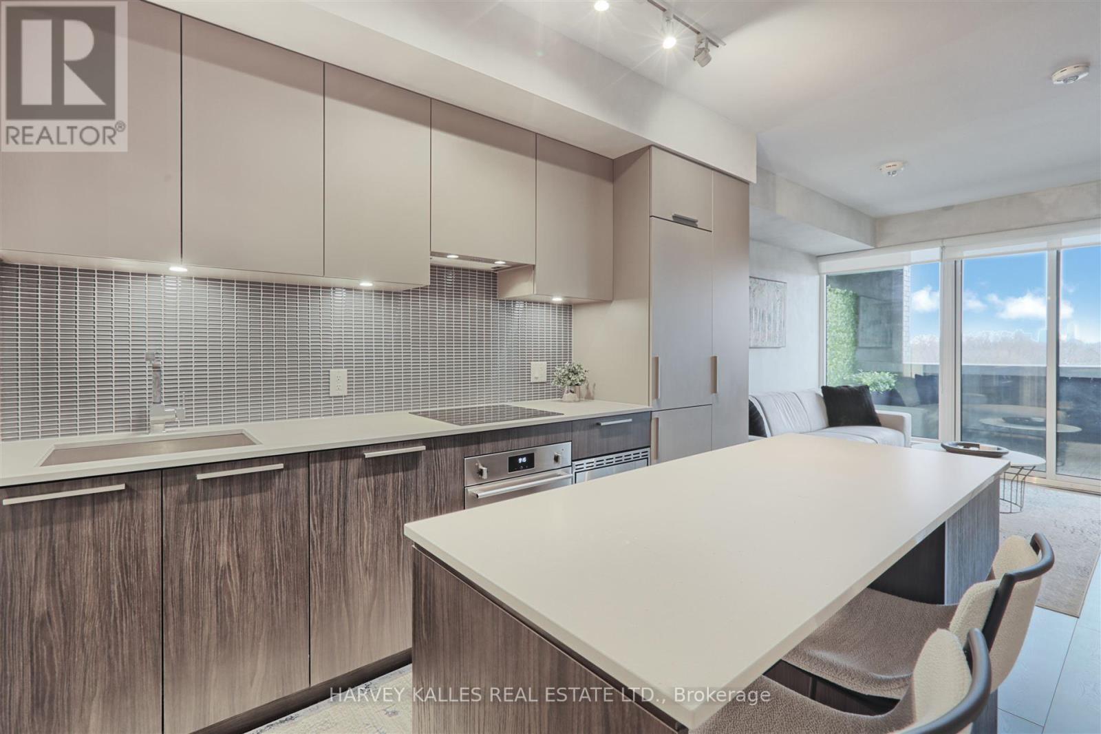Welcome to Kingsway by the River, a stunning contemporary boutique condo loft designed by Wallman Architects, located in the heart of the Kingsway. This exceptional 1 Plus 1 bedroom, 2-full-bath unit offers approximately 800 sq. ft of open-concept living space and large private terrace. Features one of the largest dens that can serve as a second bedroom or a home office. The unit boasts numerous upgrades, including a custom-designed kitchen island with seating and storage, integrated dishwasher and refrigerator, built-in wall oven, cooktop, and ample pantry storage perfect for cooking and entertaining. High ceilings and floor-to-ceiling windows create a bright and airy atmosphere, while the large private terrace has unobstructed south-facing views . The primary bedroom is generously sized, complete with a walk-in double closet for optimal organization. Upgraded bathroom fixtures and finishes ensure comfort, and wide plank flooring flows throughout the living areas and bedrooms.One parking and locker included. This boutique condo loft is ideally situated near highly-rated schools, surrounded by green spaces and the river valley. Residents can enjoy world-class amenities, including a service kitchen for hosting private events, a lounge with multiple sitting areas, fire pits, BBQ stations, and dining tables for summer gatherings. A fully equipped fitness center, 24-hour security, and visitor parking complete this exceptional living experience. Dont miss the opportunity to make this luxurious condo your new home! (id:50787)
