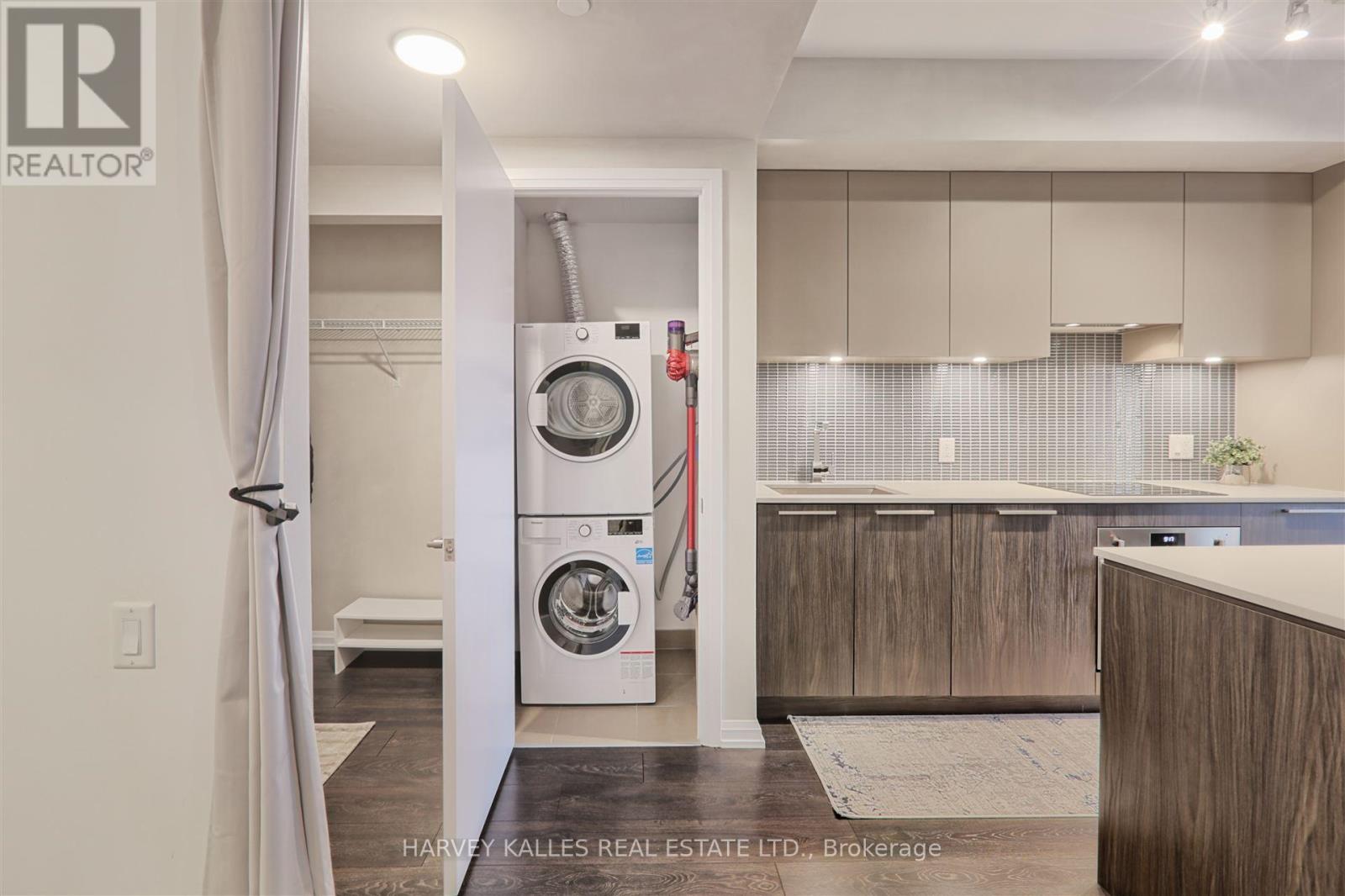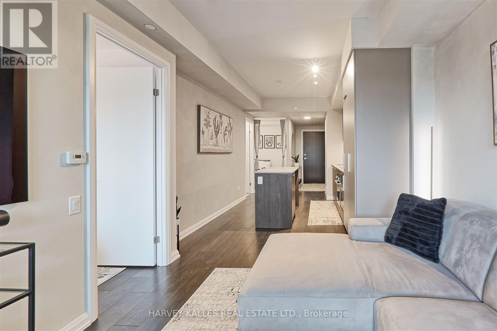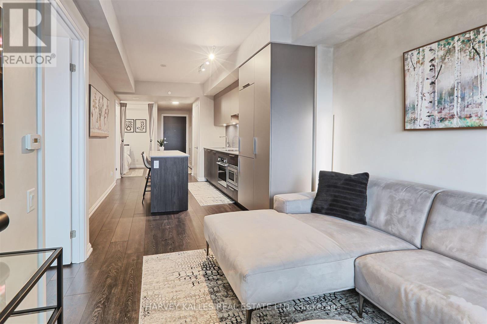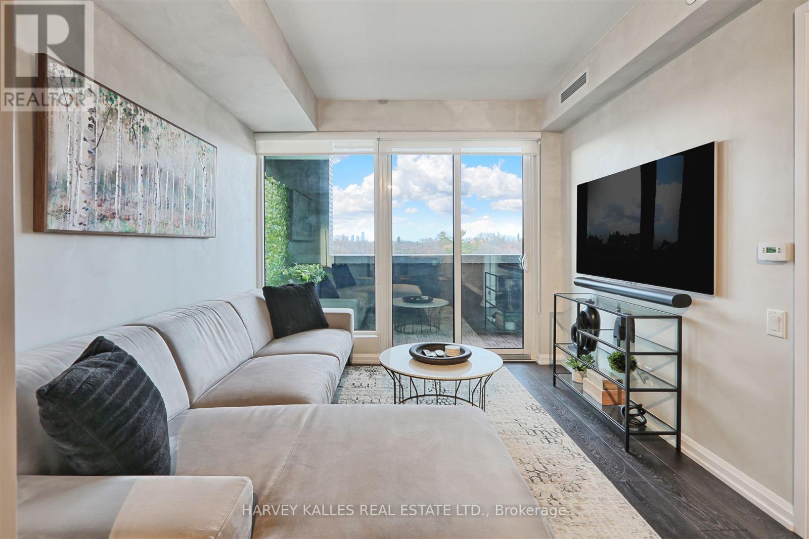 Welcome to Kingsway by the River, a stunning contemporary boutique condo loft designed by Wallman Architects, located in the heart of the Kingsway. This exceptional 1 Plus 1 bedroom, 2-full-bath unit offers approximately 800 sq. ft of open-concept living space and large private terrace. Features one of the largest dens that can serve as a second bedroom or a home office. The unit boasts numerous upgrades, including a custom-designed kitchen island with seating and storage, integrated dishwasher and refrigerator, built-in wall oven, cooktop, and ample pantry storage perfect for cooking and entertaining. High ceilings and floor-to-ceiling windows create a bright and airy atmosphere, while the large private terrace has unobstructed south-facing views . The primary bedroom is generously sized, complete with a walk-in double closet for optimal organization. Upgraded bathroom fixtures and finishes ensure comfort, and wide plank flooring flows throughout the living areas and bedrooms.One parking and locker included. This boutique condo loft is ideally situated near highly-rated schools, surrounded by green spaces and the river valley. Residents can enjoy world-class amenities, including a service kitchen for hosting private events, a lounge with multiple sitting areas, fire pits, BBQ stations, and dining tables for summer gatherings. A fully equipped fitness center, 24-hour security, and visitor parking complete this exceptional living experience. Dont miss the opportunity to make this luxurious condo your new home! (id:50787)