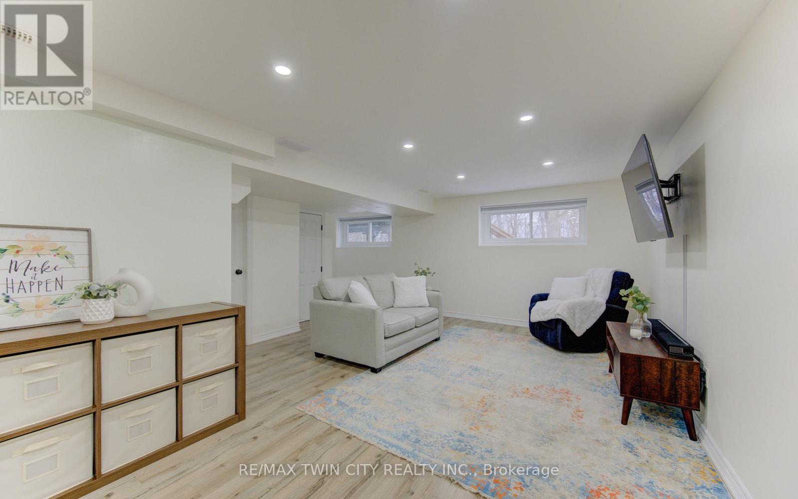Welcome home to 414 Woods Lane, an elegant and spacious raised bungalow located in a family-friendly neighbourhood, just a short walk to Parkway Public School. With nearly 1900 sqft of finished living space, including a FULLY FINISHED BASEMENT with a SEPARATE ENTRANCE from the garage, this move-in ready home offers excellent flexibility for families or multi-generational living. The main floor includes a bright living room and a beautifully updated eat-in kitchen with quartz countertops, RO system and ceramic backsplash, plus walkout to the back deck (2019) with a gas BBQ line. This level also features 3 bedrooms and a modern 4 piece bath. Neutral decor, large windows and carpet-free living create a bright, welcoming feel throughout the home. The finished basement adds additional living space, including a comfortable family room with a gas fireplace, a 2 piece bath, a potential 4th bedroom or office, and plenty of storage. This home sits on a private lot with NO REAR NEIGHBOURS. Outside you'll also find a single-car garage with an updated garage door (2018) and driveway, plus a rough-in and slab ready for a hot tub. Notable updates include roof (2018), furnace, air conditioner and water softener (2017), main flooring (2021), basement flooring (2019), windows (2019/2021), pot lighting, two sun tunnels/skylights, along with neutral decor and paint throughout. Located close to parks, walking trails, restaurants, shopping, schools, and public transit. Commuters will appreciate the convenient access to Highway 401, just a 5 min drive away! (id:50787)
