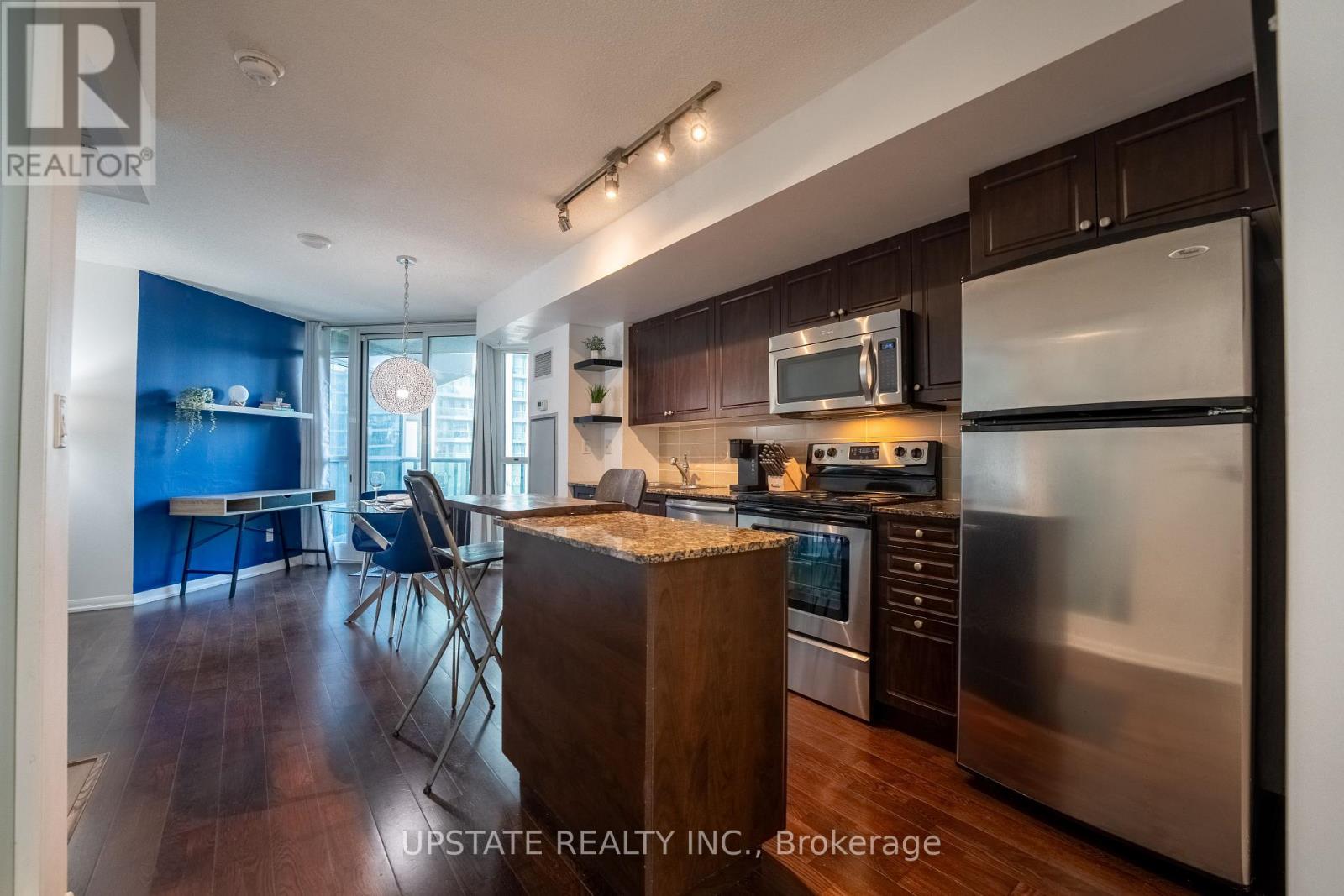 Spacious fully furnished 1-bedroom, 1-bath condo featuring a functional open-concept layoutwith a generous primary bedroom and comfortable living/dining area - ideal for professionals,couples, or students seeking turnkey convenience. Modern kitchen with granite countertops andstainless steel appliances. Move in with ease and enjoy a well-appointed space without thehassle of furnishing.Located in the heart of Fort York, just steps to the waterfront, parks, Martin Goodman Trail,TTC streetcar access, Loblaws, cafes, and restaurants, with easy access to downtown and theGardiner Expressway.Full-service building amenities include 24-hour concierge, ample visitor parking, indoor pool,sauna, fully equipped gym, rooftop garden, terrace with BBQ area, and party room. (id:50787)