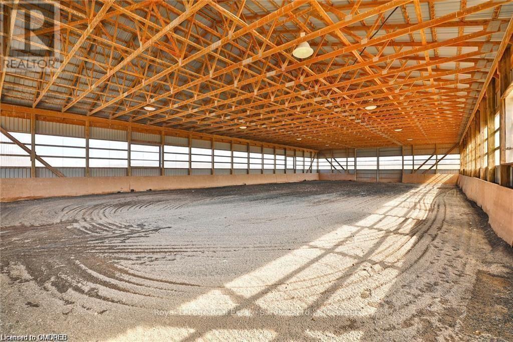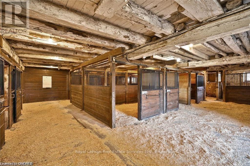 34+ Acres approx, fibre optics internet now hooked up, walk to Farm Boy, walk-in clinics, Shoppers Drug Mart, Longo's, Starbucks and great restaurants. Gorgeous escarpment views, note zoning is Escarpment Rural Area, less restrictive than Escarpment Protected Area and potential to designate the adorable stone home and receive a permit to build a second new home. Lots of options for beautiful sites set way back from the road with escarpment views to north and west, even a small forest with trails. Charming stone home, 60' X 120' indoor riding riding arena, and approx 19 stall barn, just north of Hwy 407, this beautiful home and property comprises approx 34 acres of which approx 25 acres are workable, a small wooded forest, and charming residence nicely nestled within a stately homestead setting. Rare opportunity here to own such a large parcel of land so close to all the amenities...many options here...buy and hold for multi generational planning...move in and have fun...or lease and hold! Shingles, eavestrough, energy efficient heat pumps, 2024. Seller may take back mortgage! (id:50787)