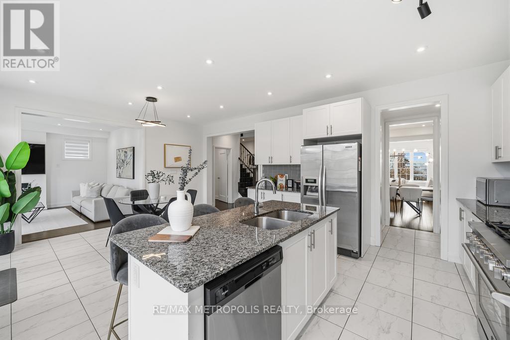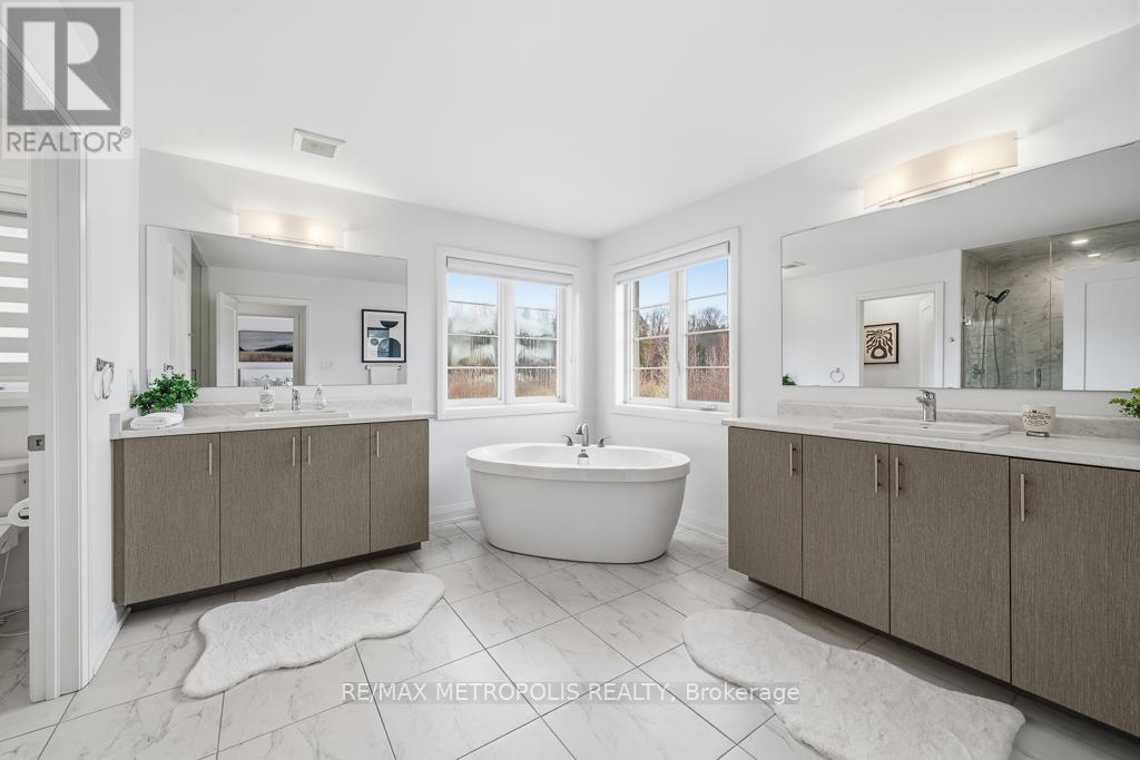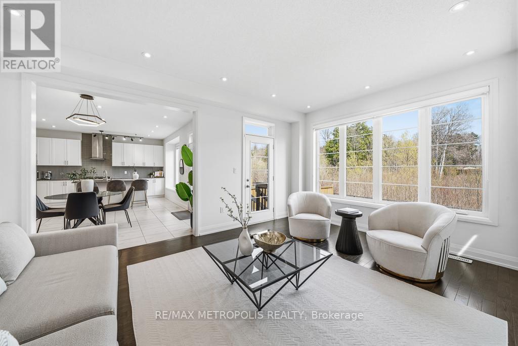 Welcome to this stunning detached home, perfectly situated on a deep ravine lot within a quiet, sought-after street. Combining timeless stone and brick exterior, with over 3,350 sq. ft. of refined living space-plus an expansive 1,500 sq. ft. basement-this residence offers both scale and sophistication.The main floor boasts a bright, open-concept layout illuminated by upgraded designer lighting. At the heart of the home is a chef's dream kitchen, complete with a 36" gas range, a generous centre island, and a spacious walk-in pantry. For those working from home, a dedicated main-floor office provides a quiet retreat, while the airy family room features a cozy gas fireplace and oversized windows that flood the space with natural light.Upstairs, you'll find four massive bedrooms, each featuring its own walk-in closet and direct bathroom access-offering unparalleled privacy and convenience for the whole family. A dedicated laundry room completes the upper level for ultimate ease.The 1,500 sq. ft. basement serves as a massive blank canvas. Whether you envision a home cinema, a private gym, or a secondary suite, this space is ready to be transformed to suit your lifestyle and add significant value.Step outside to explore nearby nature trails, enjoy seamless highway access, or unwind at the world-class Thermëa Nordic Spa Village just moments away. (id:50787)