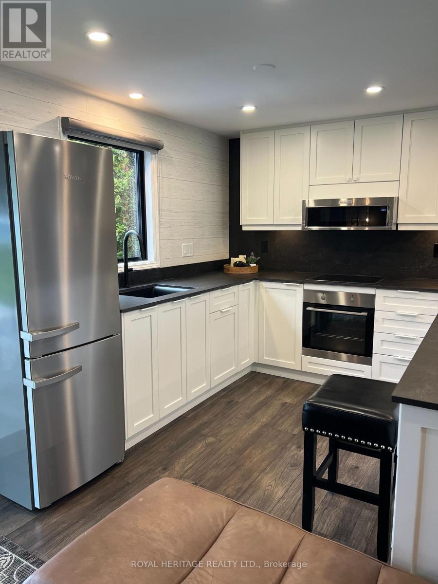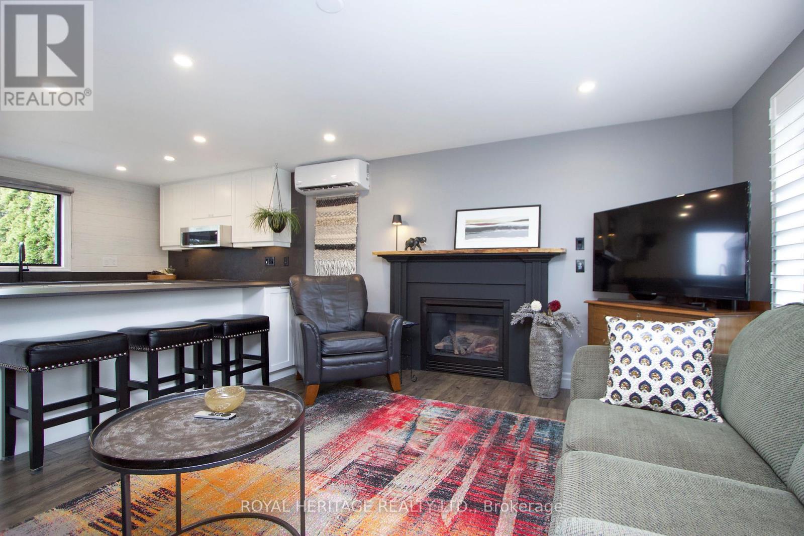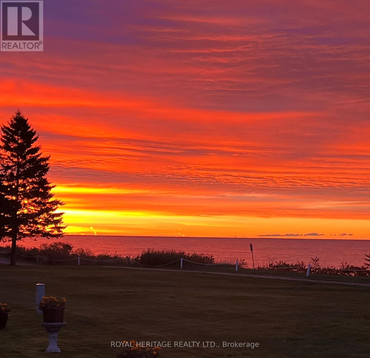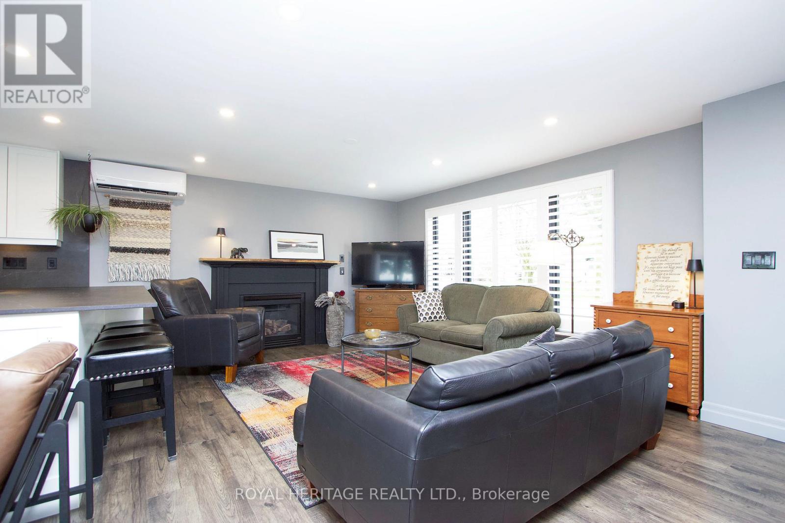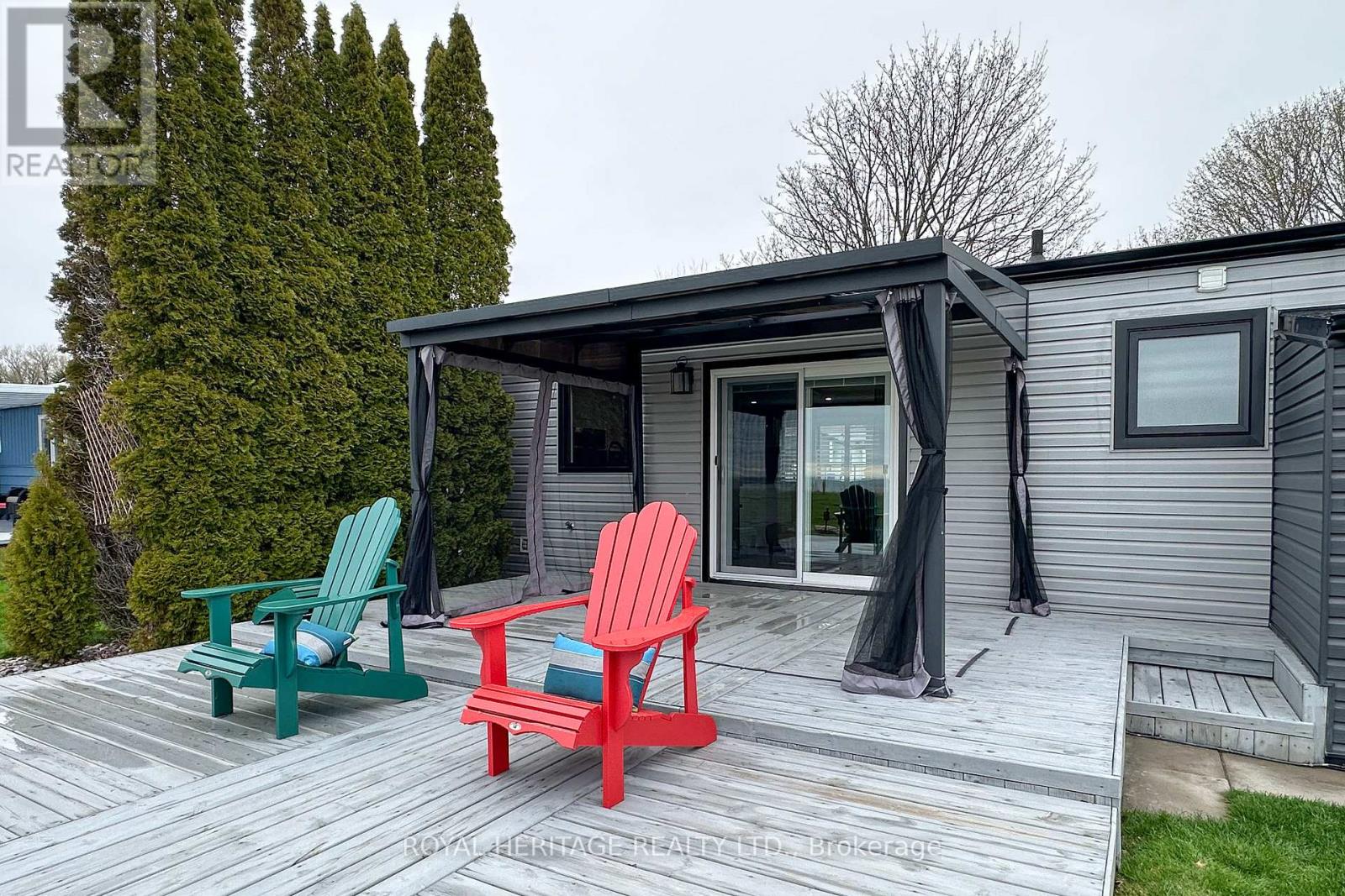 Located in the adult gated community of Wilmot Creek on the shores of Lake Ontario, is this bright and cozy two-bedroom home. Completely renovated top to bottom, inside and out in 2021, incl. engineered hand scraped flooring, pot lighting, popcorn removed from ceilings, crawl space enhancement, new siding, and more, this home feels fresh, and thoughtfully designed. Home shows pride of ownership from the moment you pull into the driveway you see a composite deck, Interlocking brick and maintenance free gardens. Step inside, you're greeted by an open-concept living space that blends the kitchen, dining, and living areas seamlessly-perfect for both quiet mornings and hosting friends. Sunlight pours in through windows, bouncing off clean, modern finishes: soft neutral walls, and sleek fixtures giving the whole space a calm, airy feel. Kitchen is complete with pot lighting, contemporary cabinetry, quartz countertops, and updated appliances, all arranged to keep the space feeling open and social. Cook while still chatting with someone relaxing on the couch or sitting at the breakfast bar. Both bedrooms are comfortable and inviting, with enough space for cozy furnishings and personal touches. The bathroom is equally refreshed, featuring a stylish walk-in shower with glass doors, modern tile work, and clean lines. The real highlight, a stunning view of Lake Ontario. Mornings start with coffee and lake breezes, while evenings bring sunsets reflecting off the water. Whether you're lounging, dining outside, or simply taking in the view, the deck feels like an extension of the home's peaceful charm. See attached feature sheet for complete list of improvements. Nothing left to do but move in and enjoy this amazing lifestyle- Mthly Maintenance Fee Include use of 9 hole golf course, 2 heated salt water pools, gym, pickle ball tennis courts and much more- Pet friendly ** Opportunity to assume existing lease (subject to approval) buyer advantage over new lease rates. (id:50787)