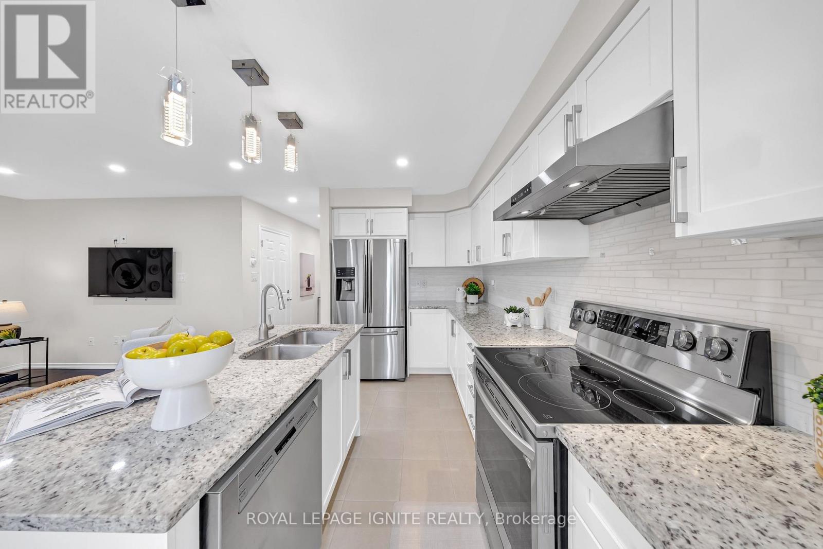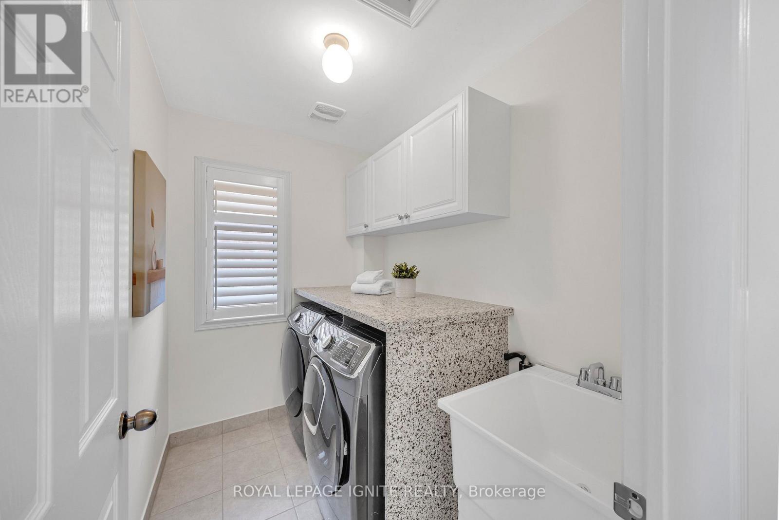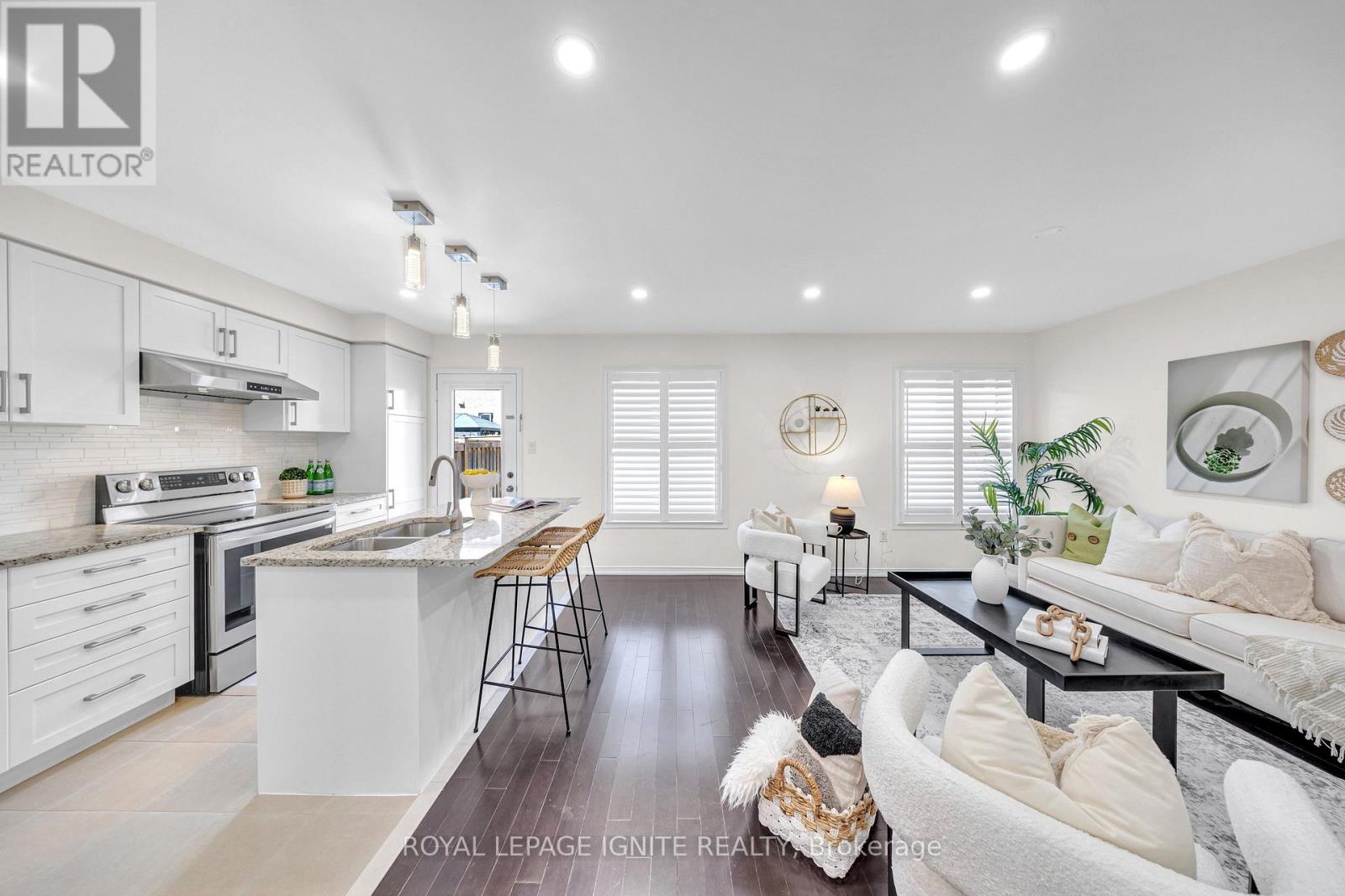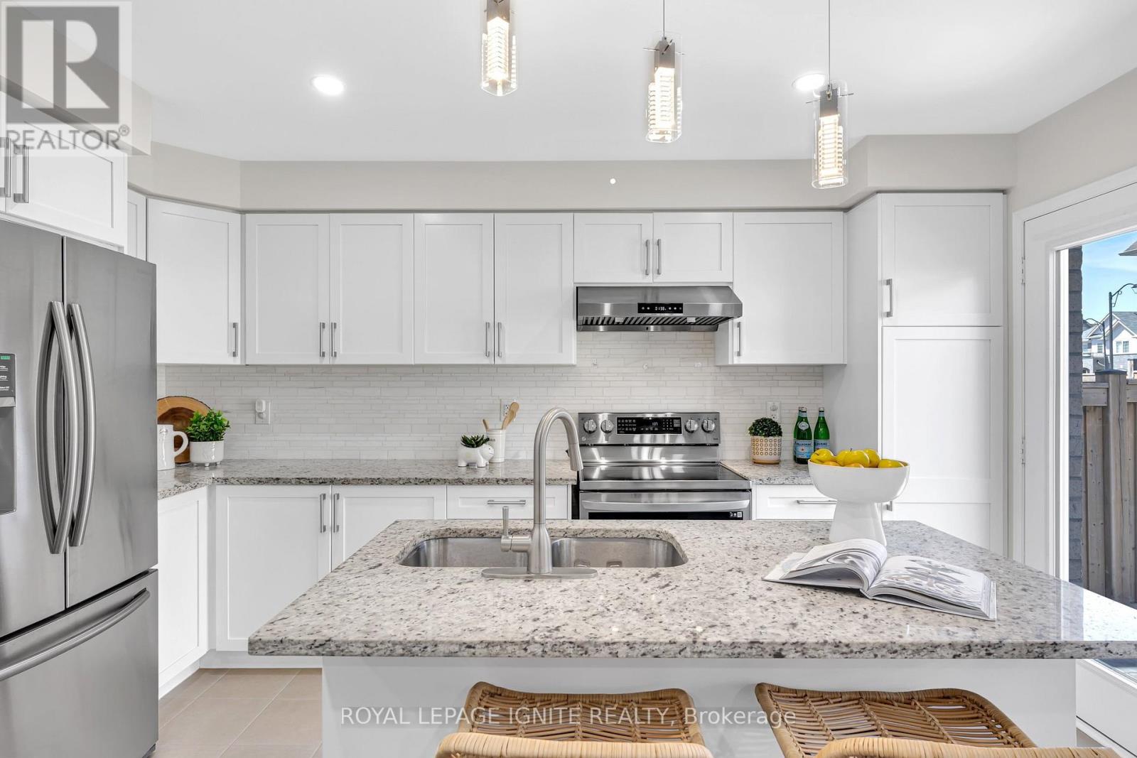 Absolute Masterpiece! This exquisitely updated 2-storey detached home in a prestigious Ajax community offers the perfect blend of modern sophistication and functional design. Situated on a premium lot with no sidewalk, allowing for seamless 3-vehicle + 1 garage parking, the home boasts striking curb appeal enhanced by extensive 2024 interlock stonework (front, side, and rear) and new 2025 exterior pot lights. The sun-drenched interior features a seamless open- concept layout with smooth ceilings, elegant hardwood floors, and a grand oak staircase with wrought iron pickets. The upgraded chef's kitchen is a true showstopper, featuring premium granite countertops, a functional centre island, a custom marble backsplash, and high-end stainless steel appliances. Upstairs, enjoy an upgraded granite top laundry room equipped with high-efficiency appliances. The spacious, unfinished basement offers a blank canvas with excellent potential for a rental income suite. Perfectly located just minutes from Hwys 401/412 and a short 5-minute drive to Durham Centre (Costco, Real Canadian Superstore, Canadian Tire, and more). Enjoy being within walking distance to top-rated schools and multiple scenic parks. Notable Updates: Owned Water Softener (2024), Brand New Furnace (2025), New Range Hood (2025), Freshly Painted Throughout (April 2025), Floors Buffed and Recoated (April 2025) and Kitchen Cabinets Refinished (April 2025). (id:50787)
