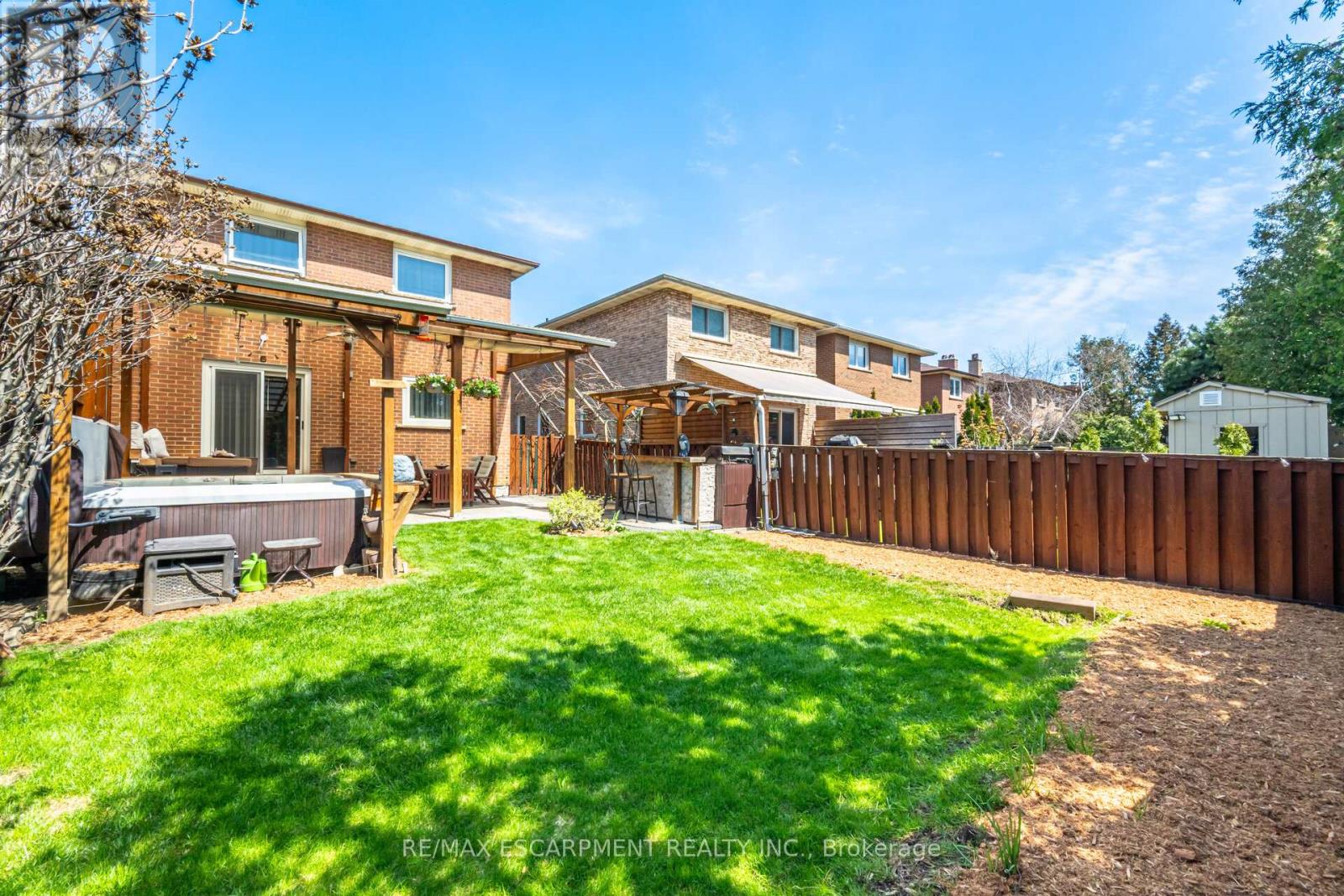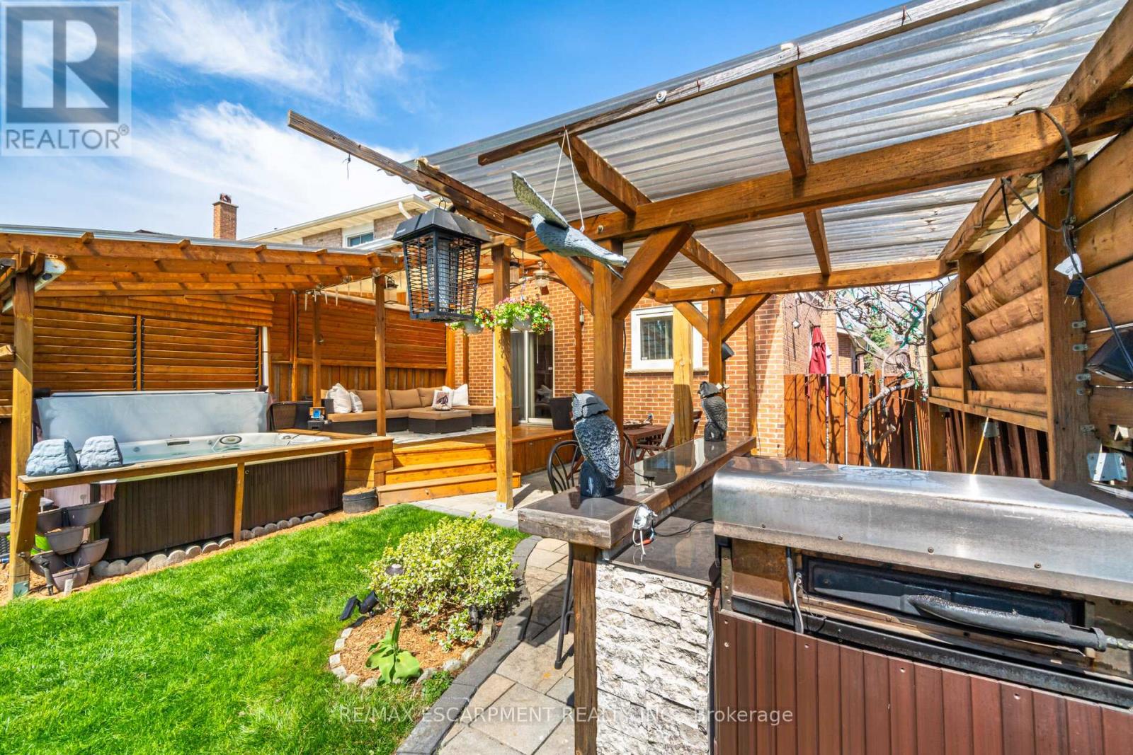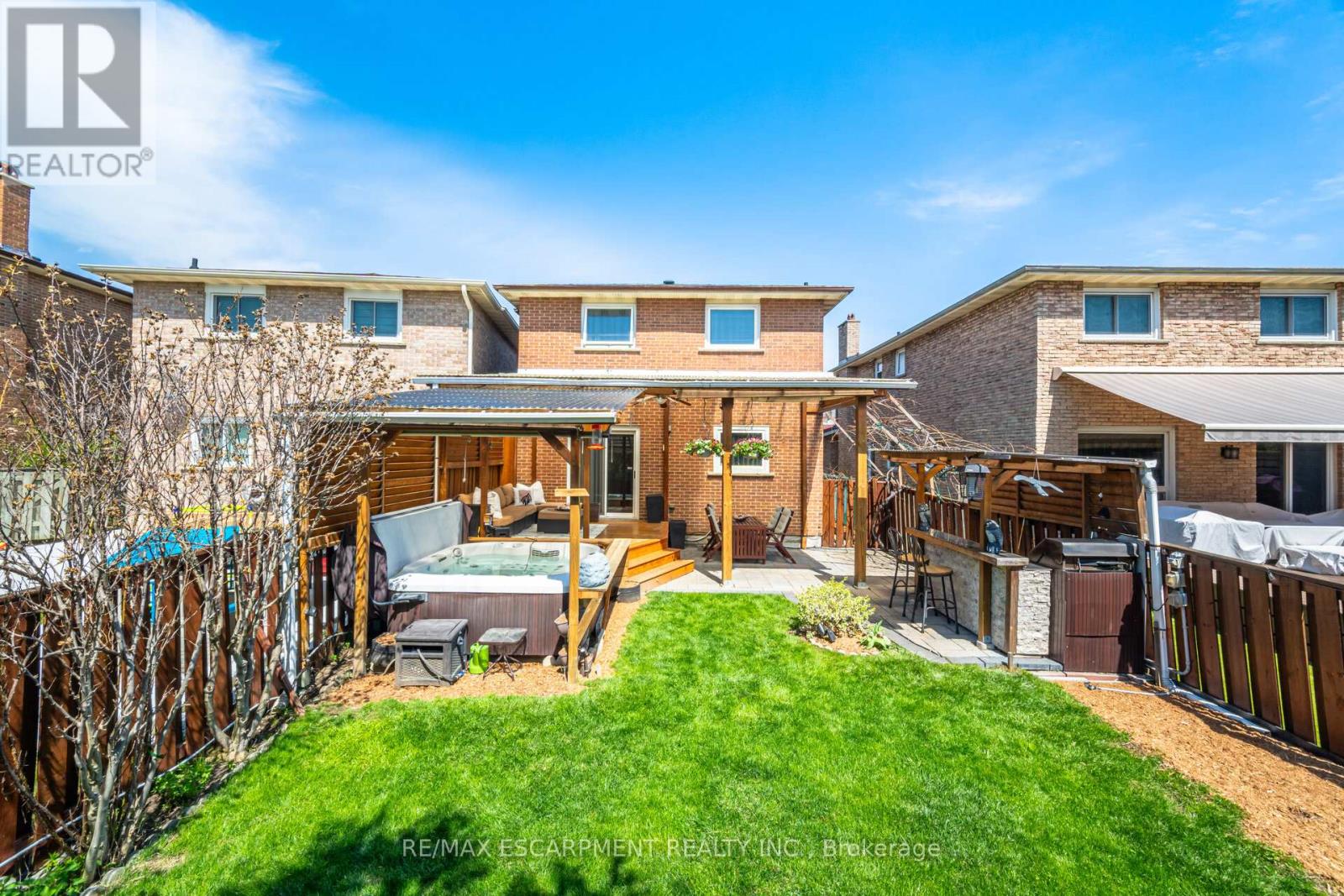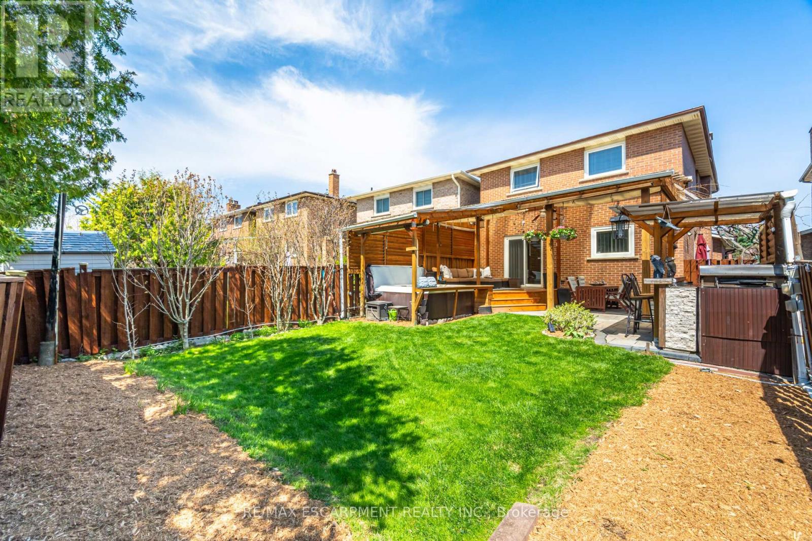 Welcome to this beautifully upgraded move-in ready link home, offering style, comfort, and versatility. The renovated interior showcases modern finishes throughout, including granite countertops in the kitchen and bathrooms, crown molding, and LED dimmable pot lights. The kitchen is equipped with a gas stove-ready line and newer appliances, including a fridge and dishwasher (2025). Enjoy the convenience of main floor laundry, updated second-floor flooring (2024), bathrooms /2020 and 2024/ and a roof replaced in 2023.The finished basement with a separate entrance includes a kitchen, bathroom, and a Murphy bed-ideal for extended family and cold room. Step outside to a private backyard oasis featuring a covered patio, automatic irrigation sprinkler system /front and backyard/, covered BBQ and a relaxing saltwater hot tub. Additional highlights include a 220V power outlet. Steps from St Basil Elementary school, Mississauga Transit way, shopping, hwys and so much more. ** This is a linked property.** (id:50787)