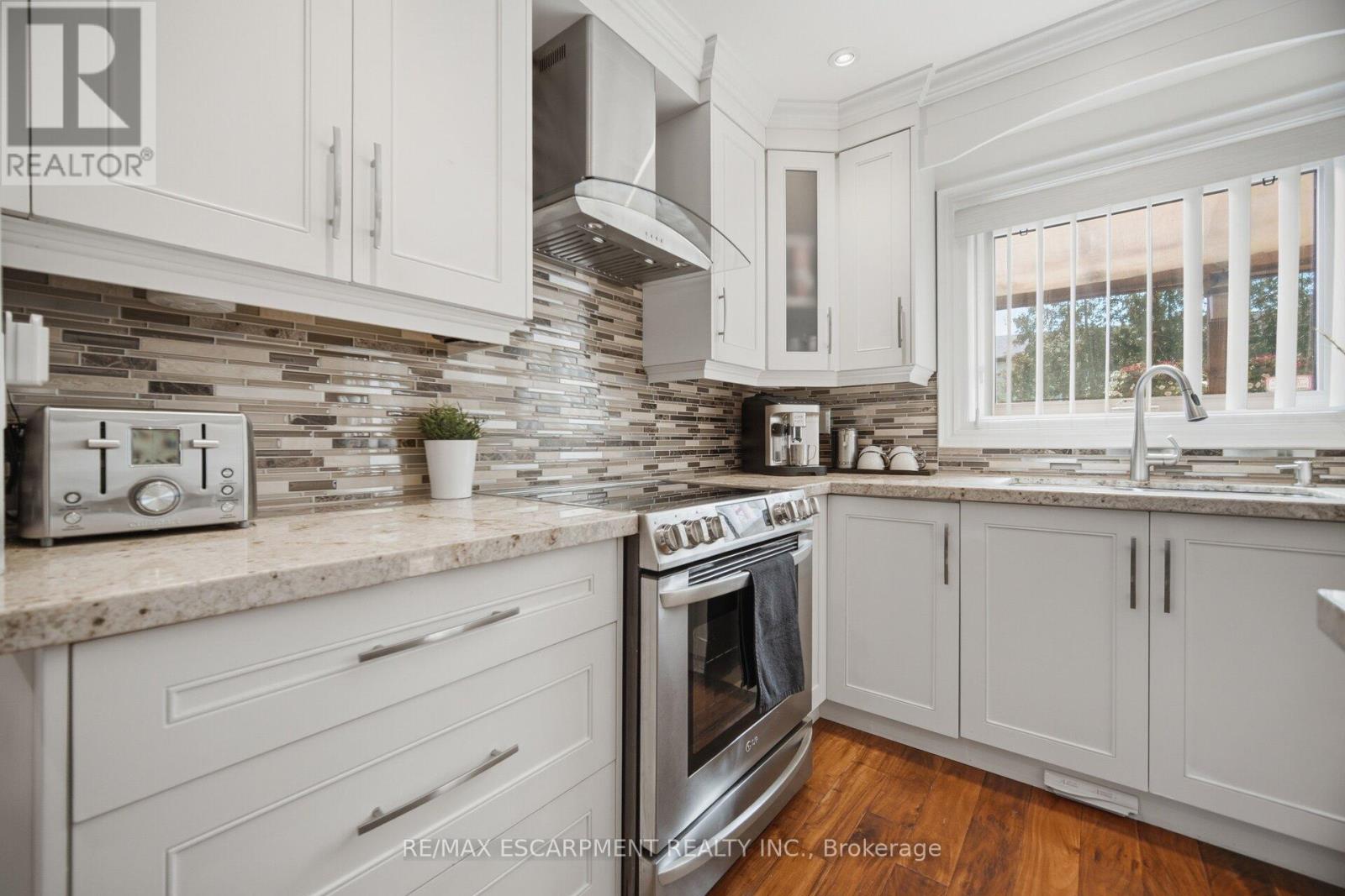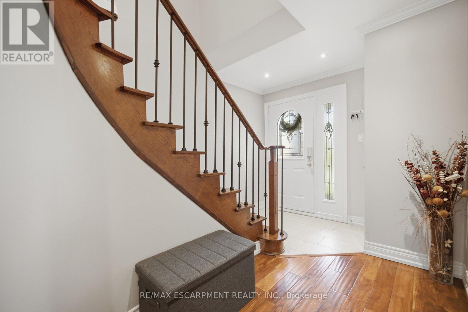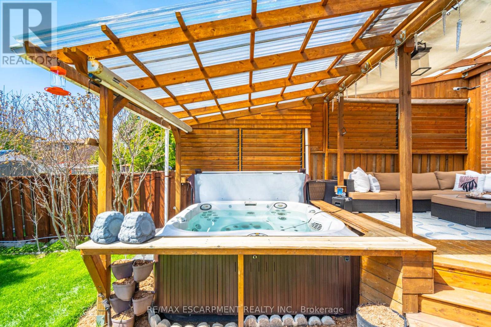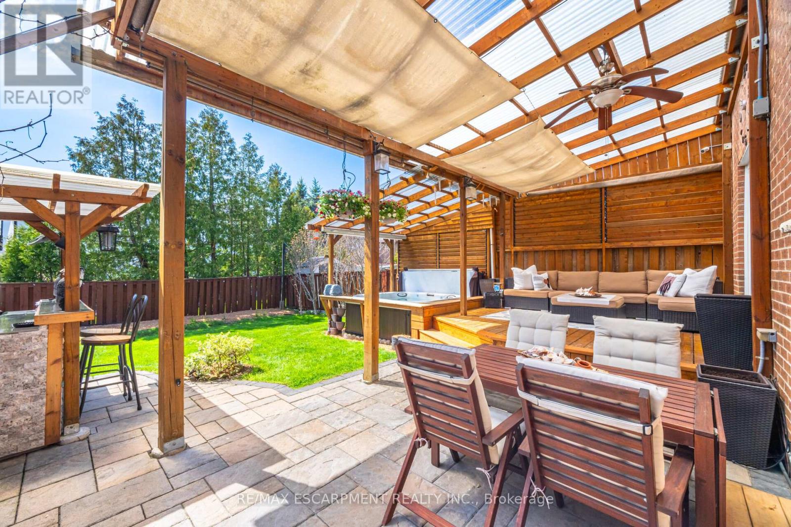 Welcome to this beautifully upgraded move-in ready link home, offering style, comfort, and versatility. The renovated interior showcases modern finishes throughout, including granite countertops in the kitchen and bathrooms, crown molding, and LED dimmable pot lights. The kitchen is equipped with a gas stove-ready line and newer appliances, including a fridge and dishwasher (2025). Enjoy the convenience of main floor laundry, updated second-floor flooring (2024), bathrooms /2020 and 2024/ and a roof replaced in 2023.The finished basement with a separate entrance includes a kitchen, bathroom, and a Murphy bed-ideal for extended family and cold room. Step outside to a private backyard oasis featuring a covered patio, automatic irrigation sprinkler system /front and backyard/, covered BBQ and a relaxing saltwater hot tub. Additional highlights include a 220V power outlet. Steps from St Basil Elementary school, Mississauga Transit way, shopping, hwys and so much more. ** This is a linked property.** (id:50787)