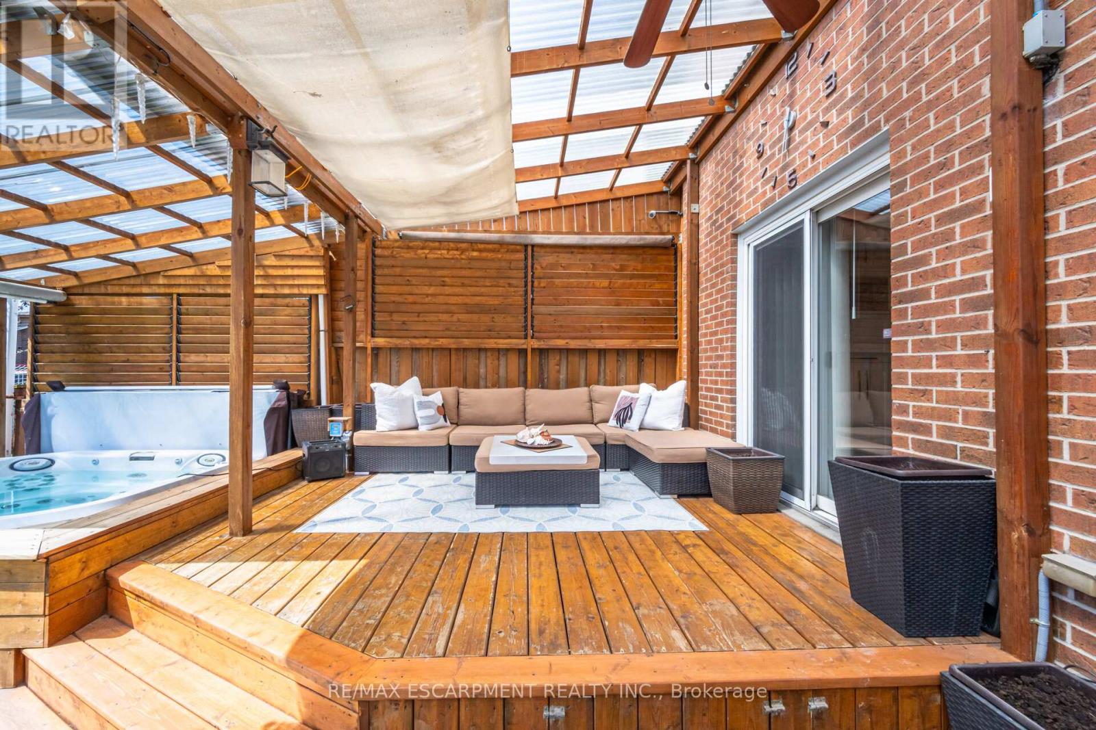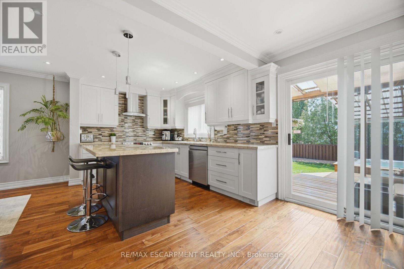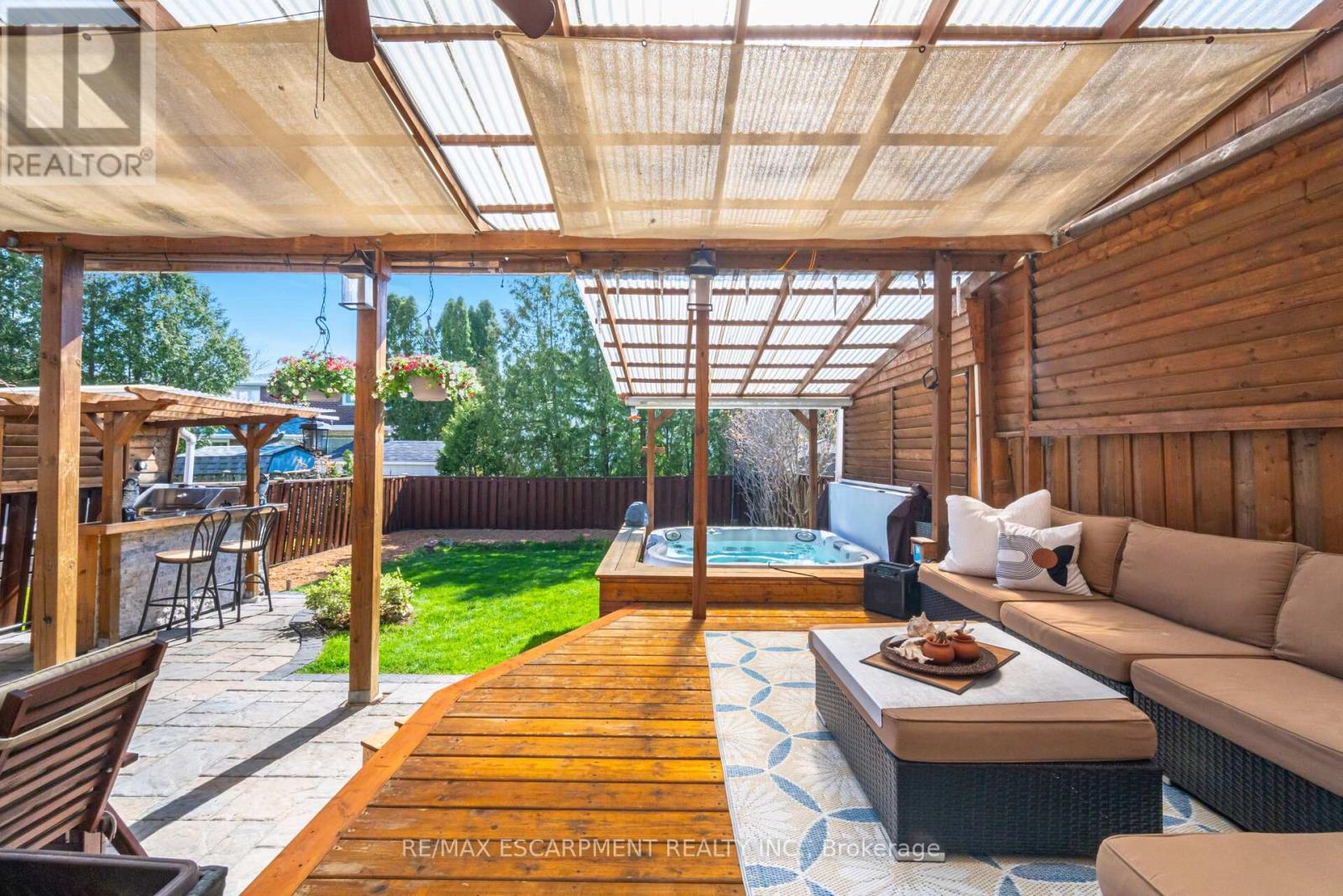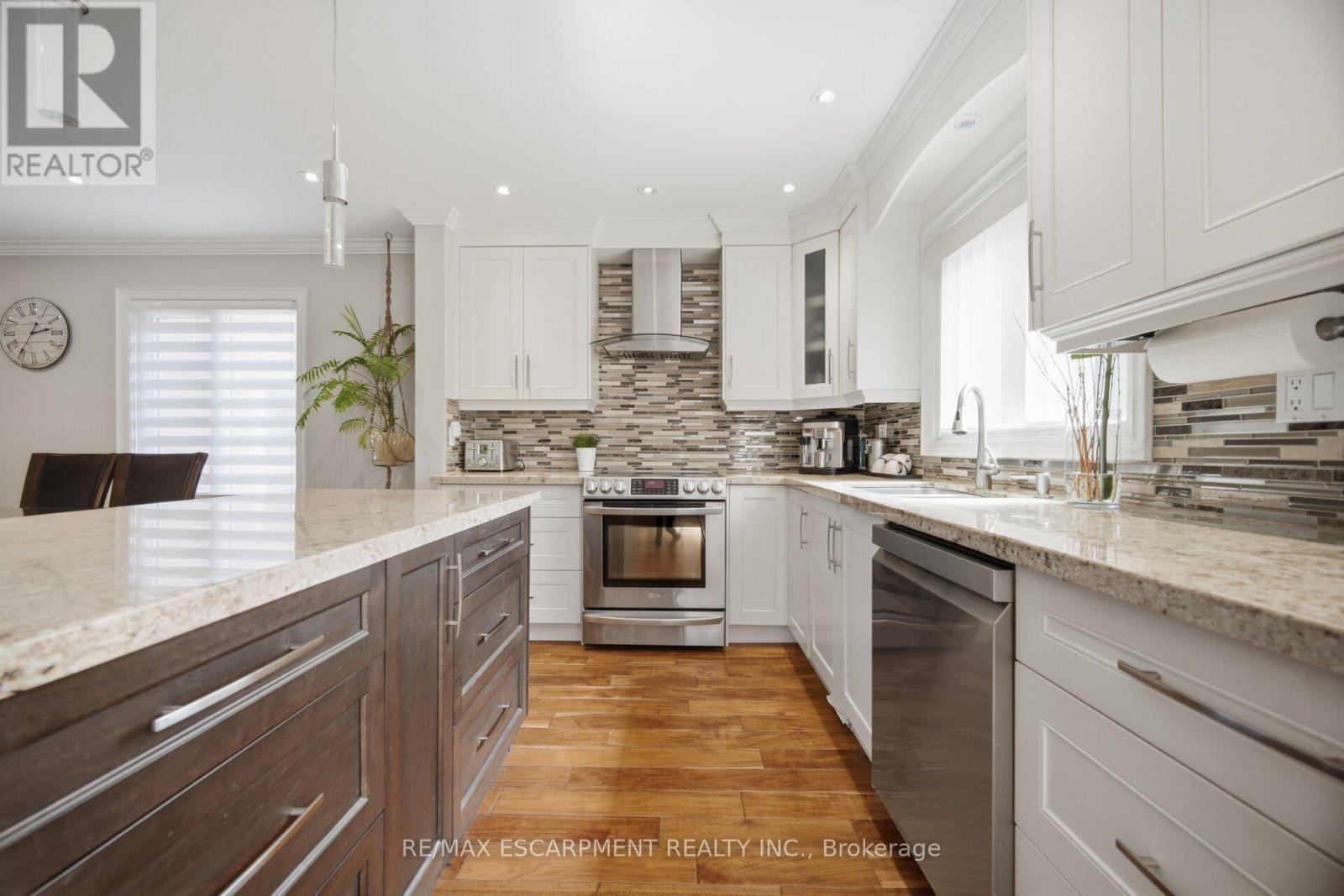 Welcome to this beautifully upgraded move-in ready link home, offering style, comfort, and versatility. The renovated interior showcases modern finishes throughout, including granite countertops in the kitchen and bathrooms, crown molding, and LED dimmable pot lights. The kitchen is equipped with a gas stove-ready line and newer appliances, including a fridge and dishwasher (2025). Enjoy the convenience of main floor laundry, updated second-floor flooring (2024), bathrooms /2020 and 2024/ and a roof replaced in 2023.The finished basement with a separate entrance includes a kitchen, bathroom, and a Murphy bed-ideal for extended family and cold room. Step outside to a private backyard oasis featuring a covered patio, automatic irrigation sprinkler system /front and backyard/, covered BBQ and a relaxing saltwater hot tub. Additional highlights include a 220V power outlet. Steps from St Basil Elementary school, Mississauga Transit way, shopping, hwys and so much more. ** This is a linked property.** (id:50787)