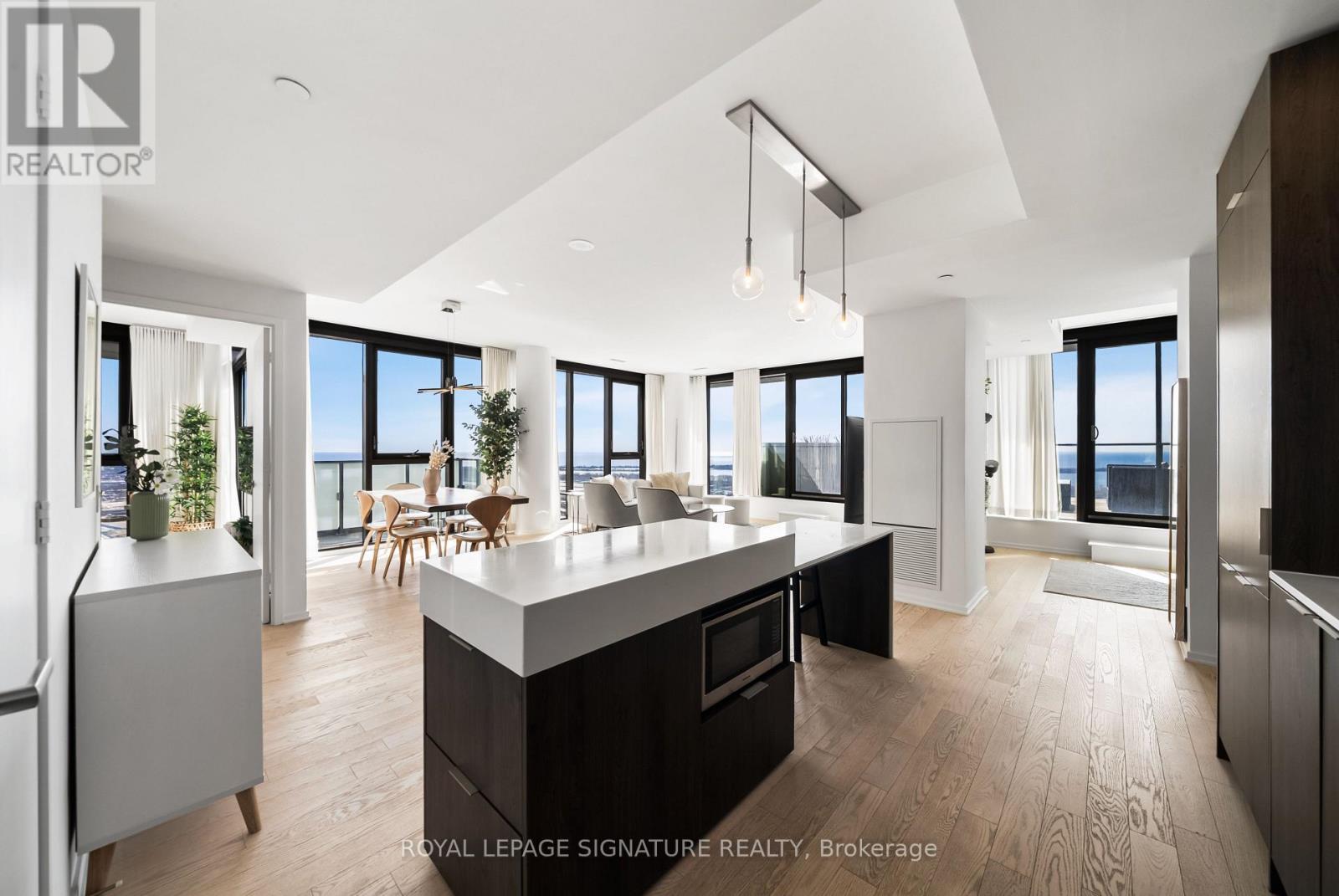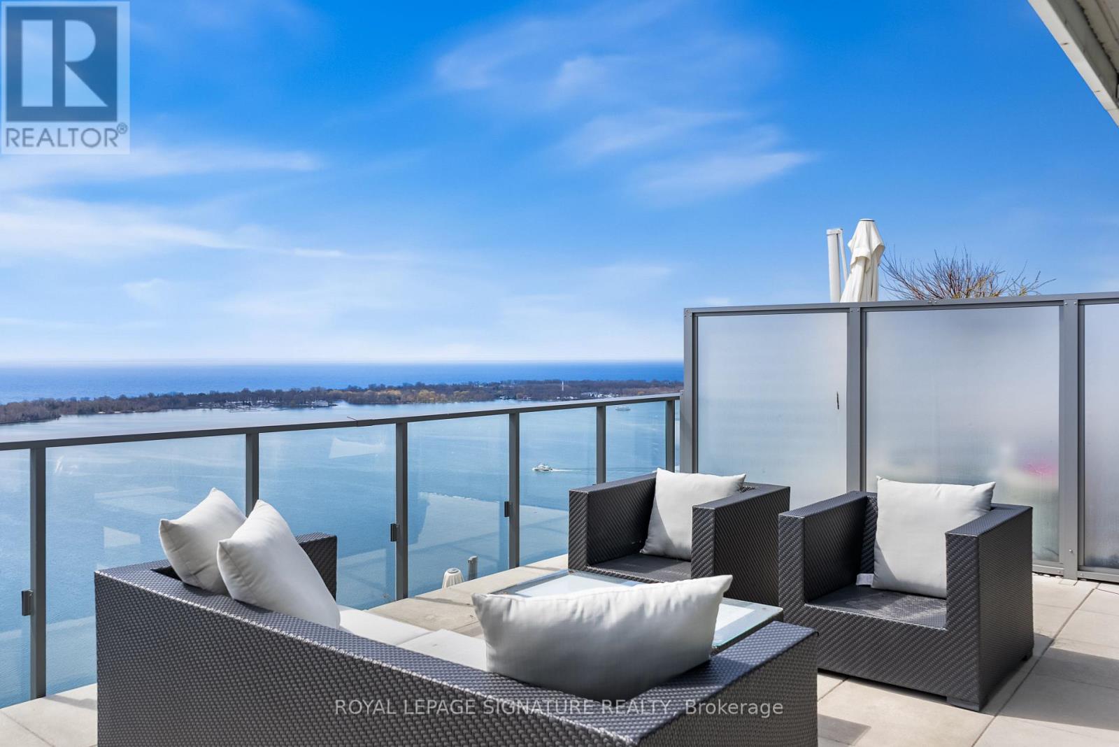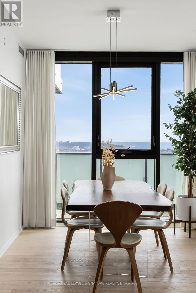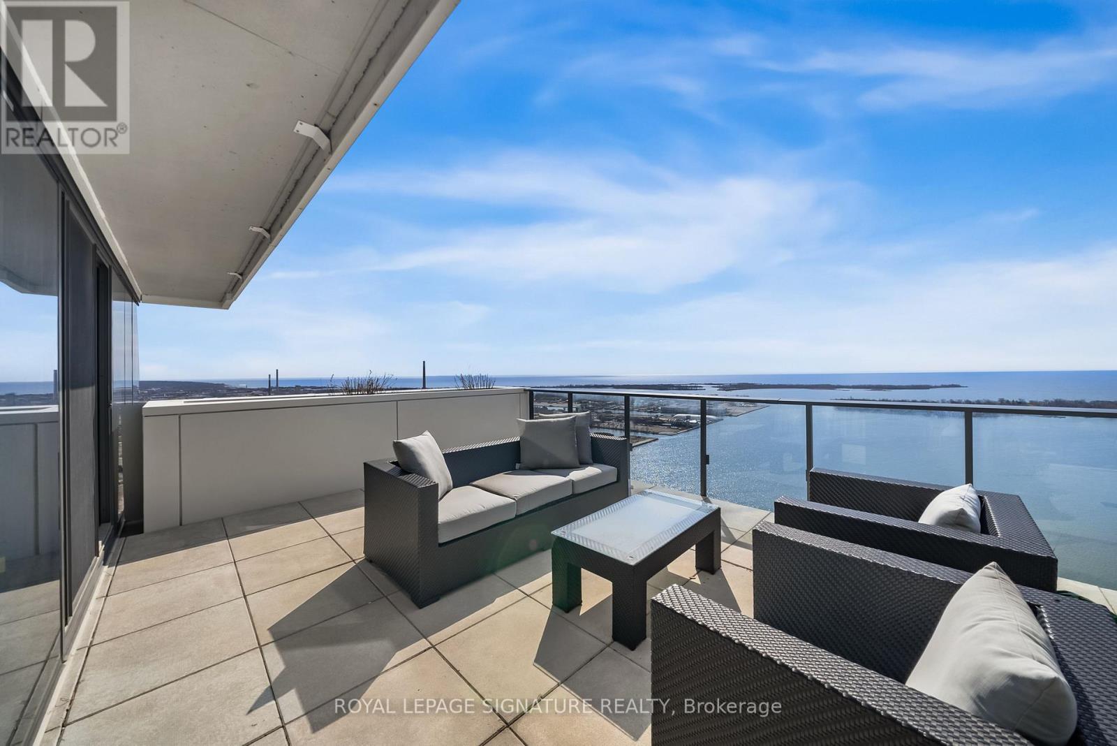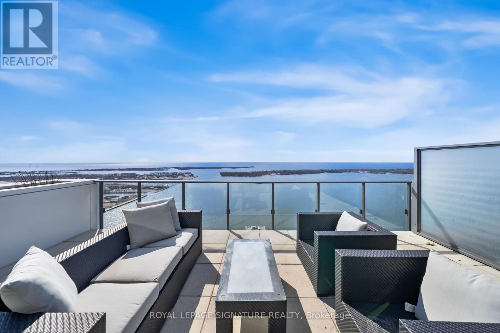 Perched high above the city on the 43rd floor, this expansive and impeccably updated 3-bedroom residence at 16 Bonnycastle offers a rare blend of luxury, space, and breathtaking panoramic views. Floor-to-ceiling windows wrap the suite in natural light, showcasing unobstructed vistas of the lake and skyline from nearly every room. Designed for both comfort and sophistication, the open-concept layout features modern upgrades throughout, with elegant finishes and generous principal rooms ideal for entertaining or everyday living. The seamless indoor-outdoor flow extends to two private terraces, perfect for morning coffee, sunset dining, or simply taking in the serene waterfront scenery. The spacious primary suite offers a tranquil retreat, complemented by well-appointed secondary bedrooms that provide flexibility for family, guests, or a dedicated home office. Every detail has been thoughtfully curated to elevate the living experience. Located in a prestigious, amenity-rich building, residents enjoy access to world-class facilities including a state-of-the-art fitness centre, outdoor pool, concierge service, party room, and more. Just steps from the waterfront, parks, trails, and vibrant downtown conveniences, this address combines the best of urban living with the calm of lakeside luxury. A truly exceptional offering in one of the city's most sought-after waterfront communities. (id:50787)
