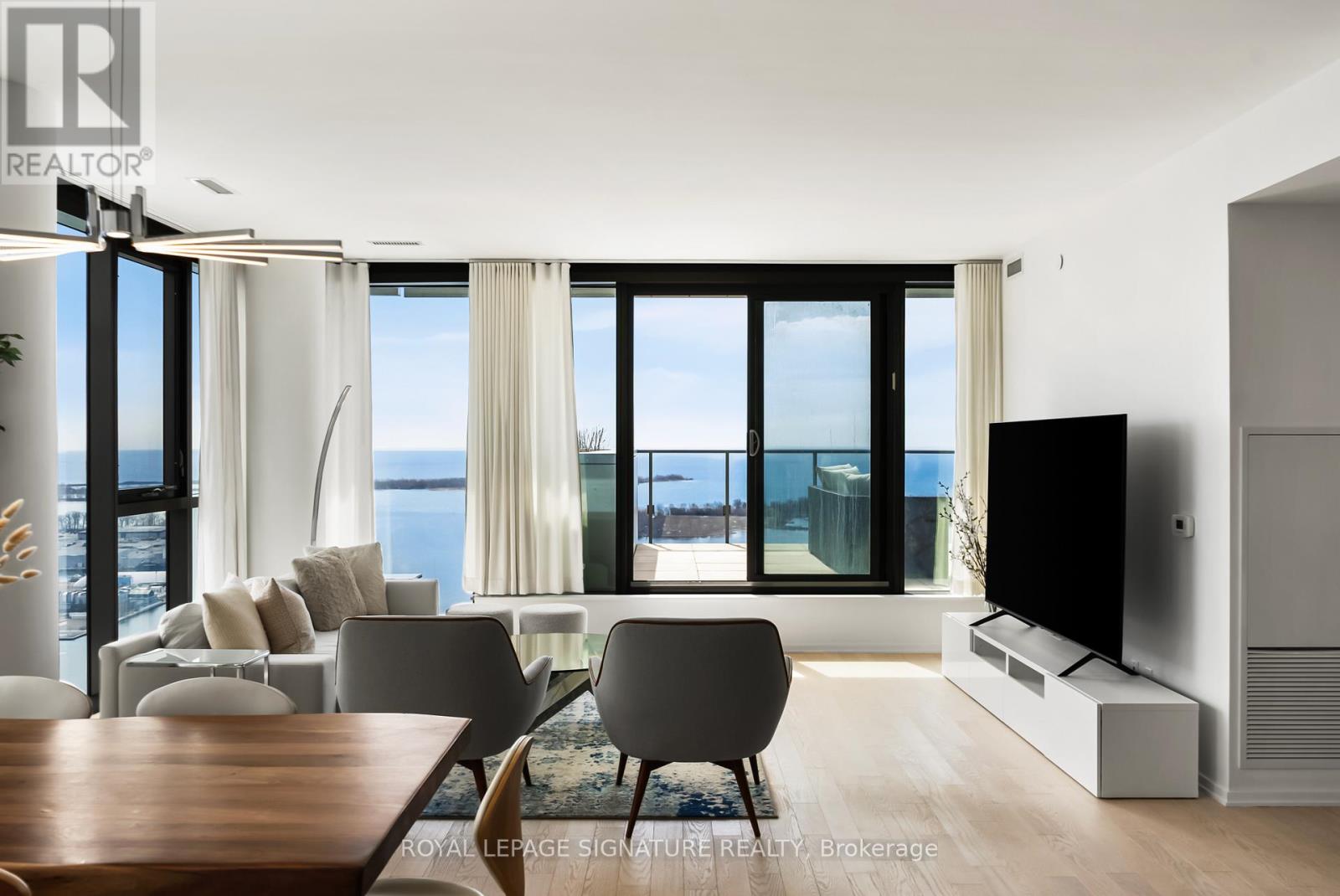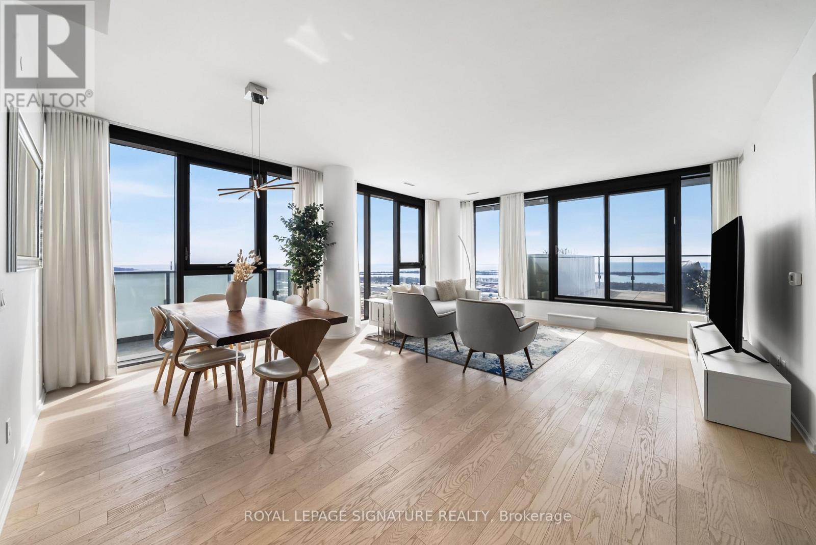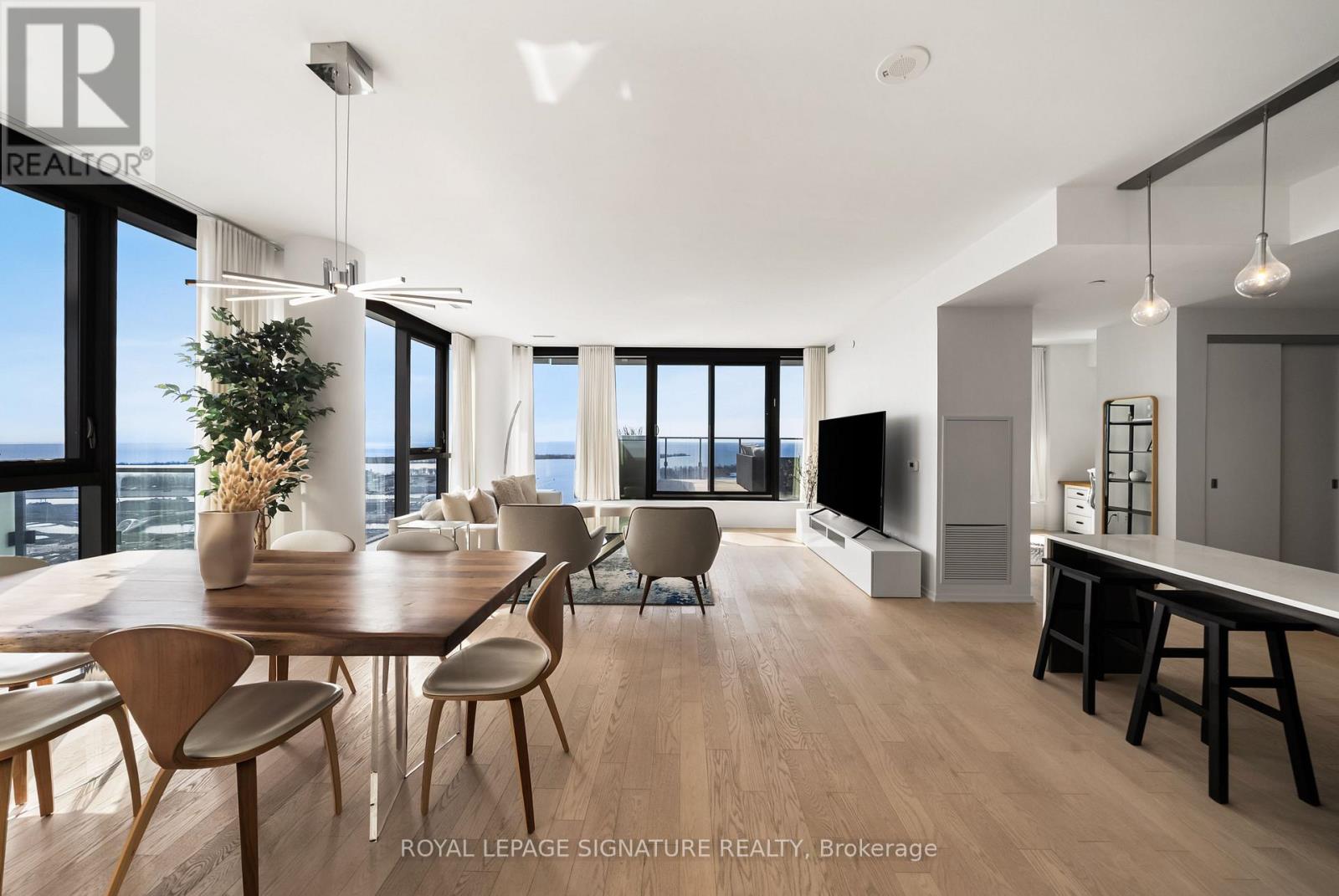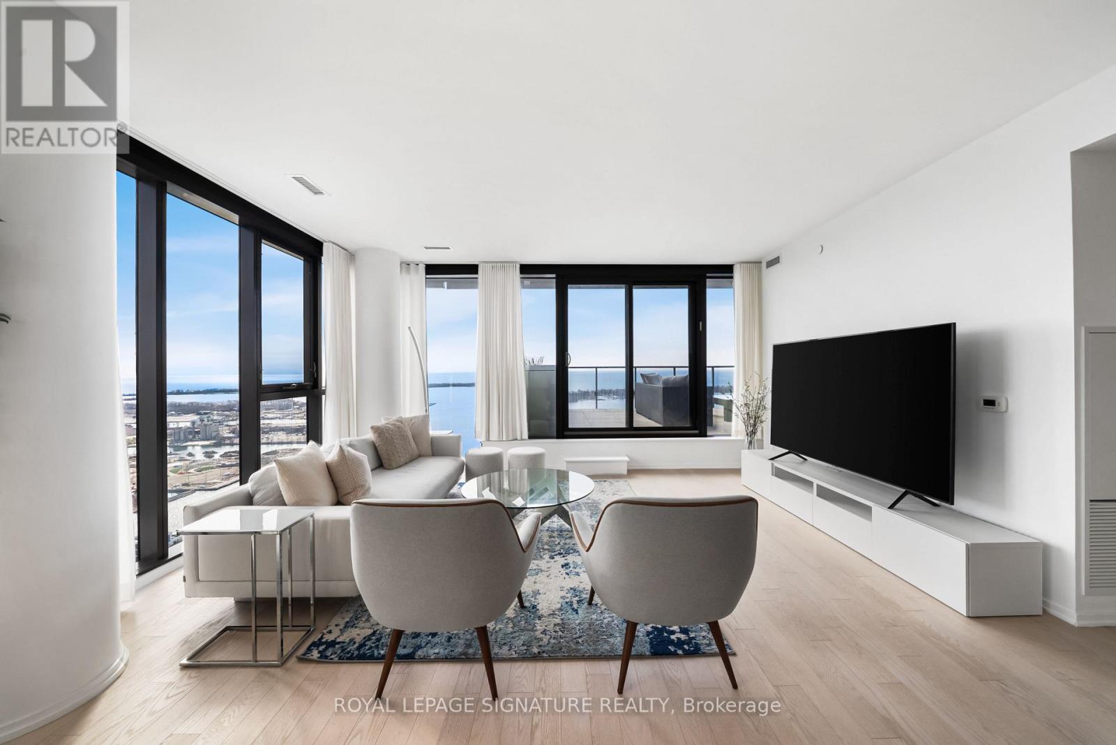 Perched high above the city on the 43rd floor, this expansive and impeccably updated 3-bedroom residence at 16 Bonnycastle offers a rare blend of luxury, space, and breathtaking panoramic views. Floor-to-ceiling windows wrap the suite in natural light, showcasing unobstructed vistas of the lake and skyline from nearly every room. Designed for both comfort and sophistication, the open-concept layout features modern upgrades throughout, with elegant finishes and generous principal rooms ideal for entertaining or everyday living. The seamless indoor-outdoor flow extends to two private terraces, perfect for morning coffee, sunset dining, or simply taking in the serene waterfront scenery. The spacious primary suite offers a tranquil retreat, complemented by well-appointed secondary bedrooms that provide flexibility for family, guests, or a dedicated home office. Every detail has been thoughtfully curated to elevate the living experience. Located in a prestigious, amenity-rich building, residents enjoy access to world-class facilities including a state-of-the-art fitness centre, outdoor pool, concierge service, party room, and more. Just steps from the waterfront, parks, trails, and vibrant downtown conveniences, this address combines the best of urban living with the calm of lakeside luxury. A truly exceptional offering in one of the city's most sought-after waterfront communities. (id:50787)