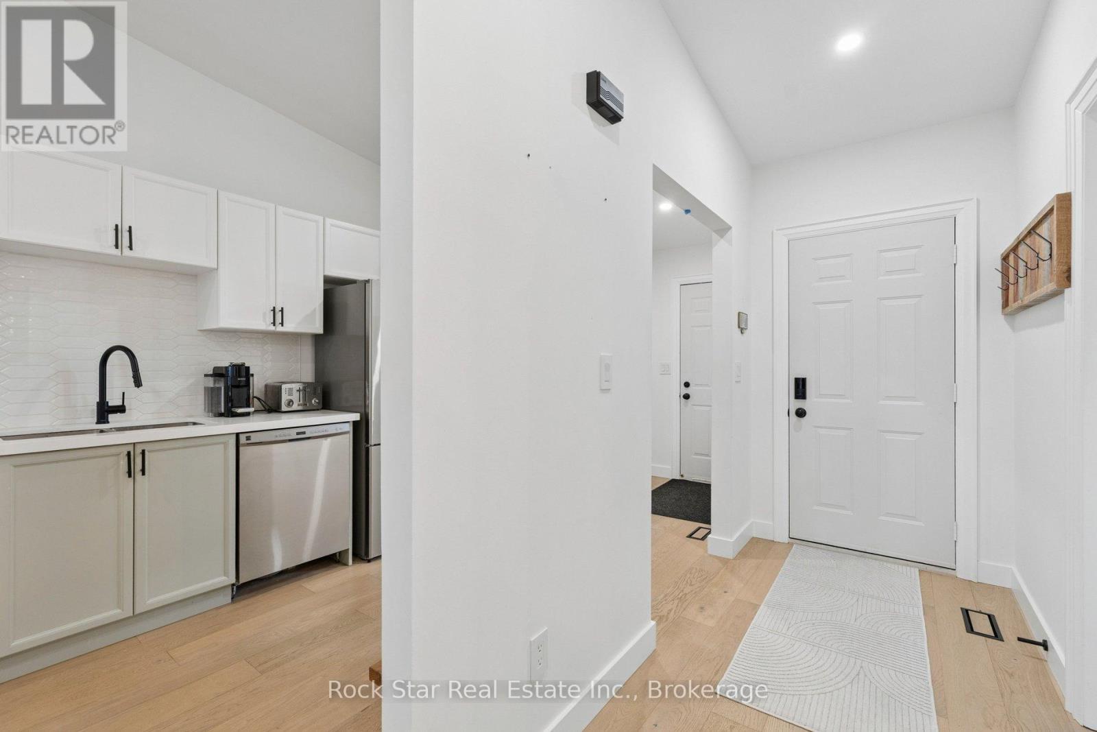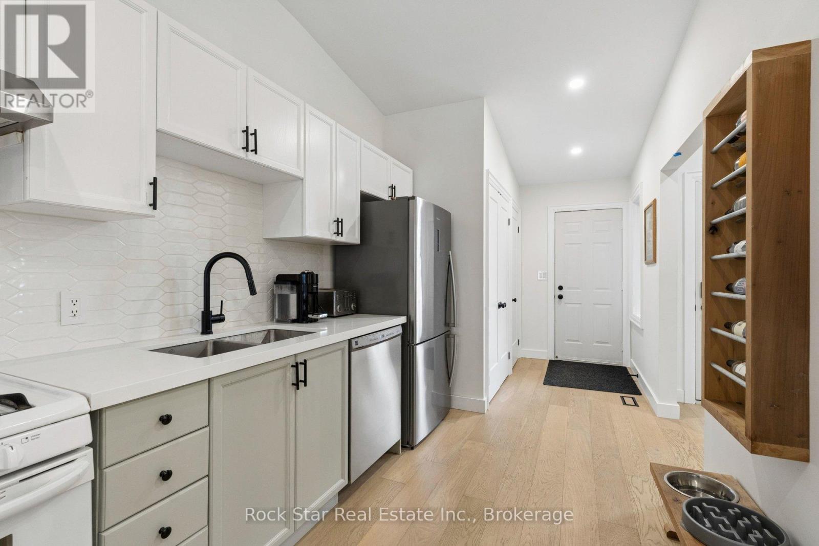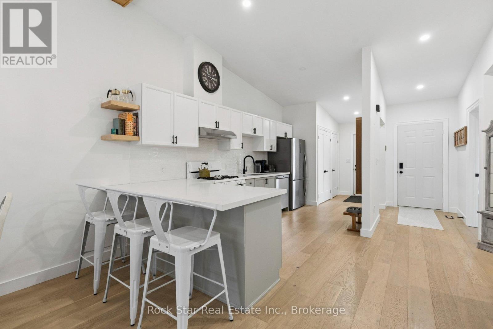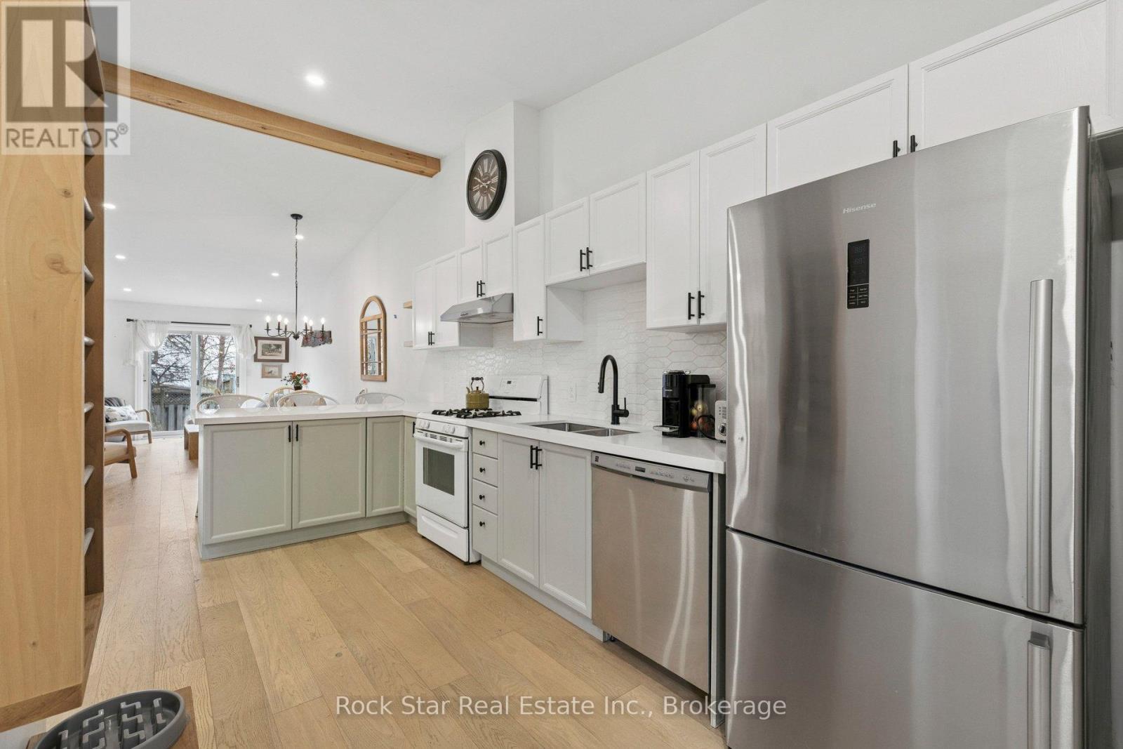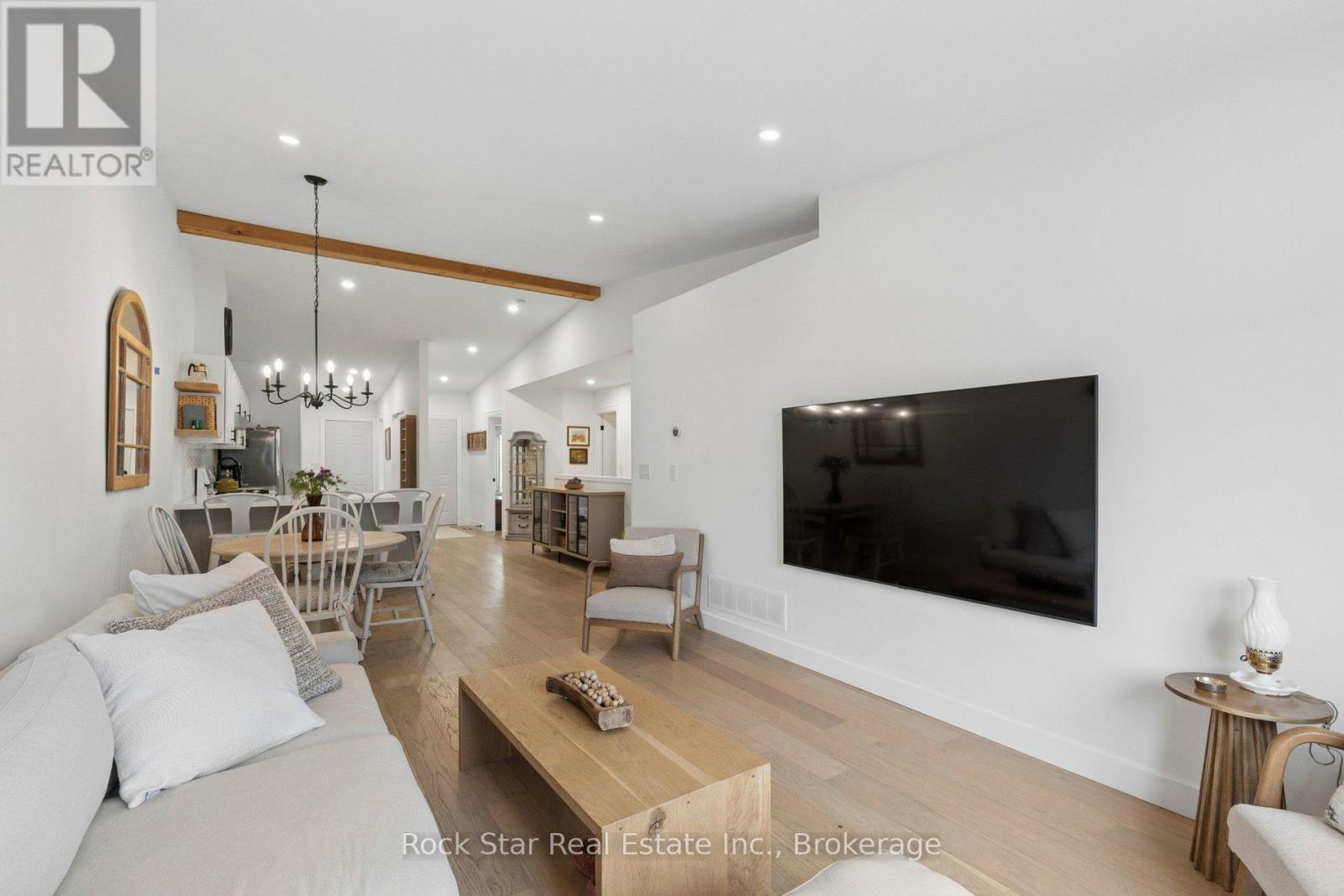 Rarely offered 2+1-bedroom, 2-bathroom freehold bungalow townhome in Beamsville with no condo fees. FULLY RENOVATED WITH LUXURY FINISHINGS and move-in ready; offering easy single-level living.The main floor features an open layout with vaulted ceilings, new pot lights, and engineered hardwood throughout. The eat-in kitchen has updated countertops, backsplash, modern fixtures, and a built-in pantry. Sliding doors from the living room lead to a private, fully fenced backyard with a large deck. The primary bedroom includes a built-in closet and its own ensuite. Both bathrooms recently renovated. The partially finished basement offers an additional bedroom and plenty of storage space. Attached garage with inside entry and a long private driveway. Conveniently located within minutes from the QEW and close to downtown Beamsville, parks, schools, and local wineries. (id:50787)