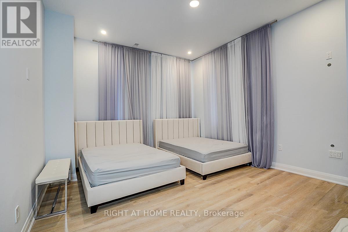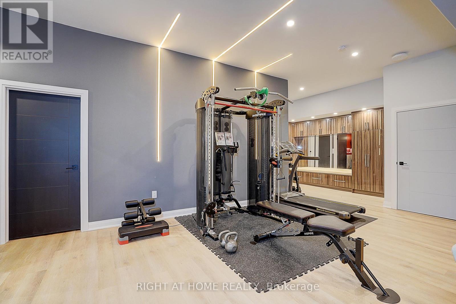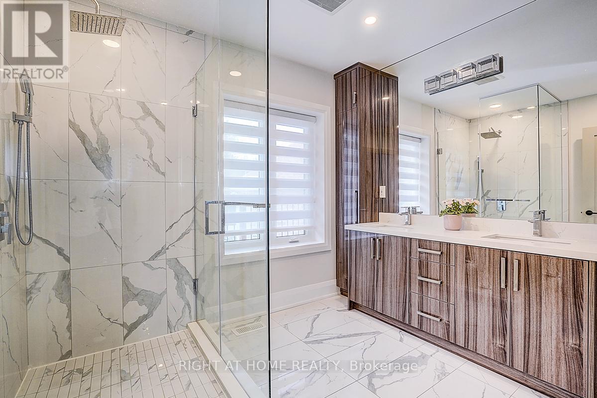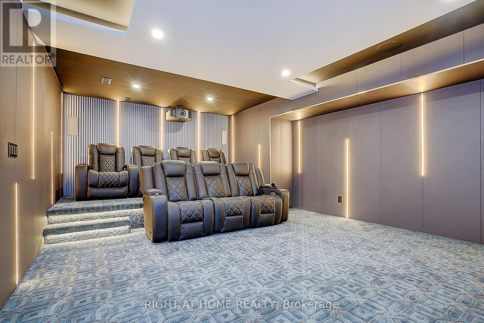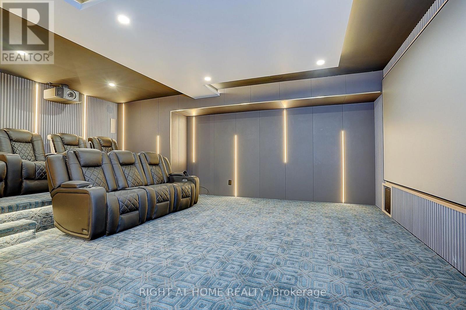 Rare Modern French Luxury Bungalow Estate. A rare offering in today's market, this exceptional Modern French-inspired luxury bungalow redefines high-end living by seamlessly combining estate-level luxury with unparalleled everyday convenience-all on one expansive level. Set on a 2-acre private lot backing onto an endless forest, the home welcomes you with a crescent-shaped driveway and refined architectural detailing. Inside 12' ceiling (Main), solid walnut chevron flooring, custom plaster wall trims, medallion ceilings, and a dramatic floating marble TV and fireplace wall reflect timeless Modern French craftsmanship. The gourmet kitchen is fully equipped with elite appliances, including a 72" see-through Sub-Zero refrigerator and freezer, Wolf gas cooktop, and Miele built-in coffee machine, steam oven, and dishwasher-designed to elevate daily living hile supporting effortless entertaining. The main-level primary suite offers a true spa retreat, featuring a luxury ensuite bathroom with wet sauna, premium fixtures, and smart toilets that enhance comfort and hygiene throughout. An elegant entryway with floating custom cabinetry provides discreet and functional storage. What truly sets this bungalow apart is its fully developed 3,000-square-foot lower level, thoughtfully designed for both lifestyle and recreation. It includes a professional dance studio (10'), gym, walk-in temperature-controlled wine cellar, traditional wood sauna, snooker area, private Home Theater, and an additional ensuite bedroom-ensuring space for every passion without sacrificing main-floor convenience. The three-car garage features a golf simulator room and an upper loft offering exceptional flexibility. Outdoor living is elevated with a super-sized concrete rooftop deck, creating a four-season retreat surrounded by nature. An extended concrete driveway into the backyard further enhances functionality and scale. (id:50787)