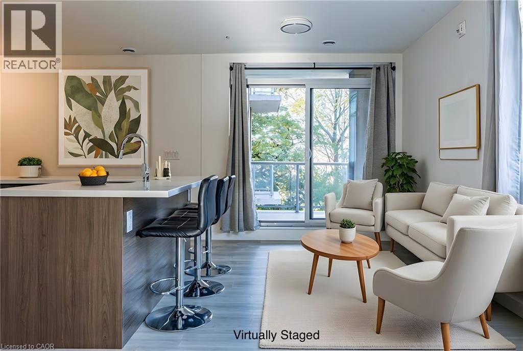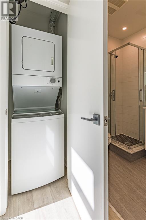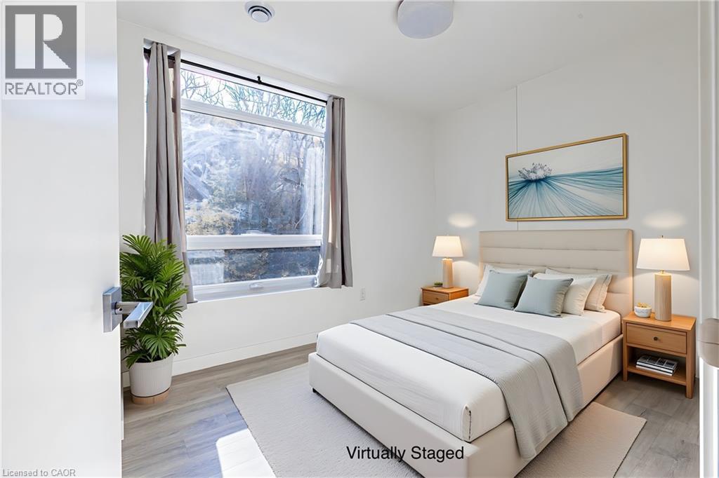 Excellent Value @ Stylish and Modern Vista Condos Built 2020. Live right next to nature while nearby city conveniences! Excellent Central Location - Perfect for Business Professionals working Downtown & Healthcare Workers as its steps to St. Joes Hospital and minutes to many area Hospitals. Open concept Elm layout boasts 811 square feet - 2 Beds, 2 Baths. Corner unit with Escarpment & City Views - Oversized Windows and Sliding Doors provide plenty of Natural Light & Lake views. Freshly painted! Large Quartz Counter in sizeable U-shaped Kitchen with Breakfast Bar & Glass Backsplash. Ample Cupboard space. Stainless appliances include Fridge, Stove, Microwave/Range Hood & Dishwasher. Many Upgrades: Floors, Cabinets, Backsplash, Countertop, Bathroom Tiles & Lighting. Both Bedrooms with Large Closets - Primary features gleaming all white 4pc Ensuite. Second Bed or Home Office. Main 3pc Bath with Glass Shower - so each Bedroom has their own Bath. Convenient In-Suite Laundry includes Stacking Washer/Dryer. Spacious Balcony with Northeast Exposure offers room for Outdoor Dining & Relaxation. Includes owned Storage Locker and Underground Parking Space. Nearby trendy Corktown & Augusta, green space, trails, bike share, transit, shopping, restaurants, coffee shops, schools & parks! Fees include Heat, AC & Water plus Exterior Maintenance & Building Amenities featuring: Motion activated LED Lighting, Acoustic Underlay for Sound Insulation. Beautiful Lobby with Water Feature. Common Outdoor Terraces with BBQs. Well equipped Gym. Party Room with Kitchen & Fireplace. Bike Storage. Security. Visitor Parking. Dog friendly - one dog, one cat, a cat and a dog, or two cats per unit. *Quick closing available* Do not miss this opportunity! Some photos virtually staged.. (id:50787)
