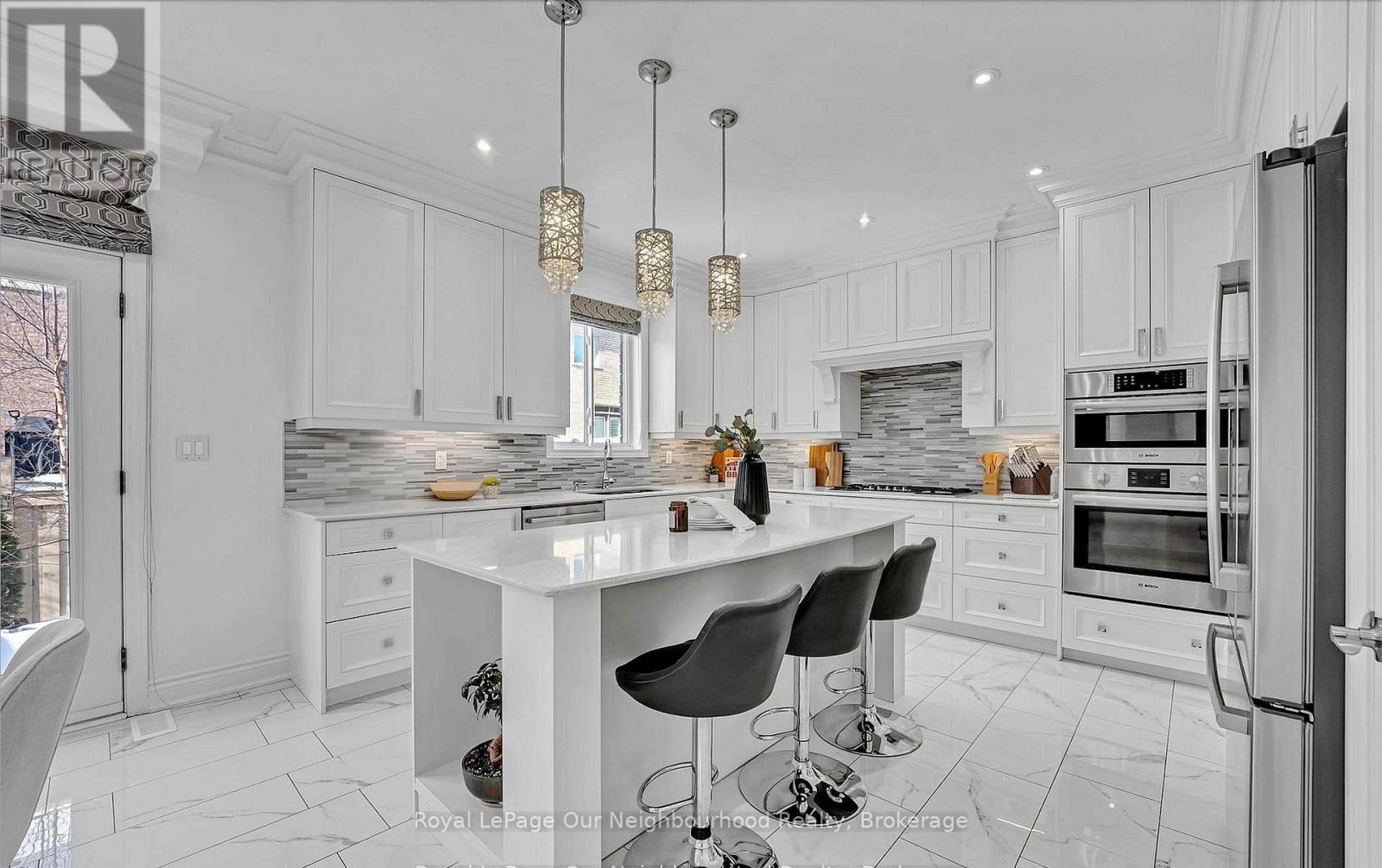 Welcome home to this extensively renovated showpiece in sought-after Alton Village, offering over $300,000 in premium upgrades and completely move-in ready condition. From the upgraded exterior elevation and stone-and-brick facade to the full aggregate landscaping front and back, this home delivers exceptional curb appeal and rare garage exposure.Step inside to a grand open-to-above foyer filled with natural light. The main level features 9-ft ceilings, engineered hardwood flooring throughout, iron spindles, plaster crown moulding, coffered ceilings,upgraded lighting, custom drapery, and fresh designer paint. Every detail has been thoughtfully updated with quality craftsmanship.The fully renovated kitchen is a standout, showcasing quartz countertops, extended upper cabinetry, pantry, dedicated desk area, garden doors, and high-end built-in appliances including a gas cooktop, built-in oven and microwave. All bathrooms have been completely renovated with upscalefinishes, frameless glass showers, and a spa-inspired primary ensuite with a luxurious soaker tub. The recently finished basement is fullyupgraded with permits and includes a stylish kitchenette-ideal for extended family living, entertaining, or additional functional space. Additionalupgrades include a new roof (2024), furnace and A/C (2019), replaced window shades, and an epoxy-finished garage floor for a clean, high-endlook. This turnkey home combines luxury, functionality, and peace of mind in one of Burlington's most desirable family communities. Nothing left to do but move in and enjoy. (id:50787)