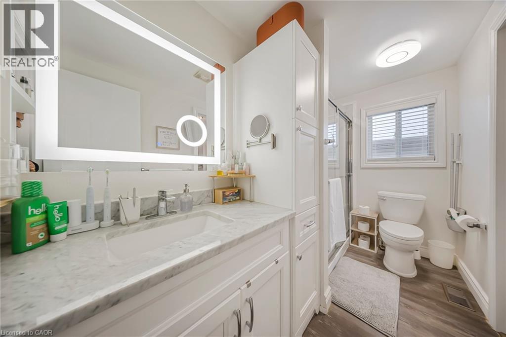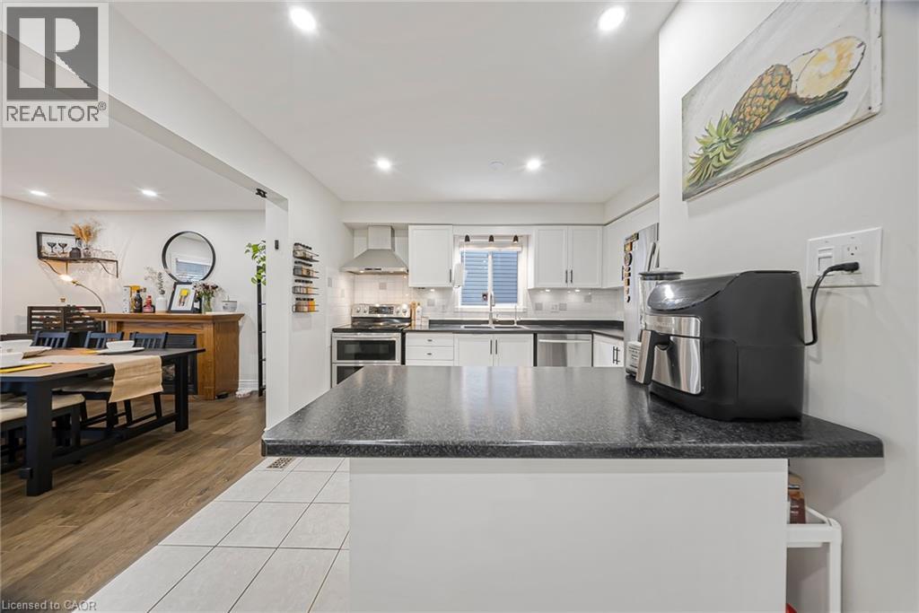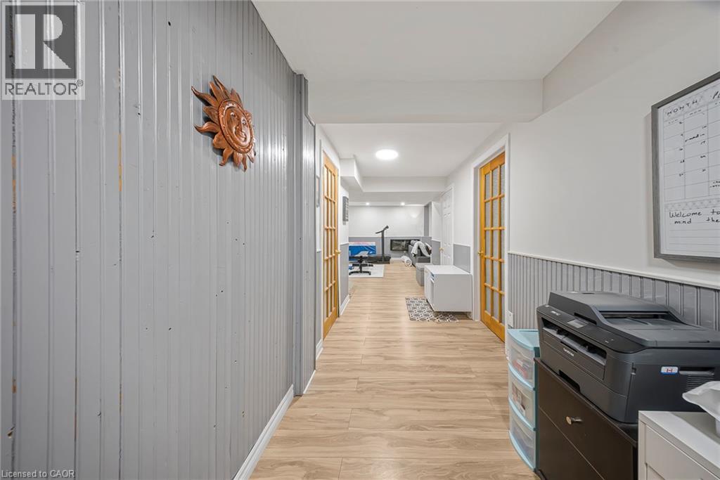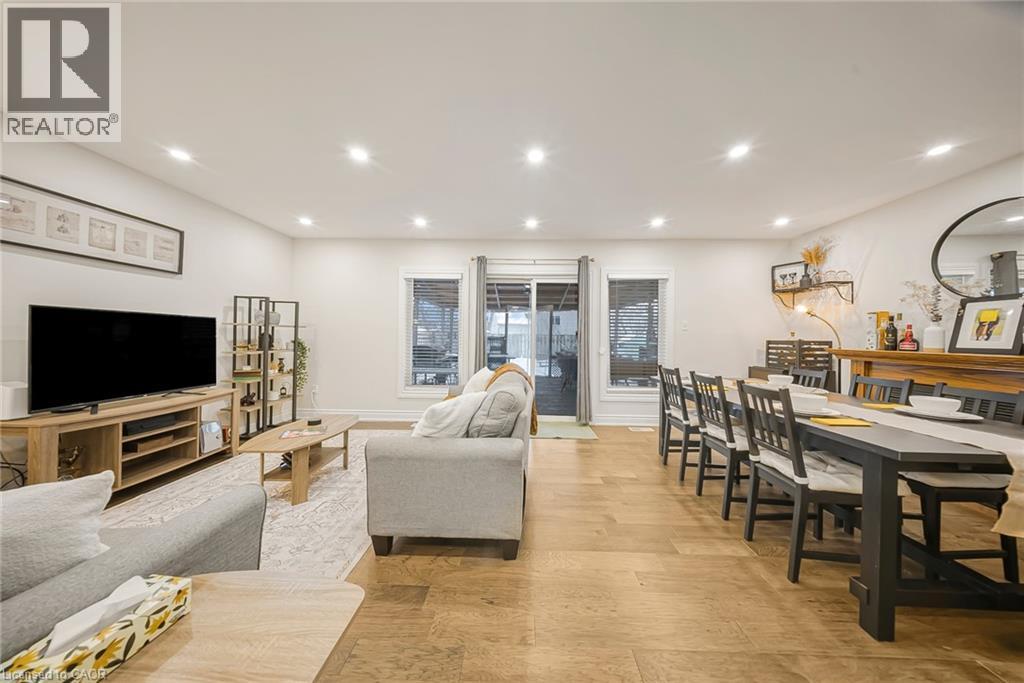 469 Old Newbury Lane, Cambridge - GORGEOUS Fully Renovated Detached Home with Double Car Garage. Welcome to this stunning detached double-car garage home, beautifully finished from top to bottom and move-in ready. The main floor features a bright open-concept layout with a spacious living room highlighted by a cozy corner fireplace, a generous dining area, and sliding doors leading to a huge covered deck-perfect for year-round entertaining. The chef-inspired modern kitchen is a true delight, complete with stainless steel appliances, a Centre island, ample cabinetry, and stylish finishes. The home has been fully renovated with gleaming hardwood floors, fresh neutral paint, and abundant pot lights throughout, creating a warm and elegant ambiance. Upstairs offers 3 good-sized bedrooms and 2 full washrooms, ideal for families. The finished L-shaped recreation room and beautiful basement space provide excellent options for parties, relaxation, or a home theatre/gym setup. Step outside to enjoy beautifully landscaped backyard space, perfect for summer gatherings and family enjoyment. Prime Location: Close to parks, hospital, shopping centers, restaurants, and schools, with easy access to everyday amenities-making it an ideal home for families and professionals alike. A perfect blend of style, comfort, and convenience in one of Cambridge's desirable neighborhoods. (id:50787)