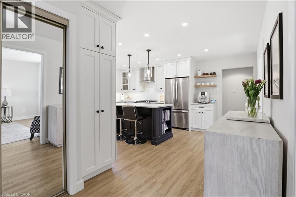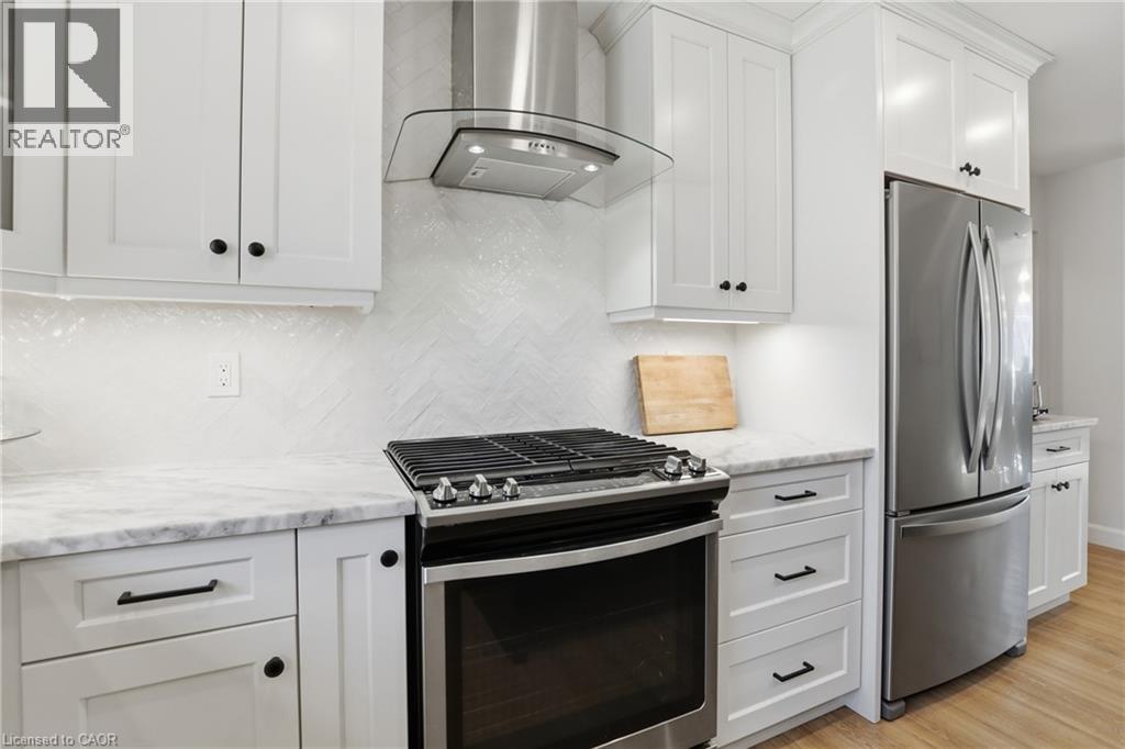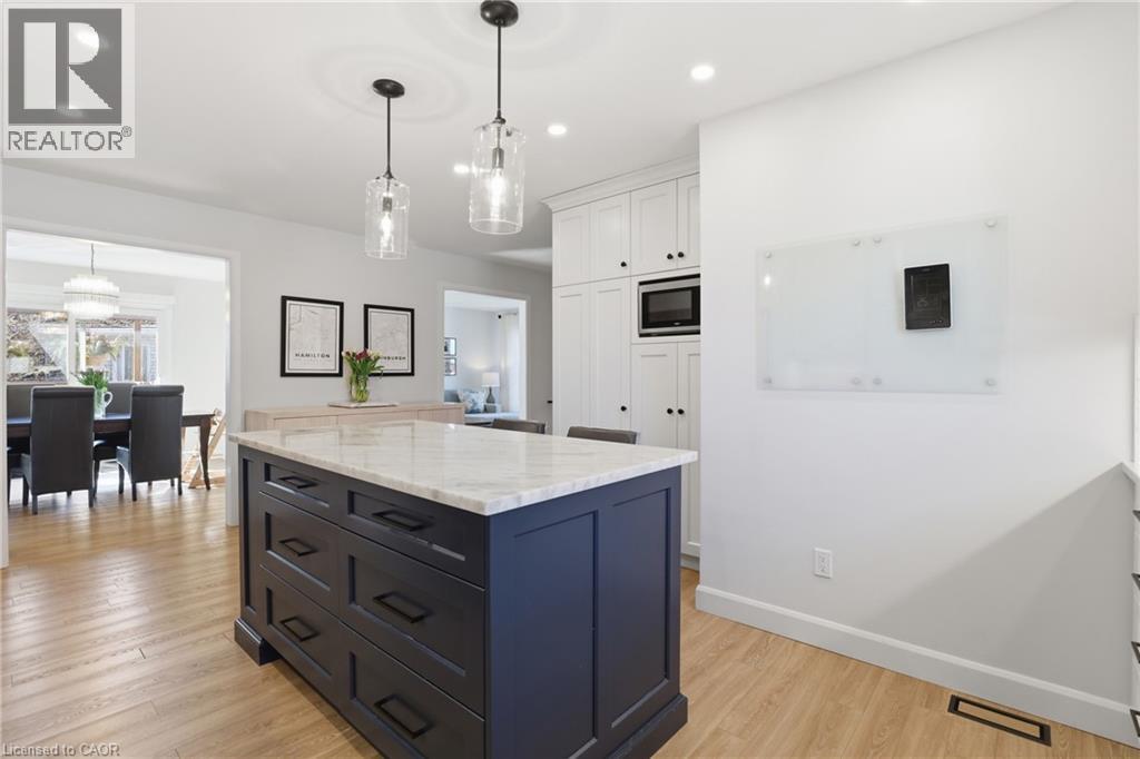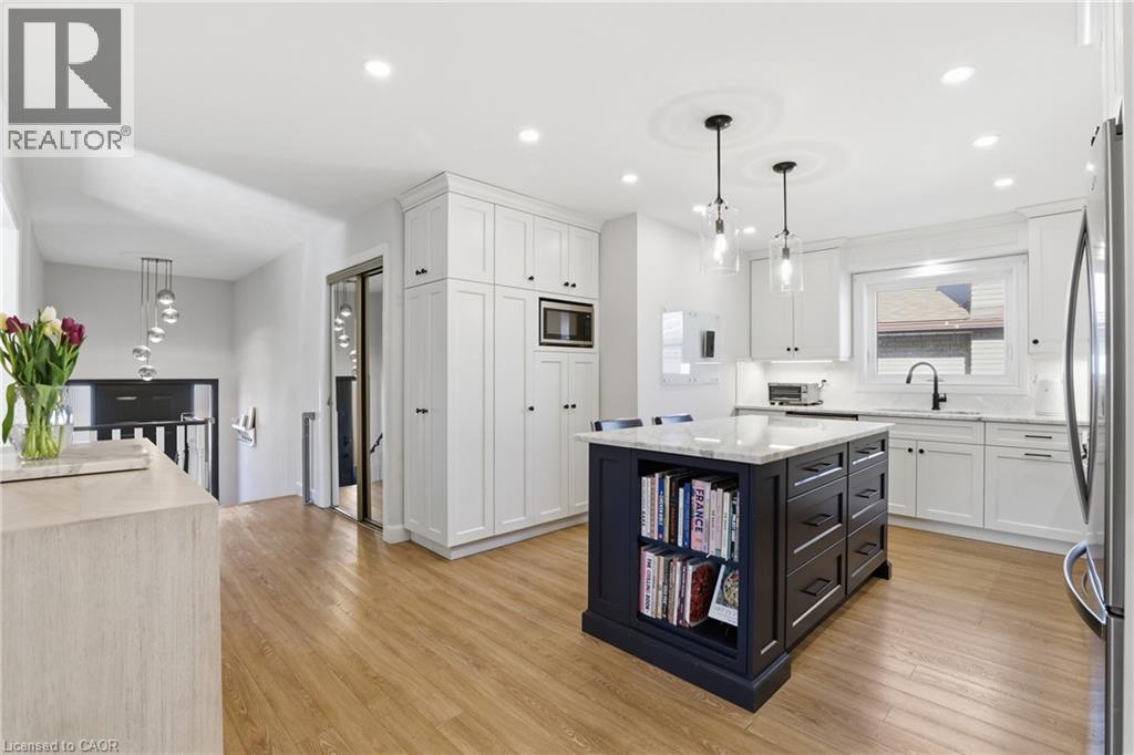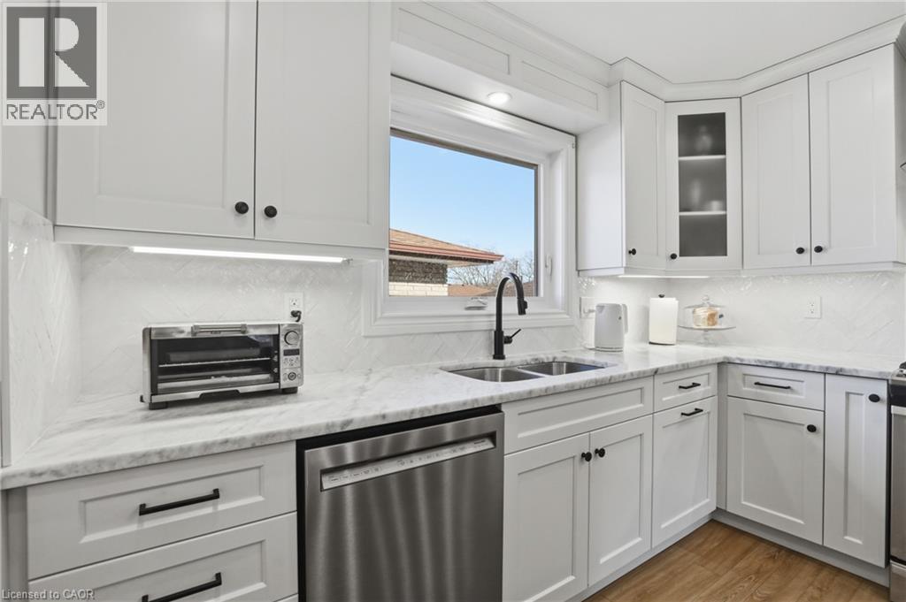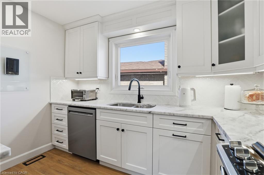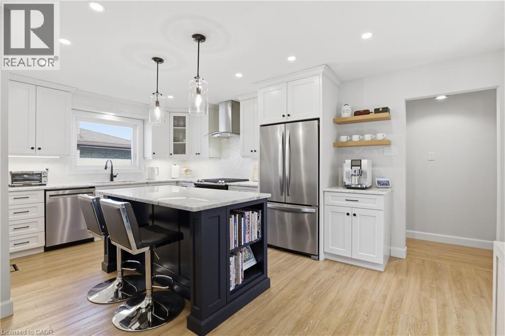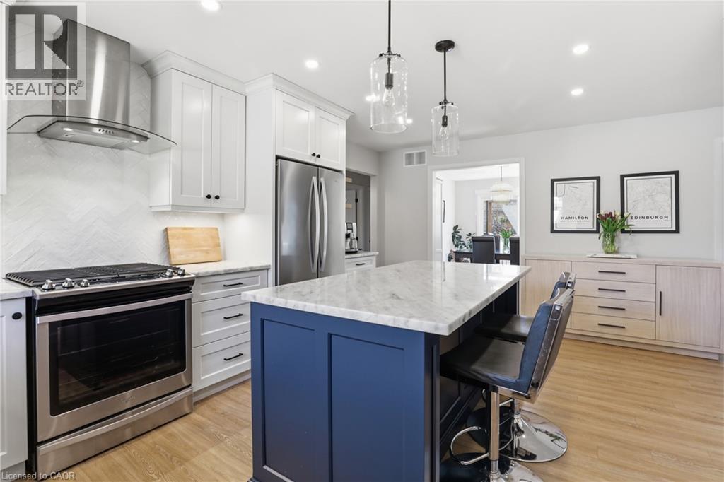 Tucked away on a quiet court on the Hamilton Mountain, this beautifully updated bungalow offers comfort and style in a great location. The renovated kitchen features granite countertops and a large island, perfect for cooking and entertaining. Updated flooring and a modernized bathroom provide a fresh, move-in ready feel, while the cozy living area is highlighted by a charming wood-burning fireplace. Step outside to a private backyard with an interlock patio, ideal for relaxing or hosting family and friends. Conveniently located close to parks, schools, and everyday amenities. (id:50787)
