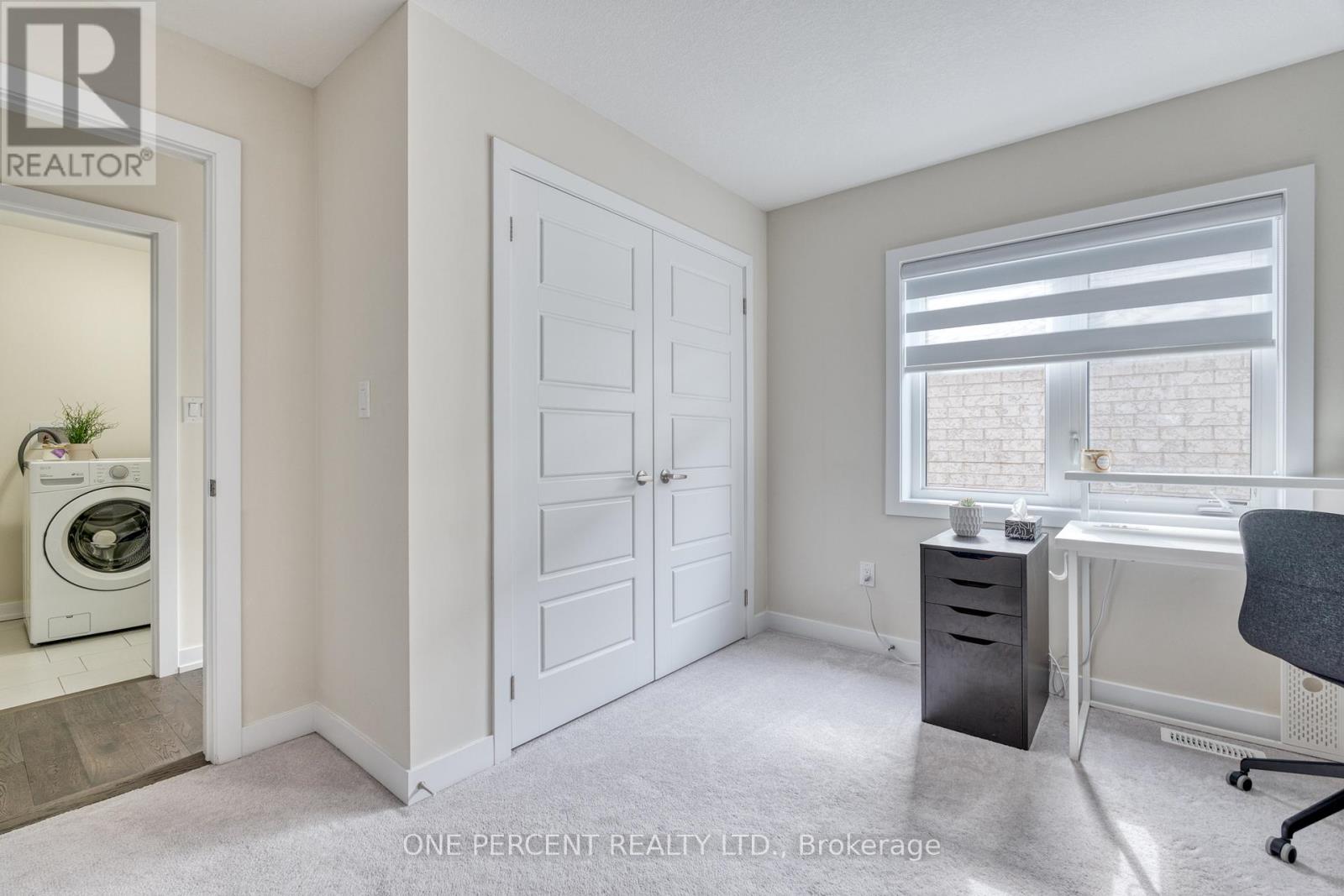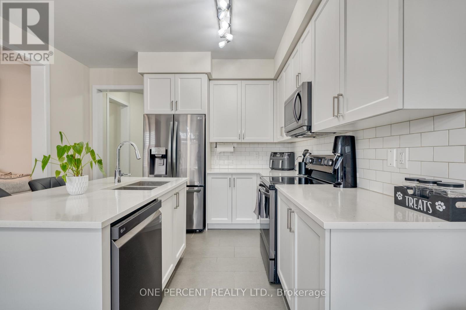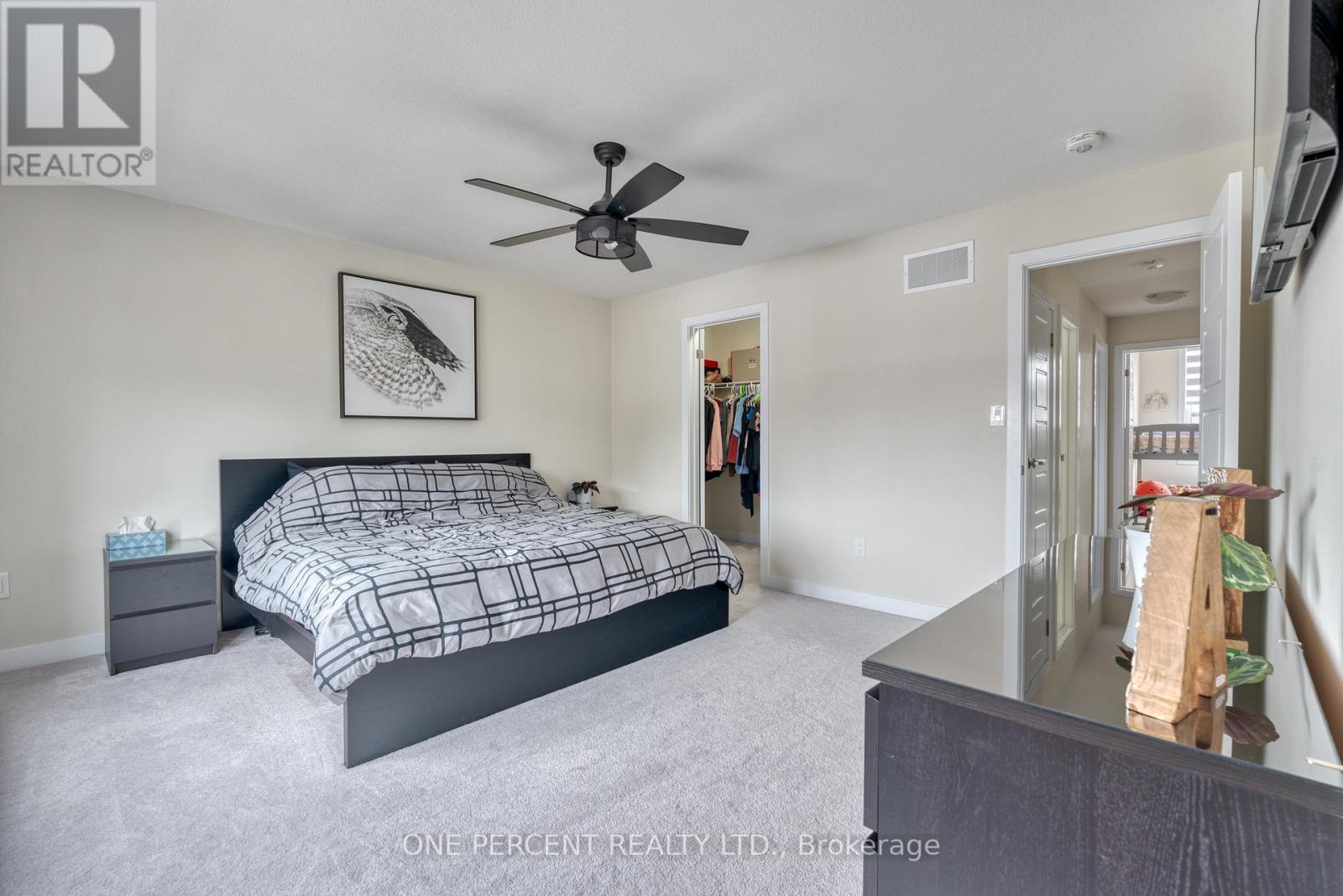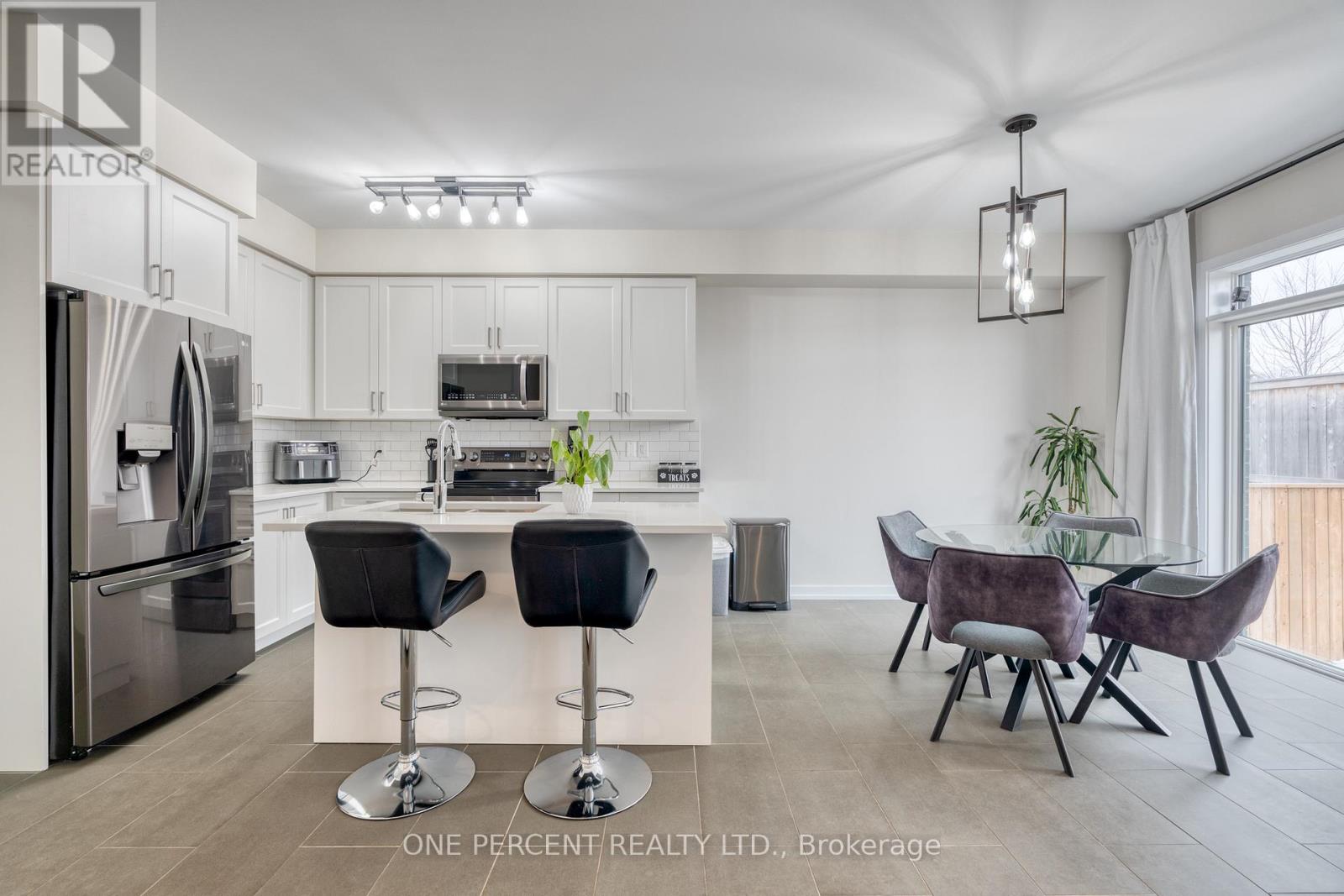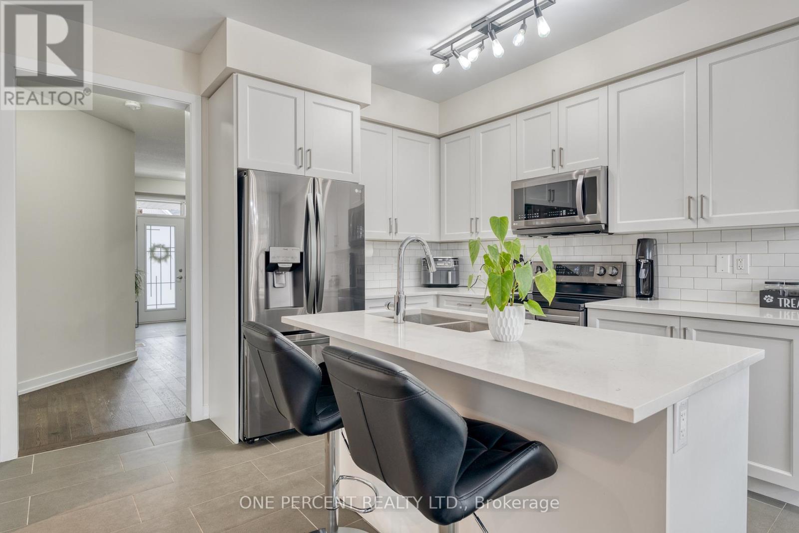 Situated in a quiet neighborhood near the Grand River, this 1,893 square foot home is less than two years old and has been well-maintained. The interior features nine-foot ceilings and hardwood flooring across the entire main level, complemented by a matching oak staircase. The kitchen is finished with quartz countertops, dark stainless steel appliances, and shaker cabinetry. In the adjacent great room, large picture windows with California shutters provide natural light, and a gas fireplace serves as a central point for the space. The second level includes four bedrooms and a dedicated laundry room for convenience. The primary suite serves as a quiet retreat, featuring a walk-in closet and an ensuite bathroom with a frameless glass shower. For those looking for additional space, the large basement remains unfinished and is ready for a personal layout or extra storage. The exterior includes an oversized garage and a driveway with space for three vehicles. This location offers a practical balance of nature and amenities, with easy access to the river trails as well as local schools, grocery stores, and medical services within the Caledonia community. (id:50787)