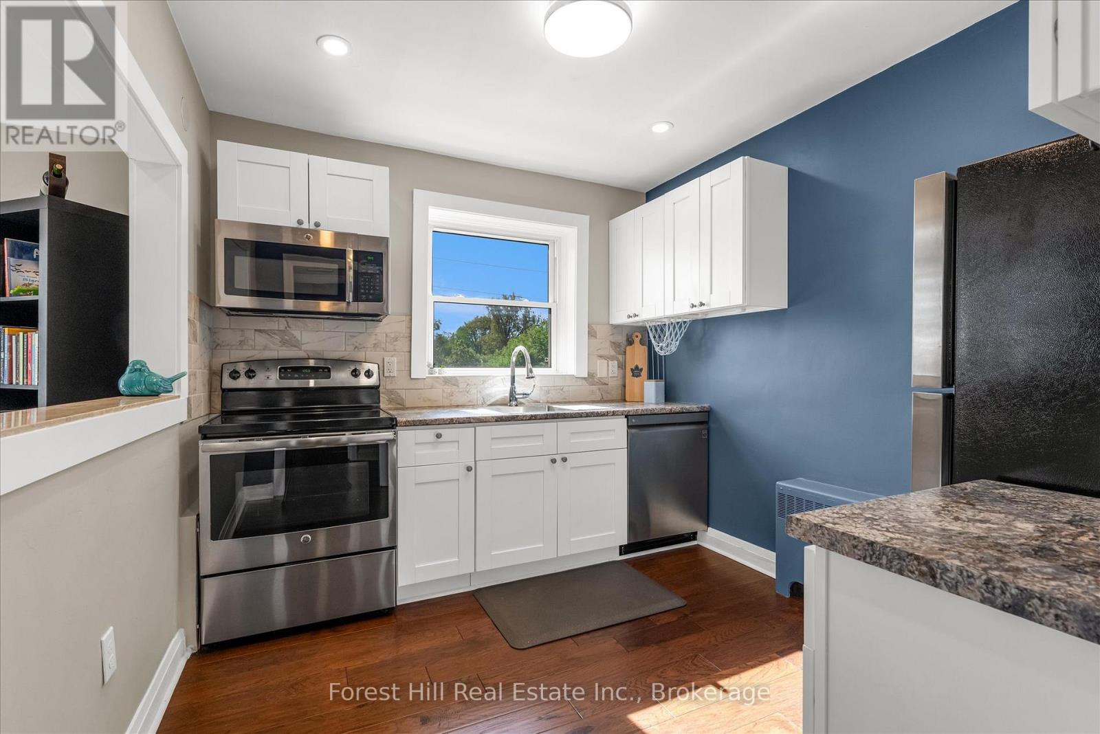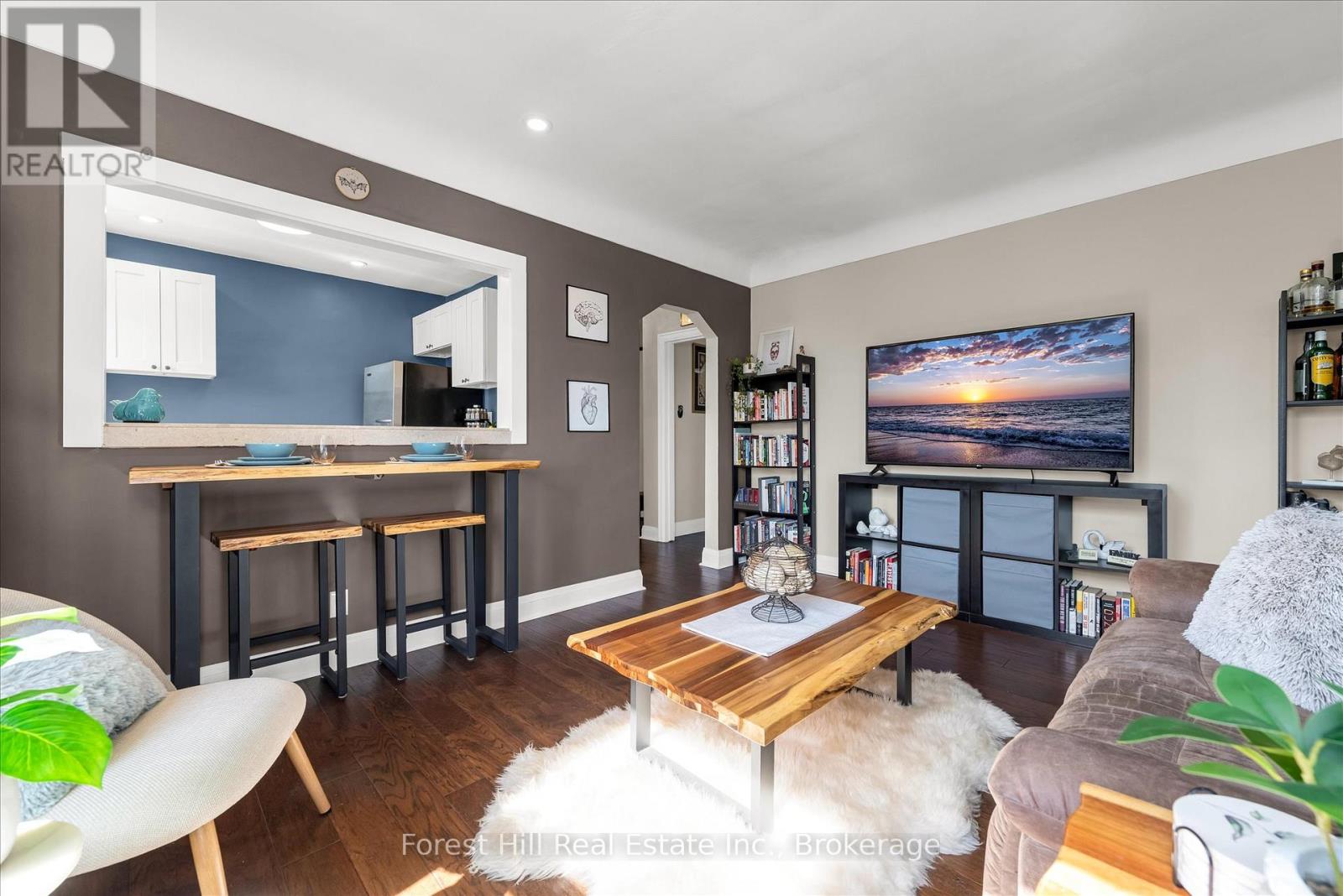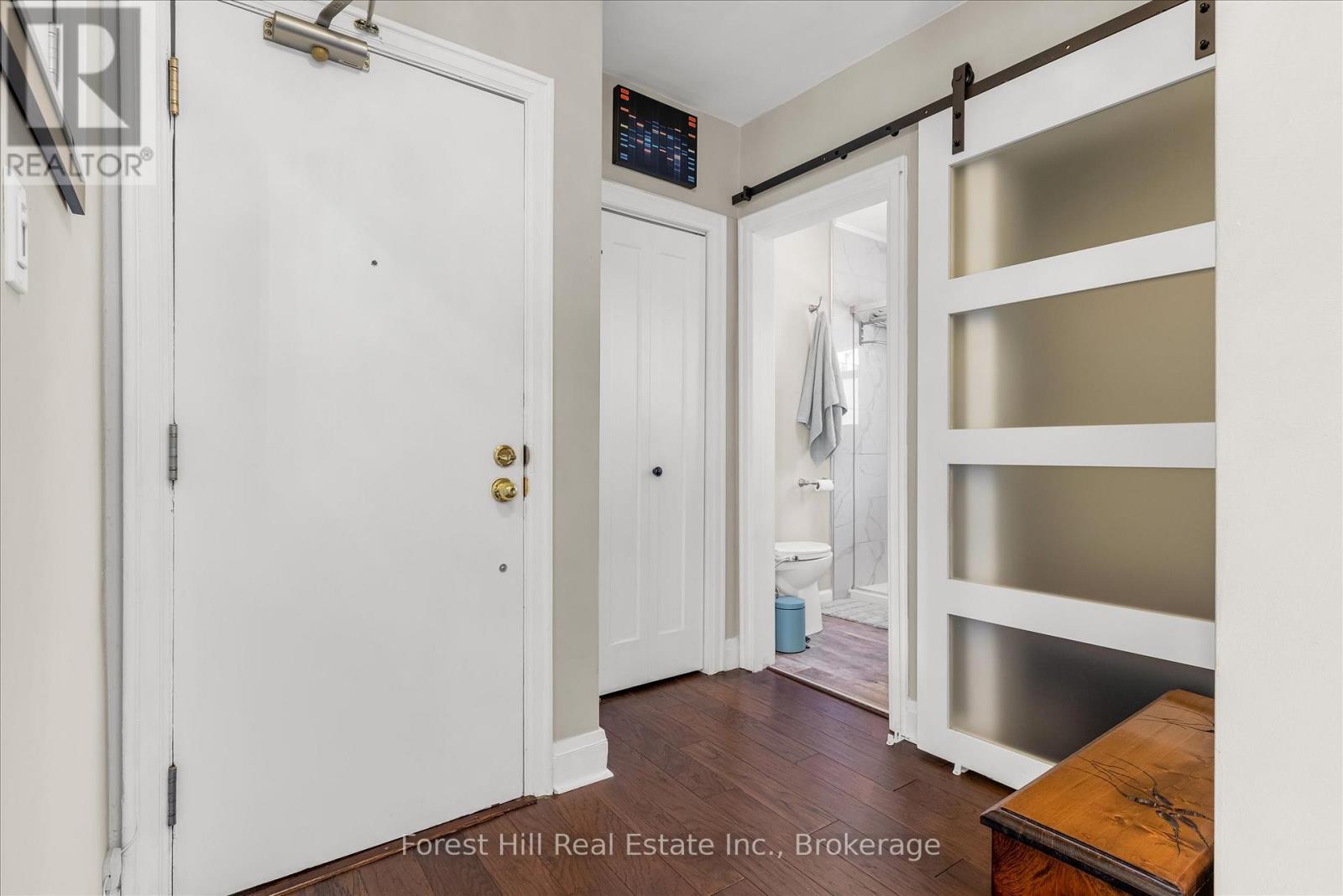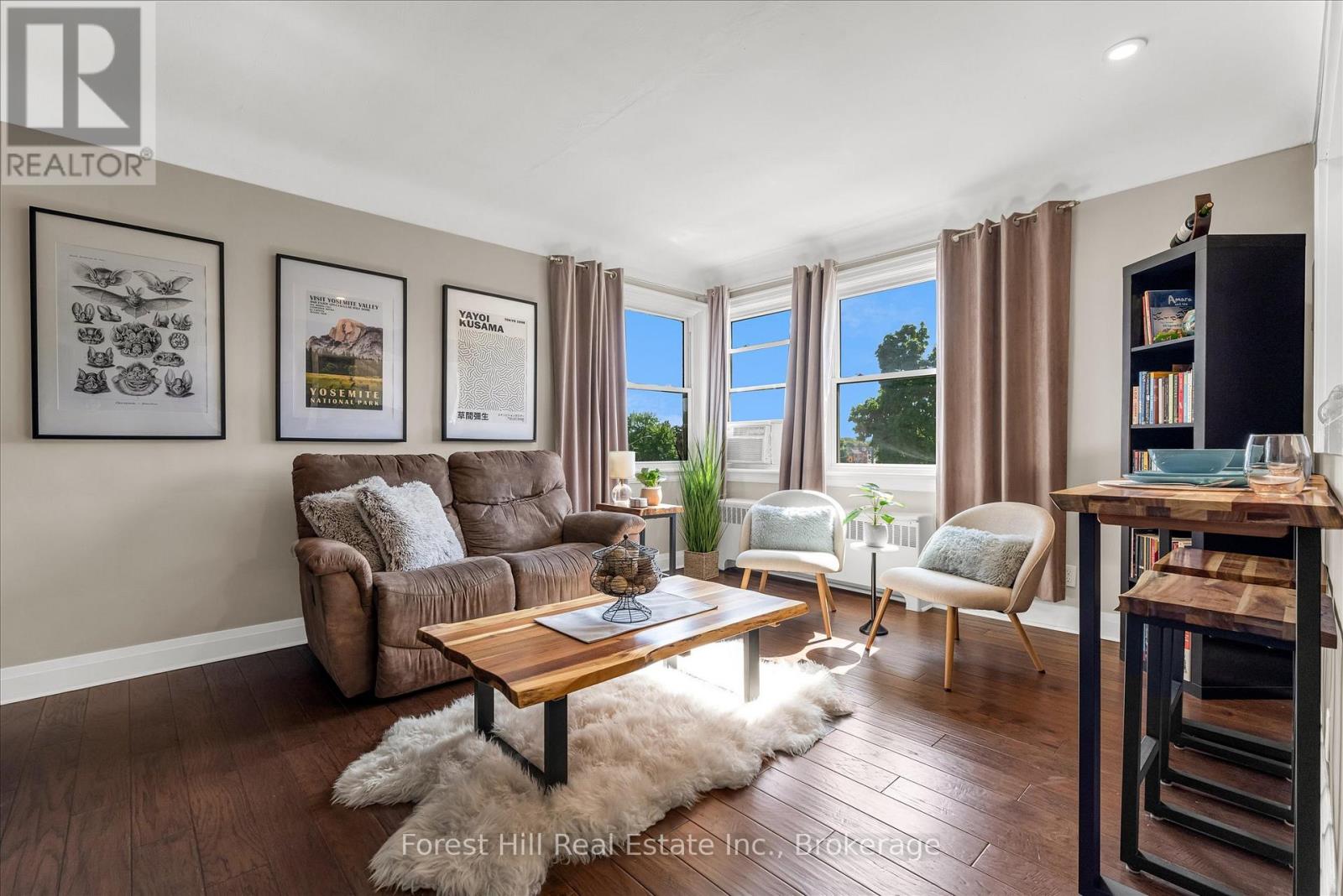 This beautifully renovated co-op apartment blends style and substance. Wide-plank hickory-look engineered hardwood flows throughout. A large kitchen opening brightens the space with natural light and offers great sight-lines. The bathroom is modern with updated plumbing, a window, porcelain tile, and a spacious shower. A sliding barn-style door adds character and privacy to the generous bedroom. The kitchen boasts solid maple shaker cabinets, stainless steel appliances, and dimmable LED pot lights. Smart storage solutions include a foyer closet with built-in bench. Unit has upgraded electrical (panel, wiring, switches, lights), and underfloor soundproofing. Close to McMaster Hospital, cafés, restaurants, transit (80m to bus stop to downtown and 150m to bus stop to Dundas), and highways. Monthly fee: $400 (includes property taxes, heat, water, building insurance).This quiet, adult-only, non-smoking co-operative community promotes pride of ownership. Units must be owner-occupied, ensuring a stable and respectful environment. Potential buyer(s) must be approved by the Board. (id:50787)