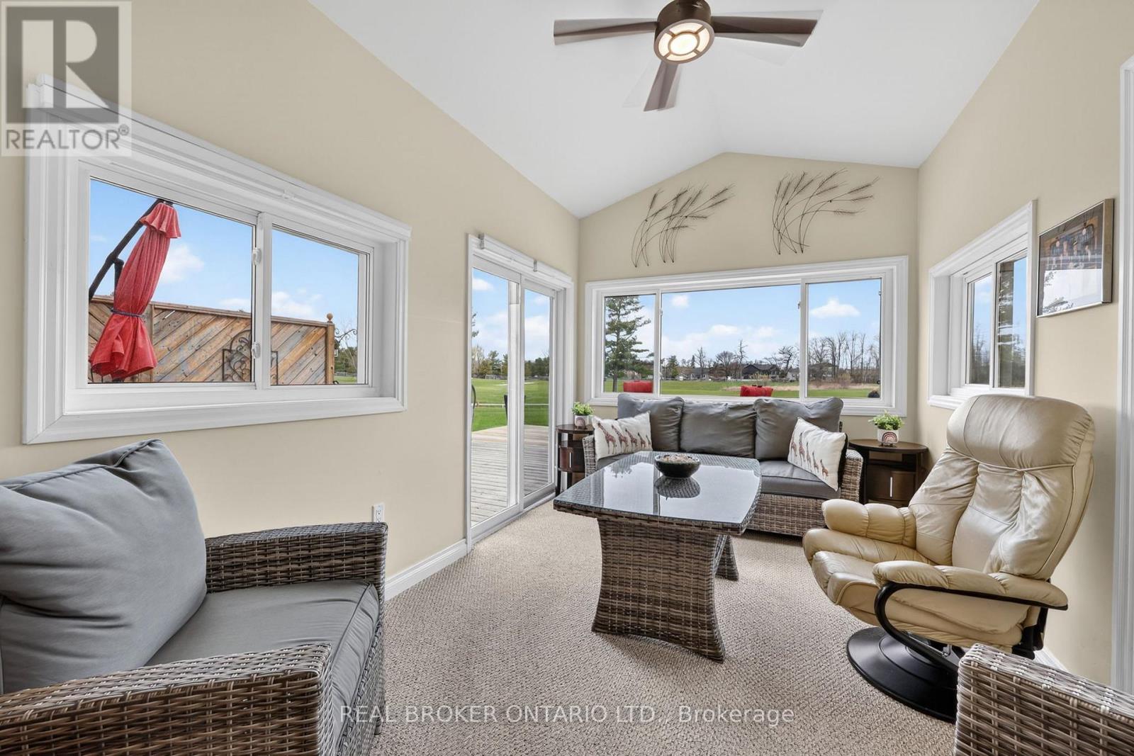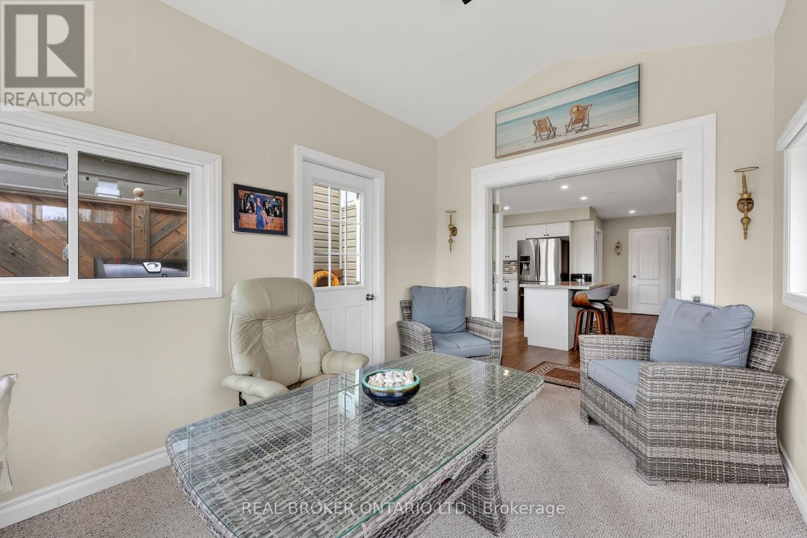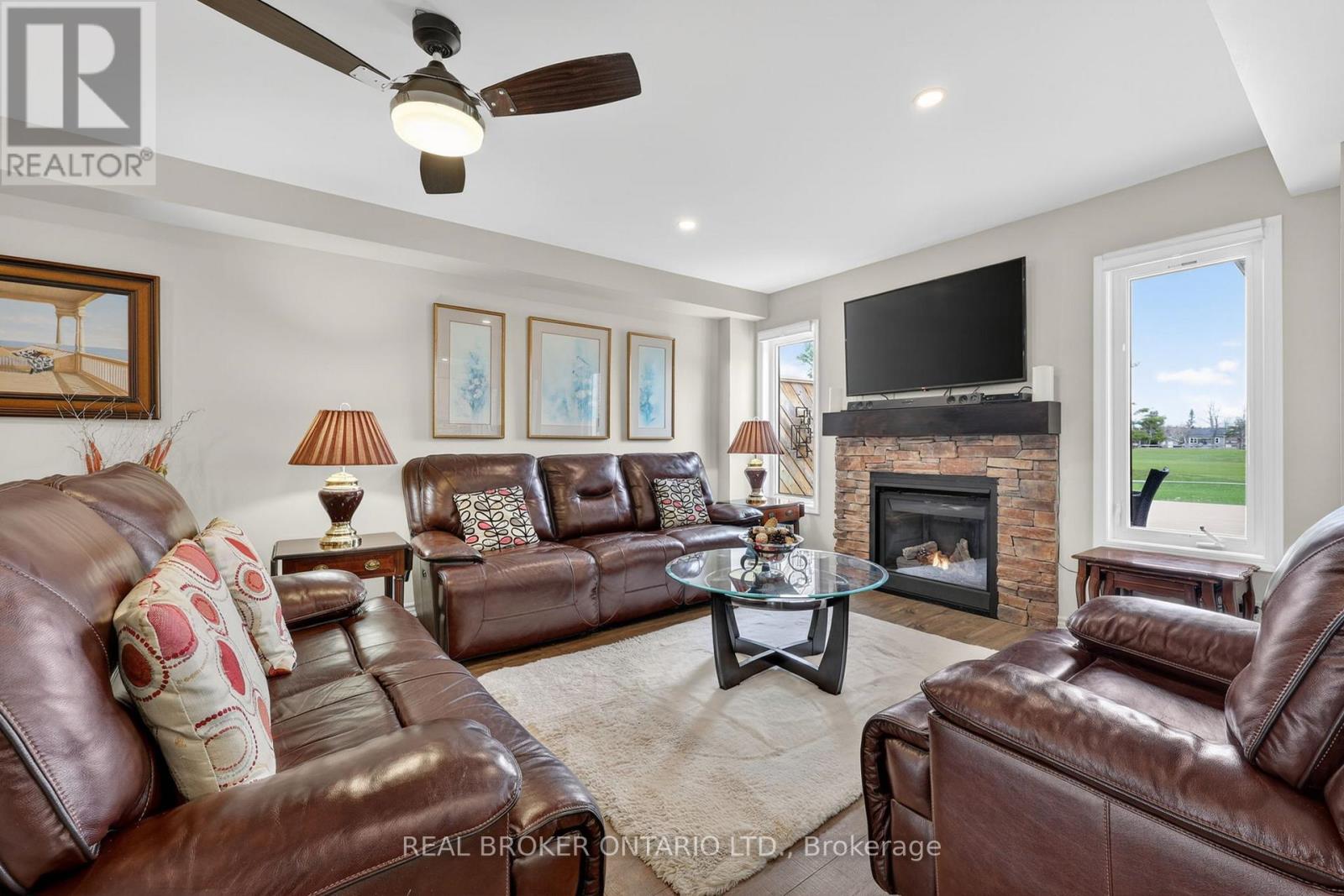 This beautifully appointed, turnkey luxury town home offers the perfect balance of beautiful finishes and an easy, low-maintenance lifestyle-so you can spend more time enjoying where you live. With just under 2,200 square feet, the home is thoughtfully designed and is a one of a kind St. Andrews floor plan. The spacious primary is a true retreat, with a spacious sitting area, a walk-in closet and a well-appointed primary en suite bathroom. 2 additional generously sized bedrooms & a second full bathroom provide flexible space for guests, family, or a home office. Positioned on one of the deepest lots in the community, this property captures sweeping views of the 18th and 10th fairways. Outdoor living is a standout feature, anchored by an expansive 30' x 30' deck designed for relaxing, entertaining, and taking in the scenery. The four-season Muskoka room extends your enjoyment throughout the year, no matter the season. The kitchen is bright and inviting, featuring gleaming white cabinetry, granite countertops, upgraded stainless steel appliances and is open to the family and dining rooms. The home is exceptionally bright throughout, thanks to its ideal orientation and an abundance of windows, offering the kind of natural light typically sought in end-unit town homes. Enjoy sunrise views from the front porch, and unwind in the evening with breathtaking sunsets from the back-creating a daily rhythm that truly reflects a lifestyle centered around comfort and connection. Easy access to Highway 400 means effortless access to shopping, dining, and amenities in multiple directions, including Coldwater, Orillia, Barrie, and Midland, and even grocery delivery is available. The Lifestyle continues at the community pool, marina, golf course & clubhouse, or the nearby pickle ball courts, boating, swimming in Georgian Bay, hiking, biking, skiing, community center activities and more. This is a home and a community designed for living well, every day, year round! (id:50787)