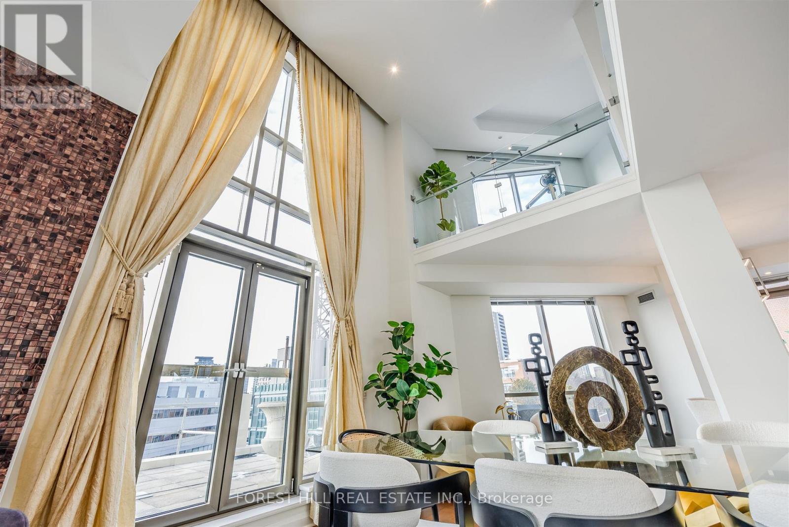 A Hidden Gem in the heart of Torontos prestigious Yorkville, this 2245 sqft suite feels like a townhome in a building. Stunning 2-storey loft, 2 bedrooms + den, wraparound 660 sq ft terrace, East/North/West Exposure. It is a residence that blends modern sophistication with a touch of old-world charm. Known as Domus, this architectural masterpiece by Diamante is not just another condo its a statement of style, elegance, and exclusivity. Domus is unlike anything else in the city. Its ten-storey tower, and Gothic-inspired overtones, rises above the street scape, its floor-to-ceiling arched windows creating a play of light and shadow that shifts throughout the day. Chefs kitchen w/giant window and breakfast bar, 17 foot ceiling, Glass tile wall - fireplace, open den/office on second floor. Beyond its striking architecture, Domus offers a 24-hour concierge, a fully equipped gym, an elegant party room, and a guest suite. A serene private garden provides a peaceful escape from the city's energy. For pet lovers, Domus is a dream ensuring that furry companions can enjoy the luxurious surroundings as well. And with maintenance fees covering heat, water, parking, building insurance, and common elements, residents can enjoy a truly worry-free living experience. Domus is more than a home its a lifestyle. Steps away from Yorkville, Bay/Bloor, Rosedale known as Mink Mile upscale shopping district neighbourhood, Restaurants, TTC and more. **The asking price is $757/sqft which is amazing for the Yorkville area.** (id:50787)