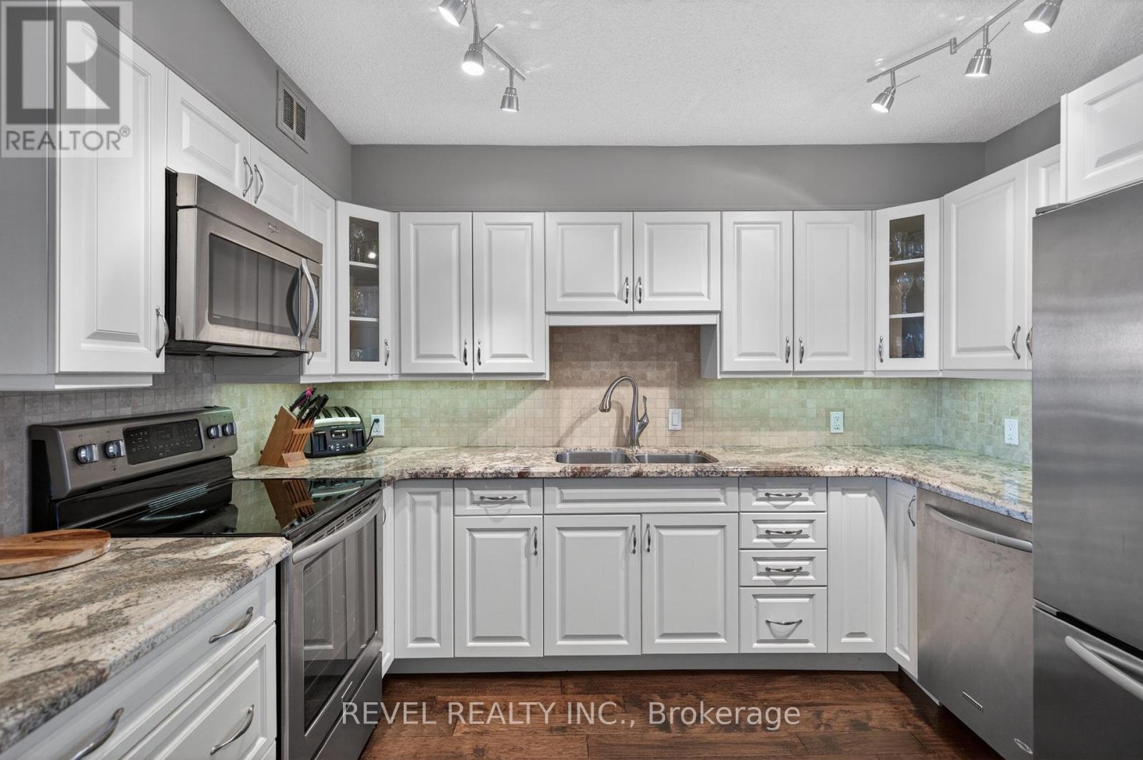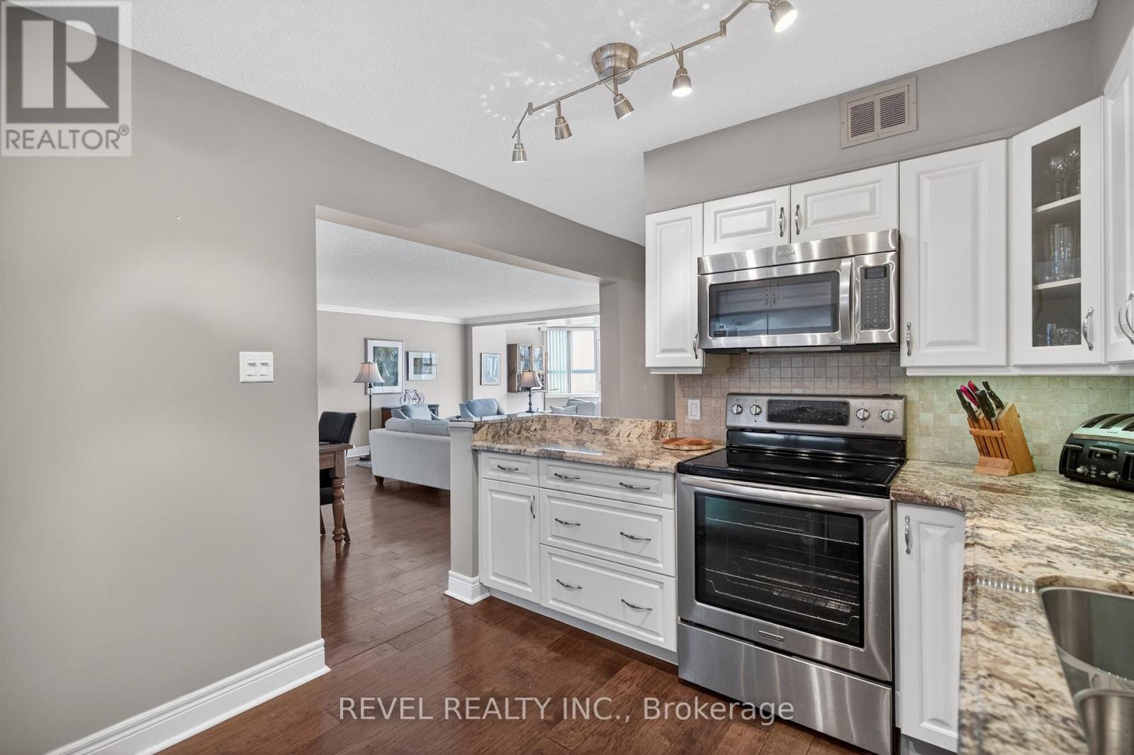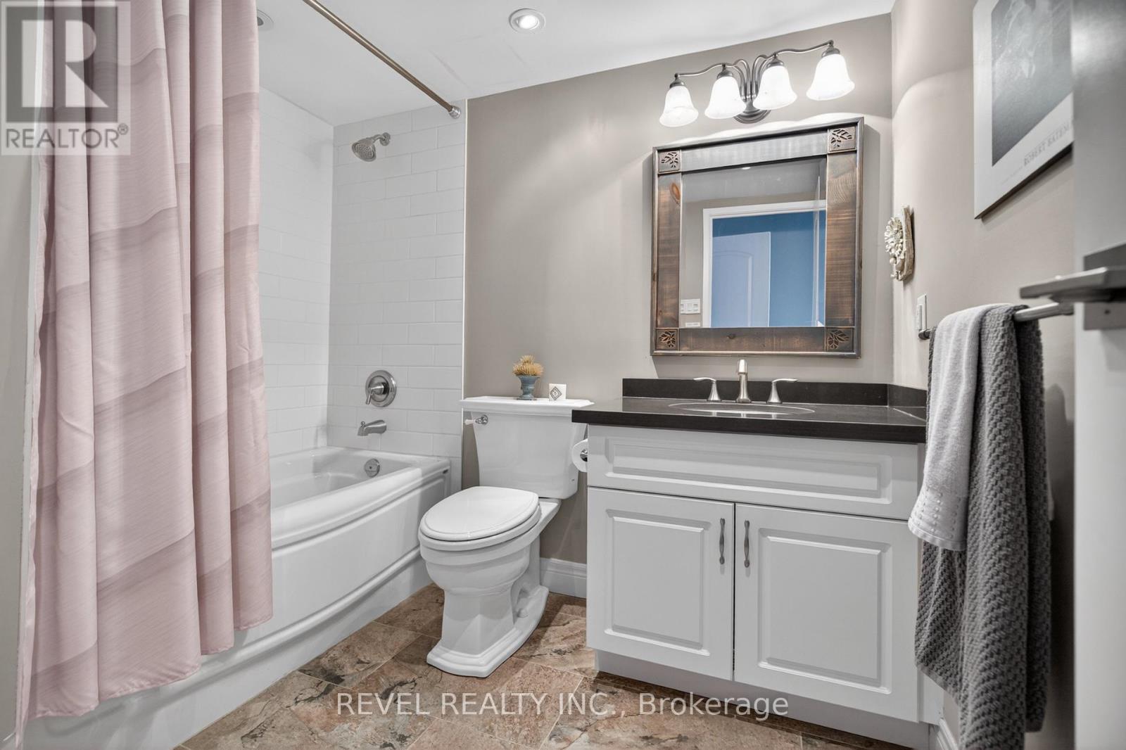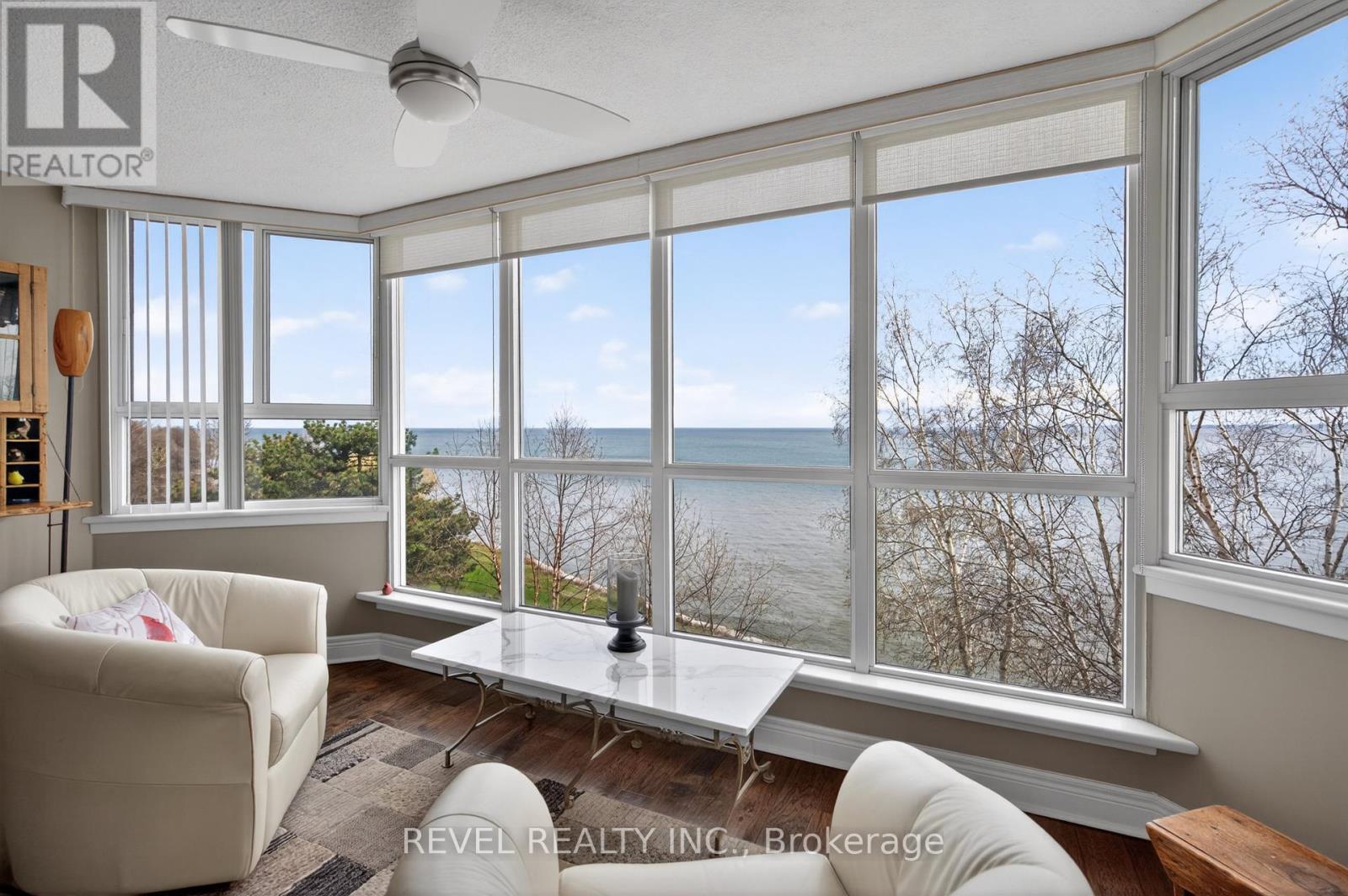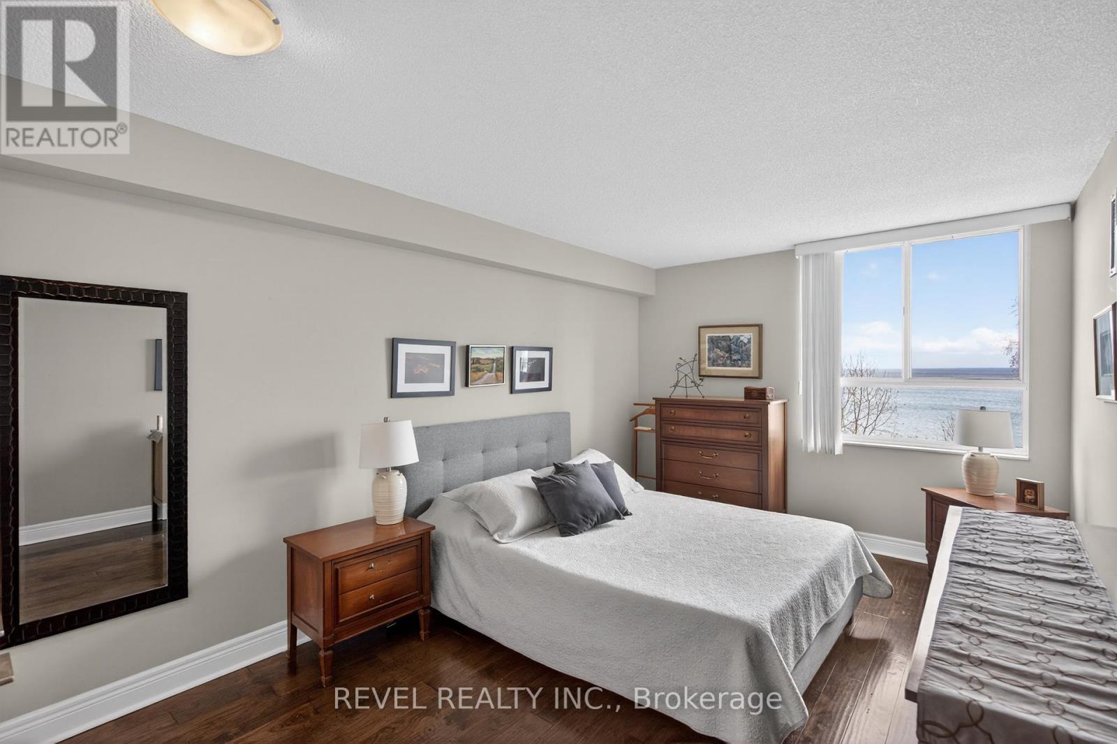 $1,081.14 MonthlyWelcome to Royal Vista! Stunning lakefront living with fantastic views. This gorgeous and spacious unit boasts top to bottom renovations showcasing the perfect location overlooking Lake Ontario.Upon entry you'll be greeted by a beautiful open concept living room/dining room complete with additional sitting space in front of the panoramic windows making the massive living space bright and inviting, perfect for entertaining guests or getting lost in the gorgeous views.A fully updated kitchen including newer stainless steel appliances, stone counters with a tile backsplash and clean cabinetry add to the warmth and appeal.The generous master bedroom includes an updated en suite bathroom with subway tile around the bathtub, new vanity and flooring. A second spacious bedroom plus additional bathroom with glass shower provide even more comfort and living space.Carpet free, with luxurious hand scraped wood flooring, new trim, in suite laundry and loads of closet and storage space make this unit one of a kind.Royal Vista also includes top notch amenities including a party room with a full kitchen, a full gym along with a dry sauna. Once the weather warms there's also a large outdoor pool a tennis court which can also be used for pickleball.Units in this building don't often come up, especially ones with this view and attention to detail. Check out this unique, exquisite place before it's gone! (id:50787)