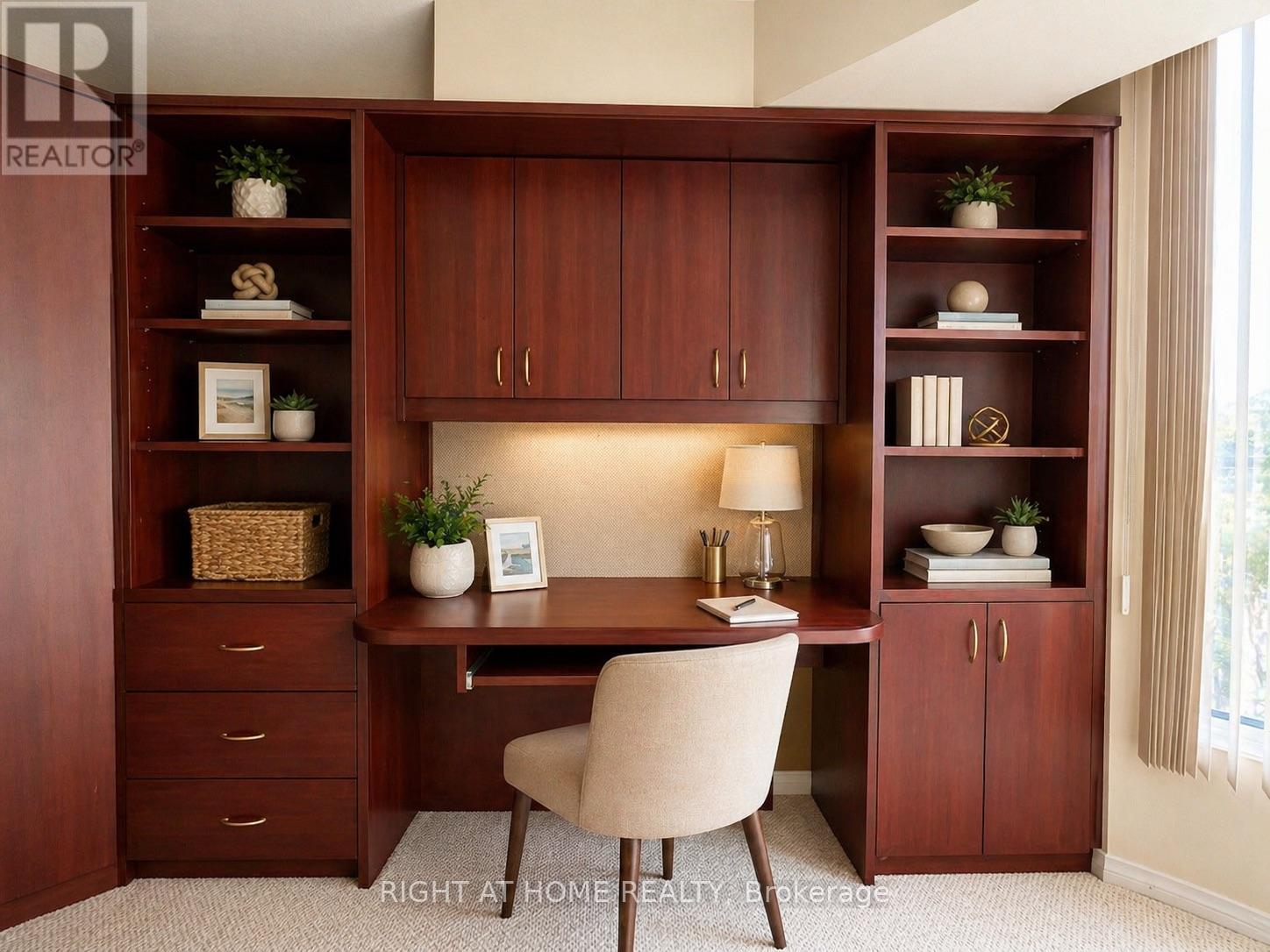$1,233.89 MonthlyPopular "Elora" model, two bedroom and 2 bath condo with very sought after northwest exposure. Views of the Escarpment and the Mill Pond.Two parking spaces one underground (owned) one above (exclusive use). Storage room in the unit with professionally installed shelving. Second bedroom has built in wall unit with a desk and Murphy bed. Ensuite bathroom. In-suite laundry and separate eating area from the kitchen. Amenities include indoor pool, sauna, whirlpool, exercise room and recently renovated party room. Condo fee includes all utilities (except phone, internet ,cable) (id:50787)