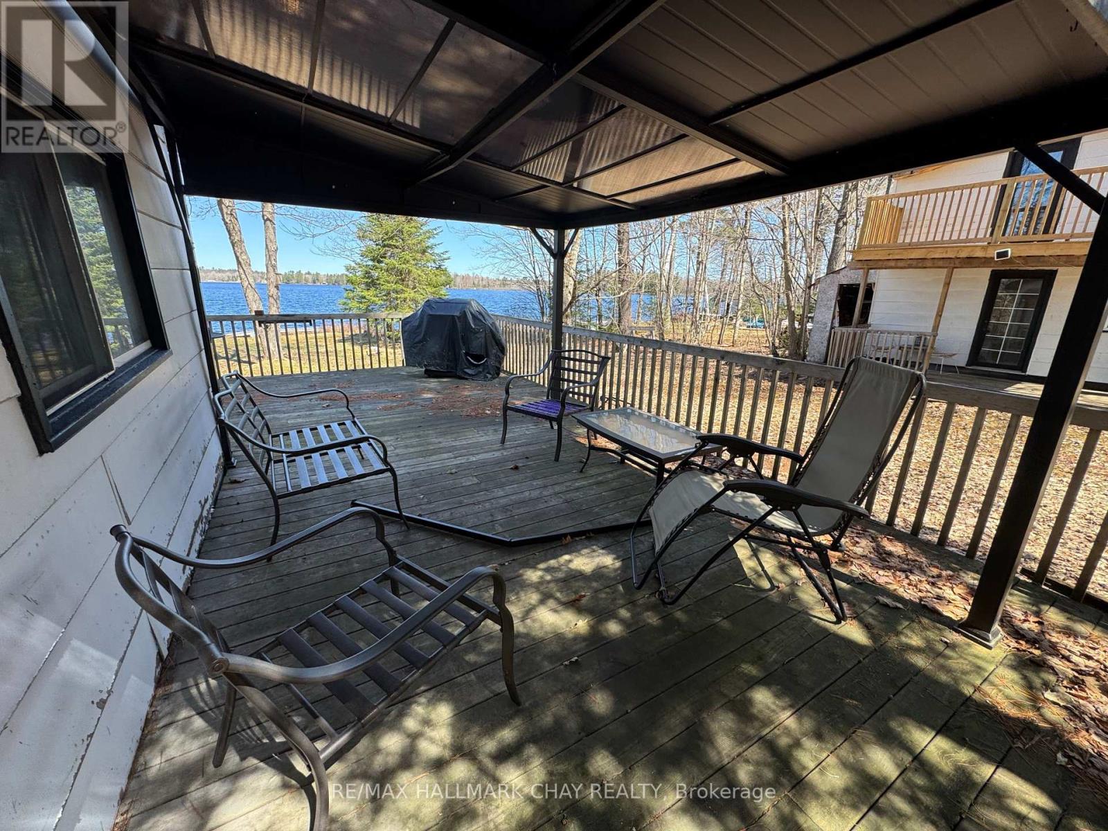 LAKEFRONT LIVING ON BEAR LAKE - 102 FEET OF WATERFRONT! Escape to the serenity of Bear Lake with this charming 2-bedroom, 1-bathroom cottage, offering picturesque lake views and year-round enjoyment. Nestled on over half an acre, this property boasts a gentle slope to the water's edge and a 780 sq ft wrap-around deck, perfect for taking in the breathtaking scenery. The cozy cottage features a spacious living room with a stunning lake view and a wood stove for added ambiance and cost-effective heating. In addition, a separate 294 sq ft two-storey bunkie with a new upper-level deck and composting toilet offers extra space for guests or a private retreat. Whether you're seeking summer adventures on the lake or winter fun on the nearby snowmobile trails, this property is ideal for outdoor enthusiasts. Located just 40 minutes from Hidden Valley, it's easily accessible on a municipally maintained road, providing convenience and a sense of community. Bear Lake, situated in the Parry Sound District, is a hidden gem known for its clear waters, perfect for swimming, fishing, kayaking, and canoeing. Surrounded by lush forests and scenic hiking trails, it's an outdoor lover's paradise. The mix of cottages and year-round homes creates a tranquil yet vibrant atmosphere, making Bear Lake a highly desirable location for those seeking a peaceful escape. Don't miss out on this rare opportunity - schedule your private showing today and start living the lake life! (id:50787)