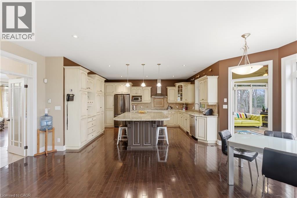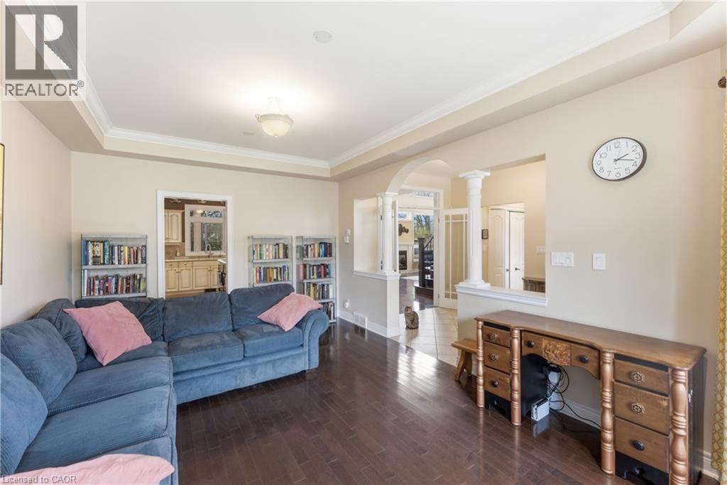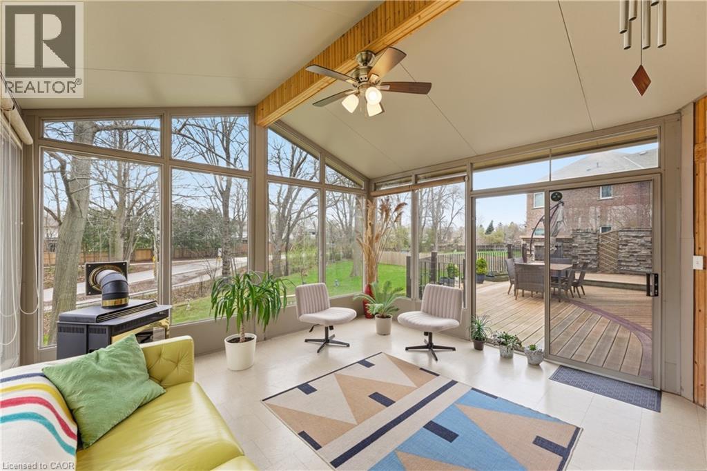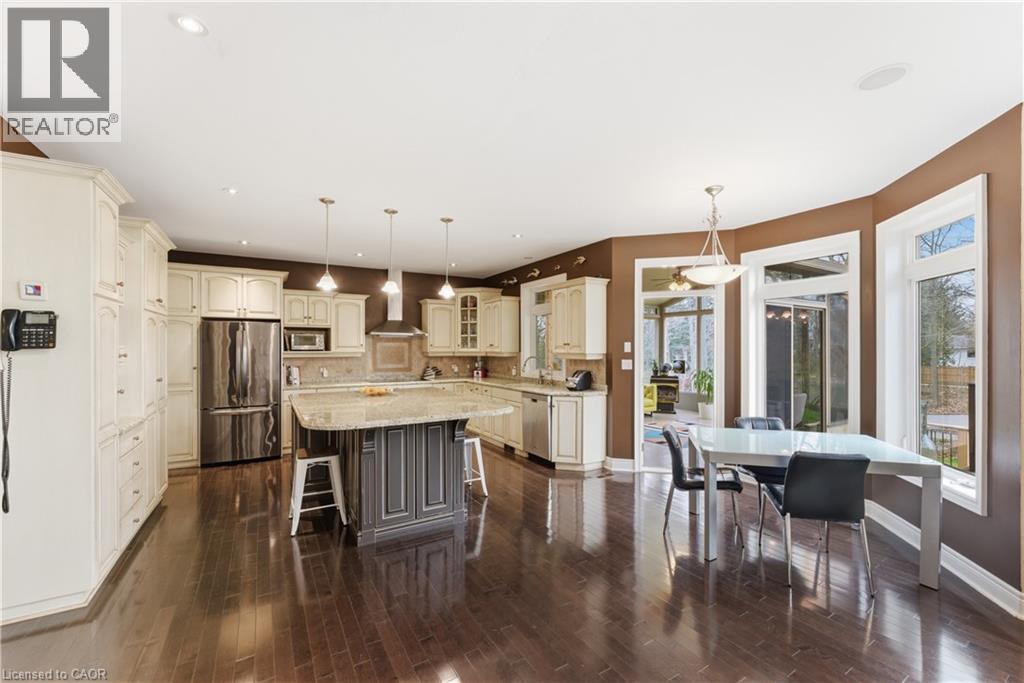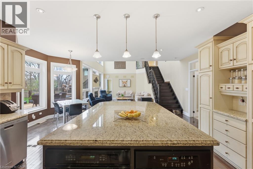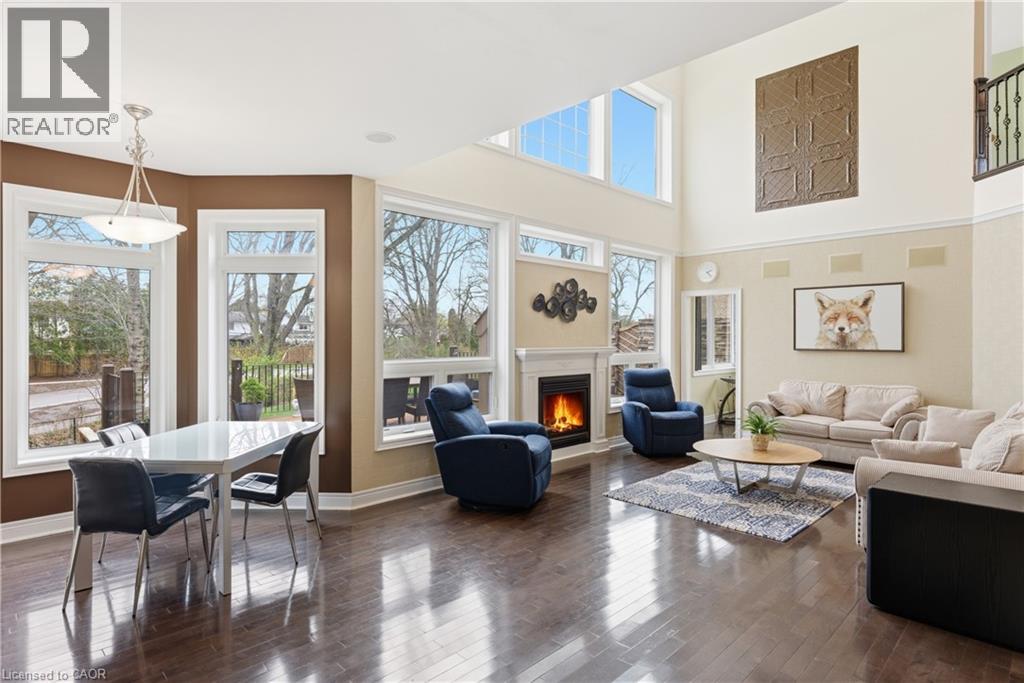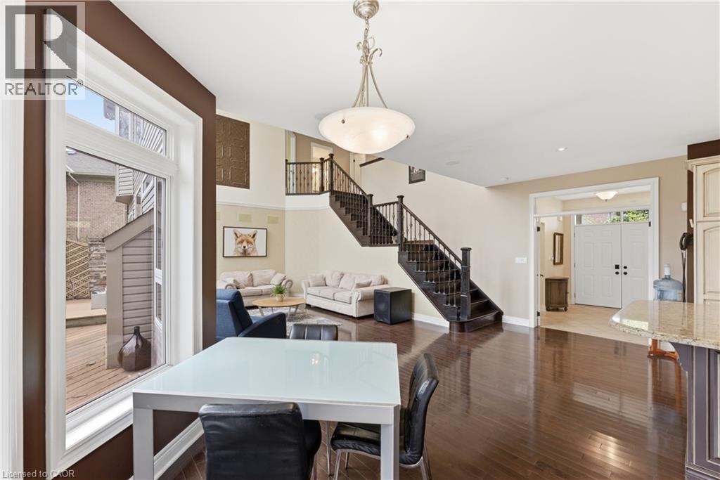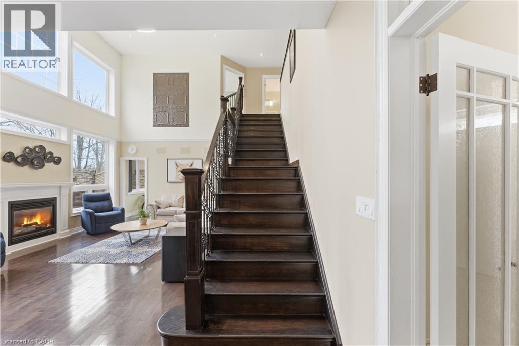 Welcome to 52 Scullers Way in St. Catharines-an exceptional 2,639 sq ft home offering 4 bedrooms and 3 bathrooms, perfectly designed for modern family living. A welcoming front foyer with a cozy seating area sets the tone as you enter. Down the hall is a beautifully designed open-concept kitchen and living space blends elegance with everyday functionality. The kitchen features timeless cream cabinetry, granite countertops, and a spacious center island with seating. Stainless steel appliances, a stylish tile backsplash, and pendant lighting add a modern touch while maintaining a warm, inviting feel.Rich hardwood flooring flows seamlessly throughout. The adjacent dining area is surrounded by large windows and a walkout to the cozy four season sunroom. The stunning living room is defined by its soaring ceilings and an abundance of natural light. Expansive windows stretch across the back wall, creating a bright and airy atmoshere while offering tranquil views of the surrounding greenery. The elegant gas fireplace serves as a cozy focal point, perfectly framed by a classic mantel. Completing the main floor is a convenient 2-piece bathroom. Upstairs, you'll find four generously sized bedrooms, each offering ample closet space. The primary suite features a spa-like 5-piece ensuite with a soaker tub, glass shower, and a large window overlooking the spacious backyard. A second 5-piece bathroom and second-floor laundry add everyday convenience for families. The unfinished basement provides potential for storage, a play area, or future finished living space plus a rough in for a bathroom. Step outside to a truly standout backyard retreat. The expansive deck is designed for both relaxation and entertaining, with a built-in gas fireplace that creates a warm, inviting atmosphere for gatherings. With parking for six vehicles, including a double attached garage and a four-car driveway, this home offers the perfect blend of comfort, style in a sought-after neighbourhood. (id:50787)