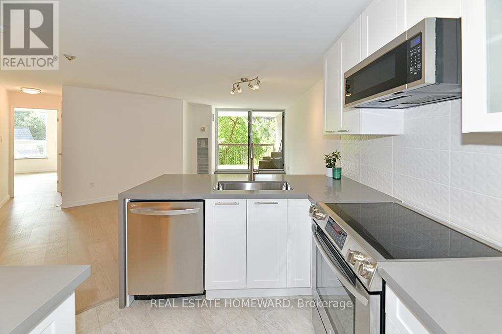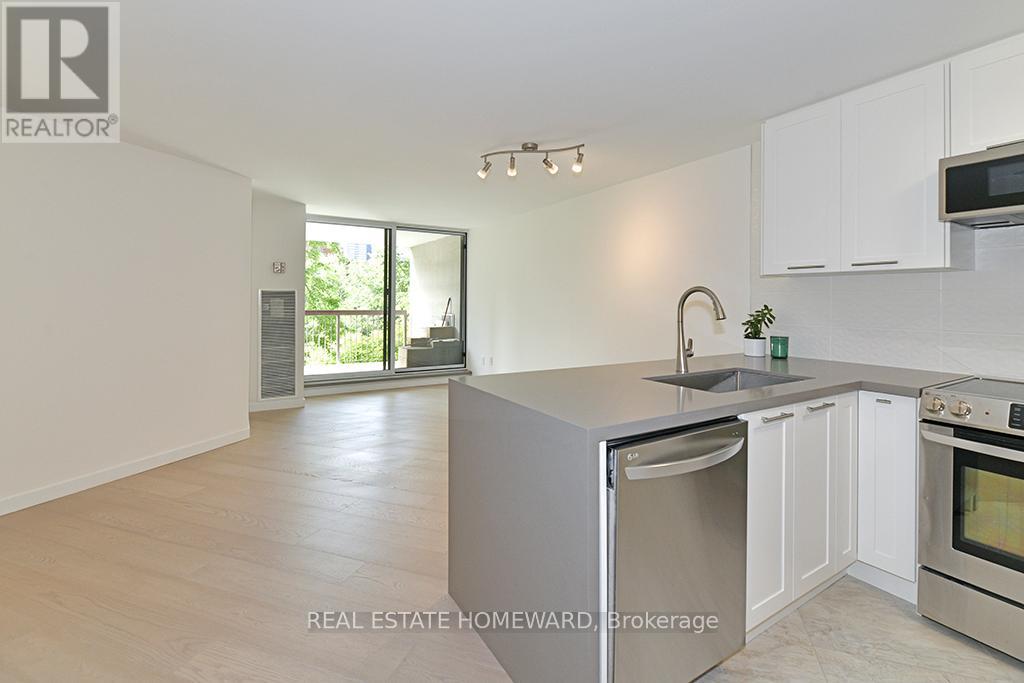 Currently the largest unit on the market in the building 876 Sq ft. with the best view. Overlooking the award winning garden and located on the coveted link level. Gorgeous unit $100,000.00 reno just 2 years ago. Features modern open concept space perfect for professionals or empty nesters and great for entertaining. The master bedroom features & ensuite bath and a walk in shower. The full second bedroom has a double closet and picture window, second full bath. This is truly a beautiful place that won't disappoint. New pictures and video coming tomorrow. Show with confidence. (id:50787)