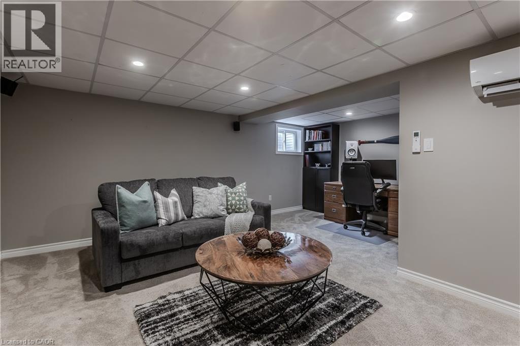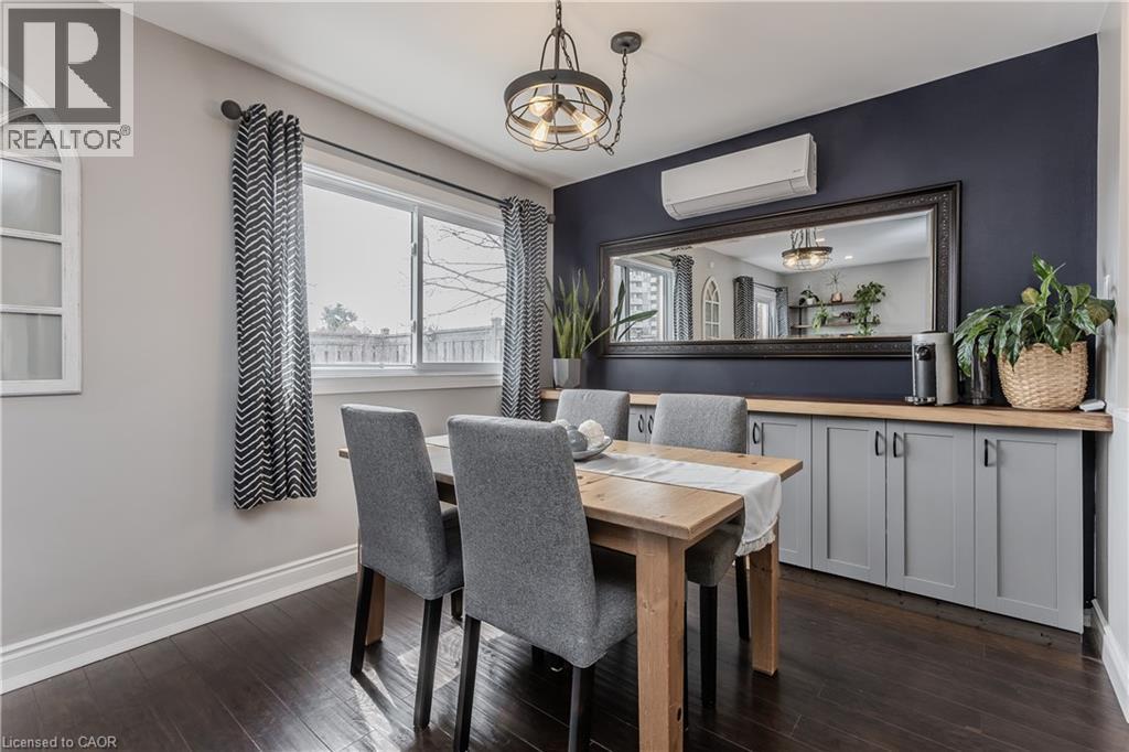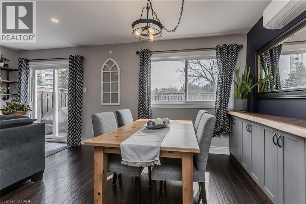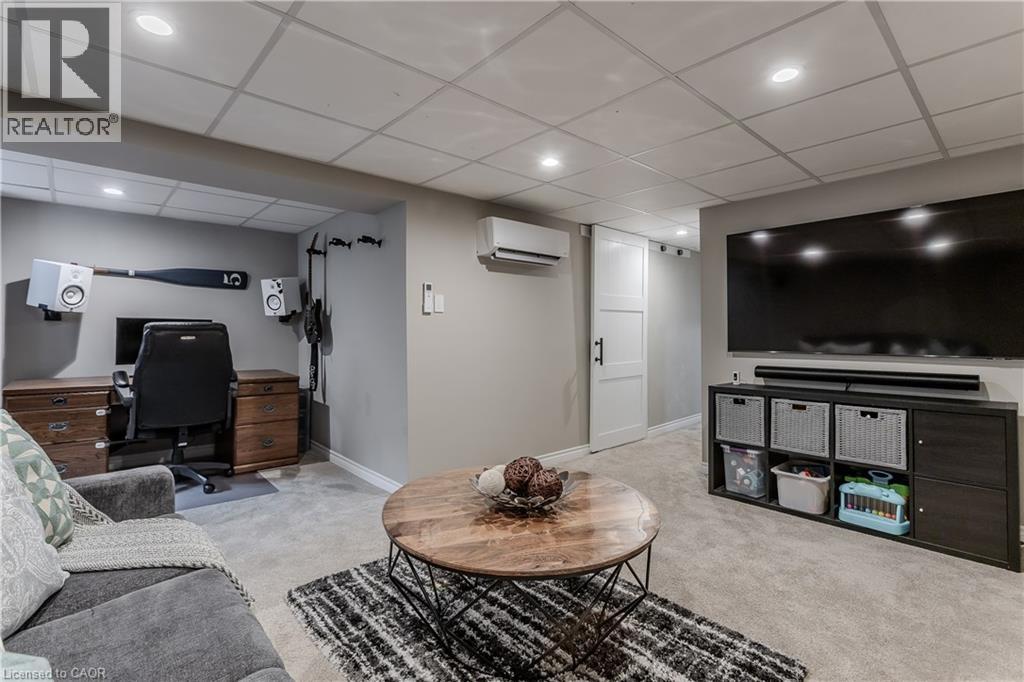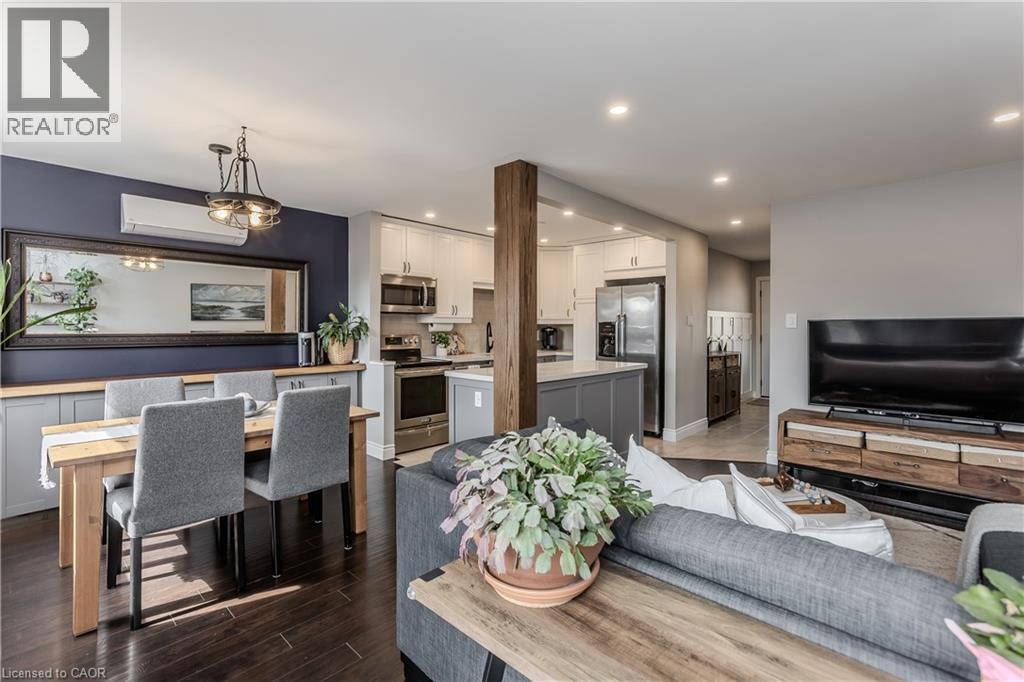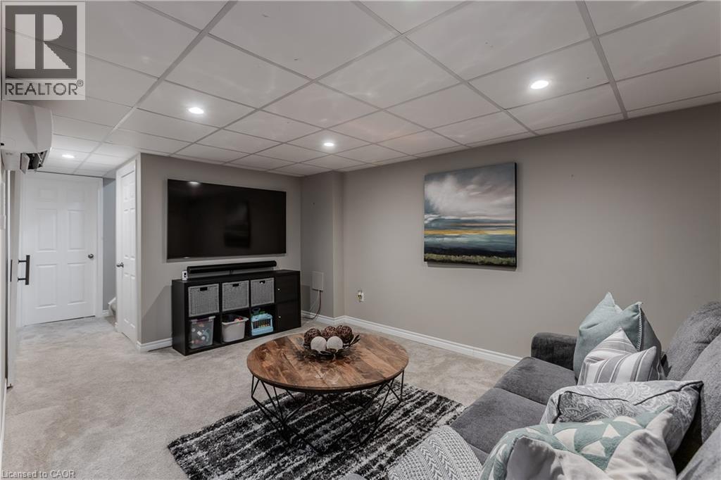 Welcome to this beautifully maintained townhouse condo, perfectly suited for growing families seeking comfort, style, and convenience. Nestled in a family-friendly neighbourhood just steps to everyday essentials and a short walk to the lake, this home offers the ideal blend of lifestyle and location. From the moment you arrive, the charming curb appeal sets the tone with a mature tree, interlock walkway, covered cedar wood porch-an inviting space to unwind, and new front door with premium retractable phantom screen (2019). The garage offers added convenience with bonus storage above. Inside, the main level showcases a bright, open-concept layout with wood/tile flooring throughout, skimmed ceiling and pot lights (2022) enhanced by smart switches. A welcoming foyer with wainscoting leads into the heart of the home. The fully renovated kitchen (2025) is a standout, featuring premium quartz countertops, centre island, custom cabinetry, subway tile backsplash, SS appliances, and a new Bosch dishwasher (2025), all accented by a warm white oak wood beam. The dining area includes a built-in credenza, while the living room offers a seamless walkout to the backyard-perfect for everyday living and entertaining. A convenient 2-piece powder room completes the main level. Upstairs, you'll find three generously sized bedrooms and a 4-piece main bathroom with an oversized vanity, providing plenty of space for the whole family. The fully finished lower level adds valuable living space with a spacious rec room, dedicated home office area, laundry, and ample storage area with built-in racks. Pot lights with smart switches are continued throughout. Step outside to a fully fenced backyard featuring a slate grey composite tile patio, awning, and green space for kids or pets to play. Additional perks include a fully updated HVAC system, with ductless units. A fantastic opportunity to enjoy turnkey living in a vibrant, family-oriented community close to shopping, parks, and more. (id:50787)