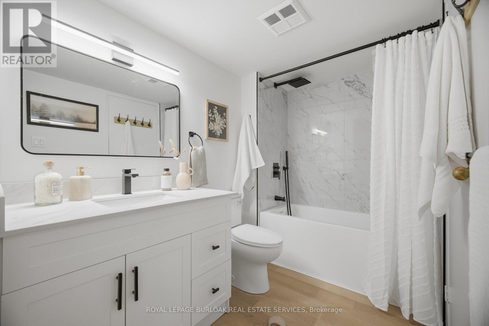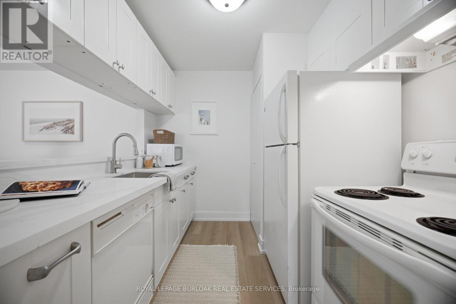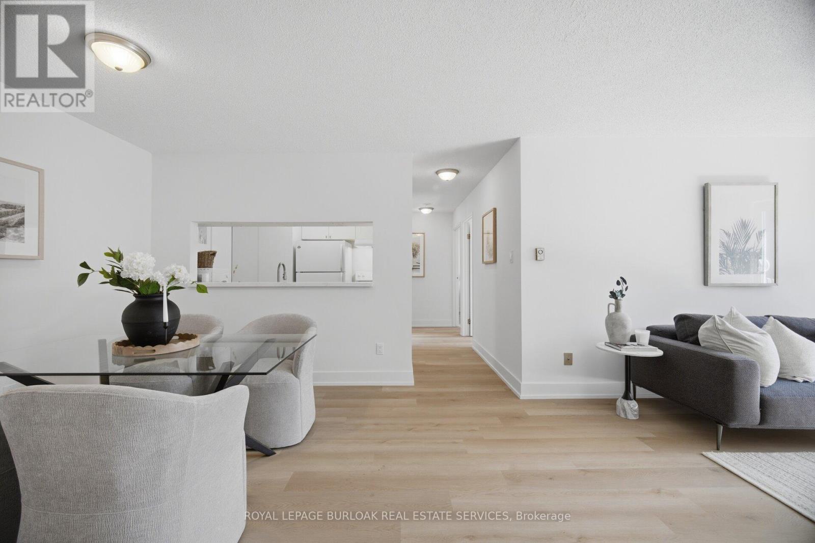Welcome to Suite 532 at 1450 Glen Abbey Gate, an inviting, newly renovated 2-bedroom condo nestled in Oakville's sought-after Glen Abbey neighbourhood. Offering approximately 921 sq ft of thoughtfully updated living space, this home blends modern style with everyday comfort in a location that's hard to beat.Step inside to discover brand new flooring throughout and a fresh, professionally painted interior that creates a bright,cohesive feel from room to room. The spacious living area is anchored by a charming wood-burning fireplace, perfect for cozy evenings, while large windows invite in natural light and lead out to your private 88 sq ft balcony, an ideal spot for morning coffee or unwinding at the end of the day. Adjacent to the living area, you'll find a dedicated dining space featuring a convenient kitchen passthrough/serving hatch, perfect for easy entertaining and everyday meals.The refreshed kitchen showcases sleek quartz countertops and modern finishes, providing both style and function for daily living or entertaining. The completely updated 4-piece bathroom features clean, contemporary design and quality fixtures, with the added convenience of ensuite privilege from the primary bedroom, offering both comfort and privacy.Both bedrooms are generously sized with ample closet space. The unit offers the convenience of in-suite laundry and additional storage ensures everything has its place. This unit also includes one dedicated parking spot for added ease.Perfectly positioned within walking distance to local shops, parks, and the recreation centre, you'll enjoy a vibrant yet peaceful community atmosphere. Commuters will appreciate the quick access to major highways, making travel throughout Oakville and beyond seamless.Whether you're a first-time buyer, downsizer, or investor, this turnkey condo offers exceptional value in one of Oakville's most desirable communities. Move in, unpack, and start enjoying everything Glen Abbey has to offer. (id:50787)