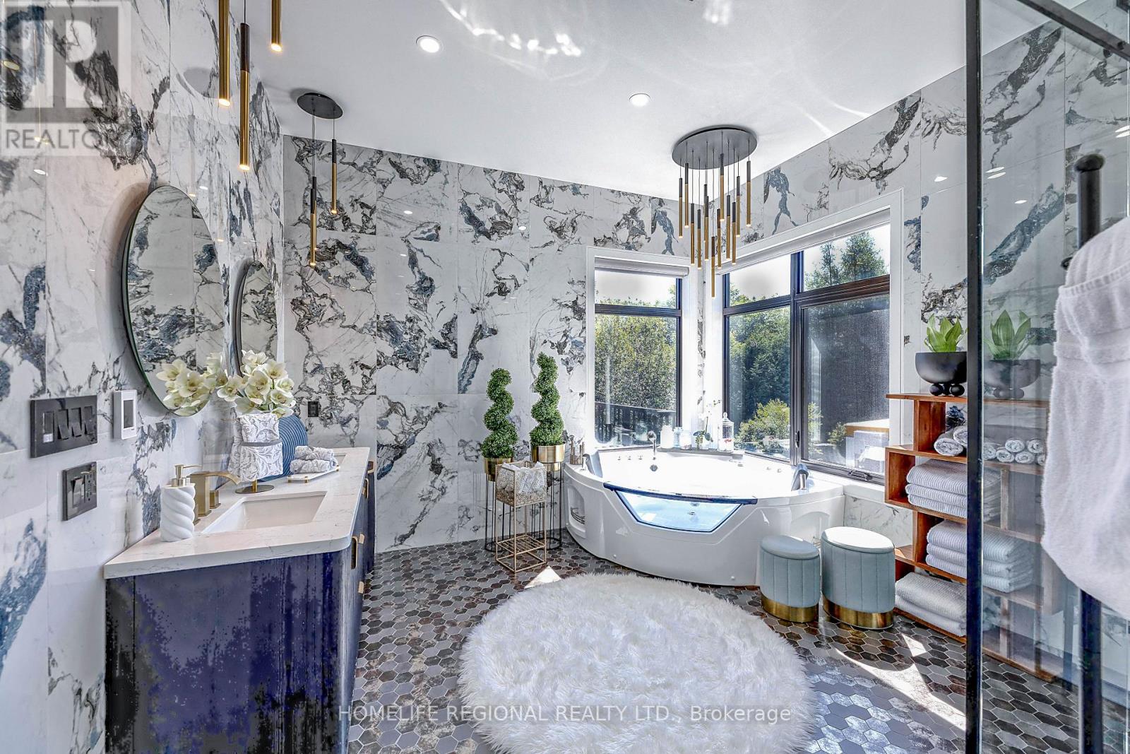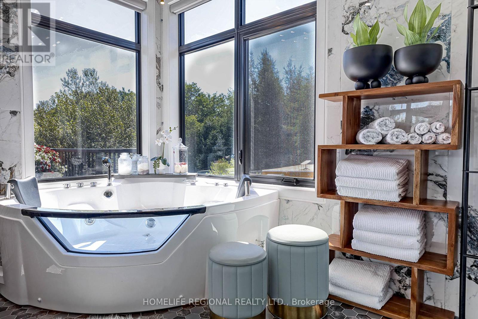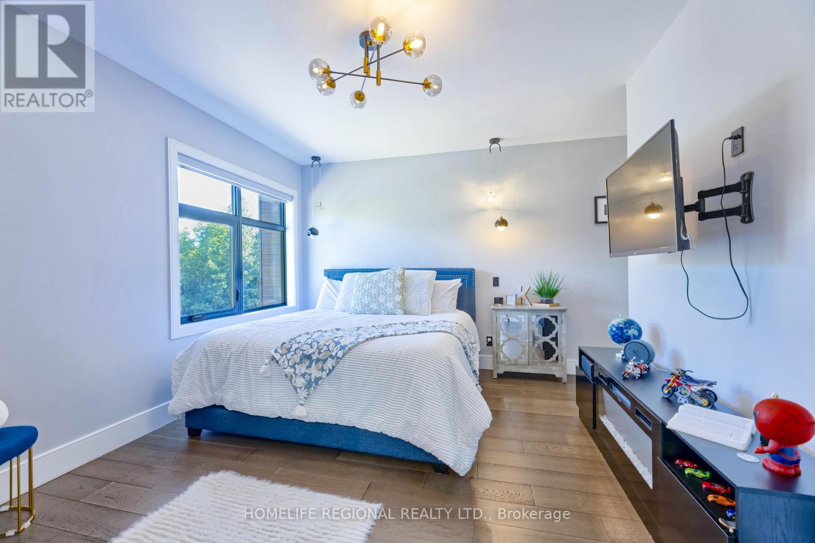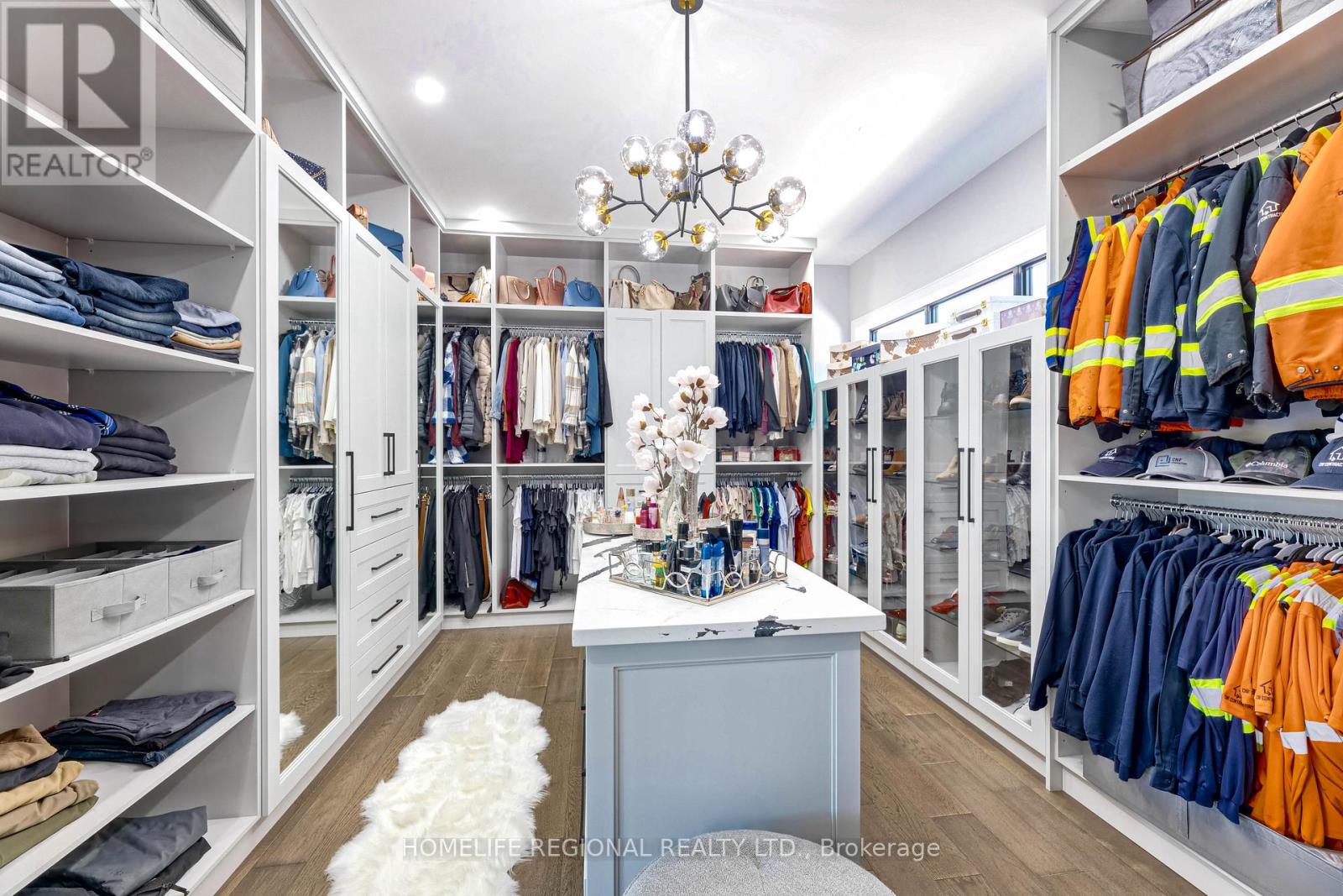 Welcome to 5329 First Line an architectural masterpiece nestled in nature, where luxury meets serenity. This exceptional property offers approximately 7,000 sq. ft. total of luxurious living space, and approximately 4111 sq. ft. above ground! Set on a quiet rural road and nestled on a breathtaking 10-acre lot, including 8 acres of pristine conservation land with walking trails. Featuring 4 spacious bedrooms and 5 bathrooms, each bedroom comes complete with its own walk-in closet and private ensuite bathroom, delivering comfort, privacy, and elegance at every turn. The open-concept main floor boasts soaring ceilings in the great room, a gourmet kitchen with an oversized waterfall island, walk-in pantry, and access to multiple decks perfect for seamless indoor-outdoor living. The fully finished lower level includes a stunning wet bar area with a built-in pizza oven and charcoal BBQ, plus a rough-in for a hot tub ideal for entertaining or relaxing in style. The oversized heated 3-car garage is equipped with Wi-Fi-enabled door openers, Massive 10x10 oversized garage doors, and roughed-in EV charging outlets. A short walk to the Eramosa River, great for fishing and exploring. This is a rare opportunity for the discerning buyer seeking a private, show-stopping home that combines luxury, functionality, and the beauty of nature. If you have been searching for something truly special, your search ends here. Please see attached for an unparalleled level of upgrades, features, and chattels too many to list. (id:50787)