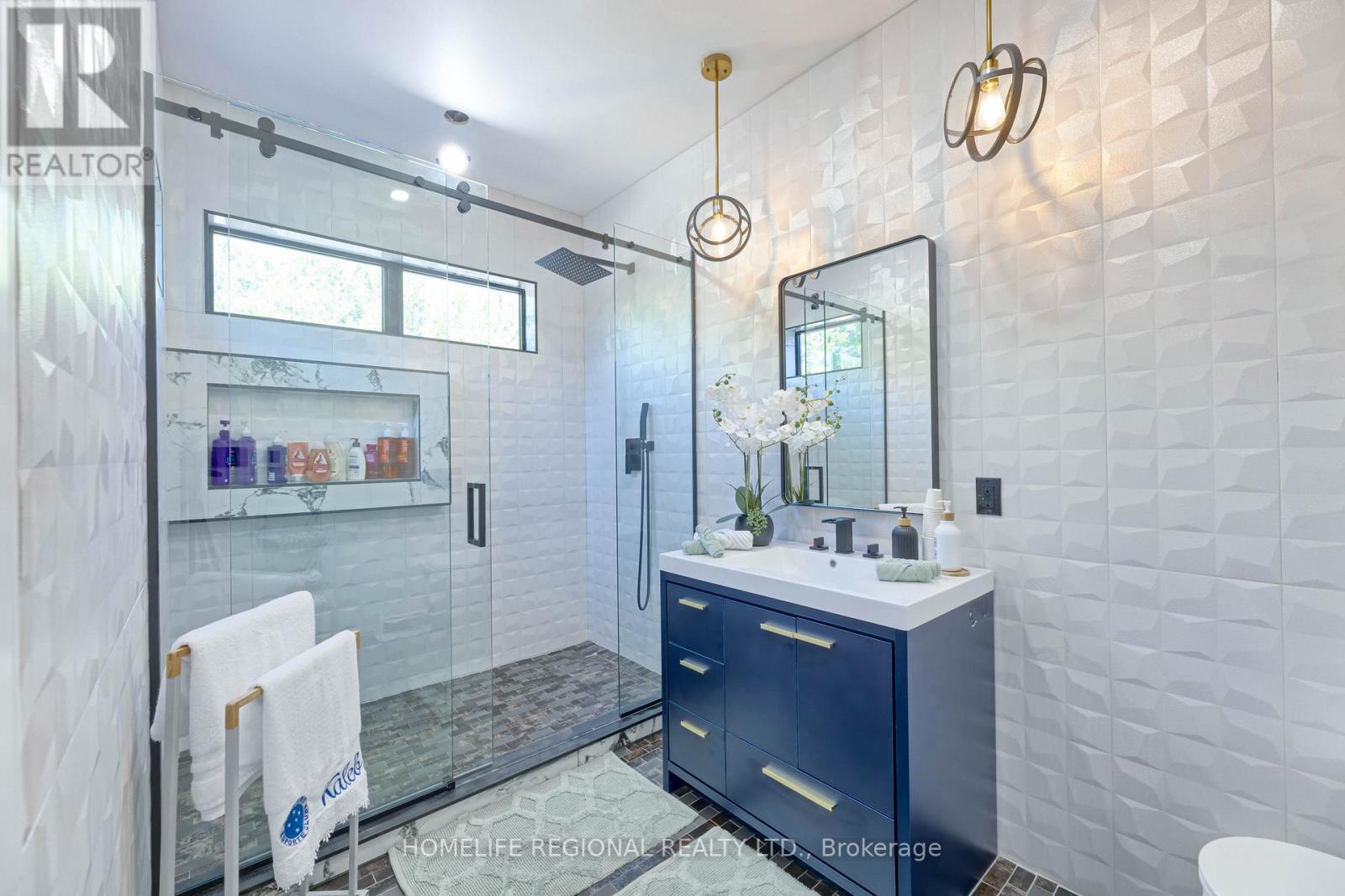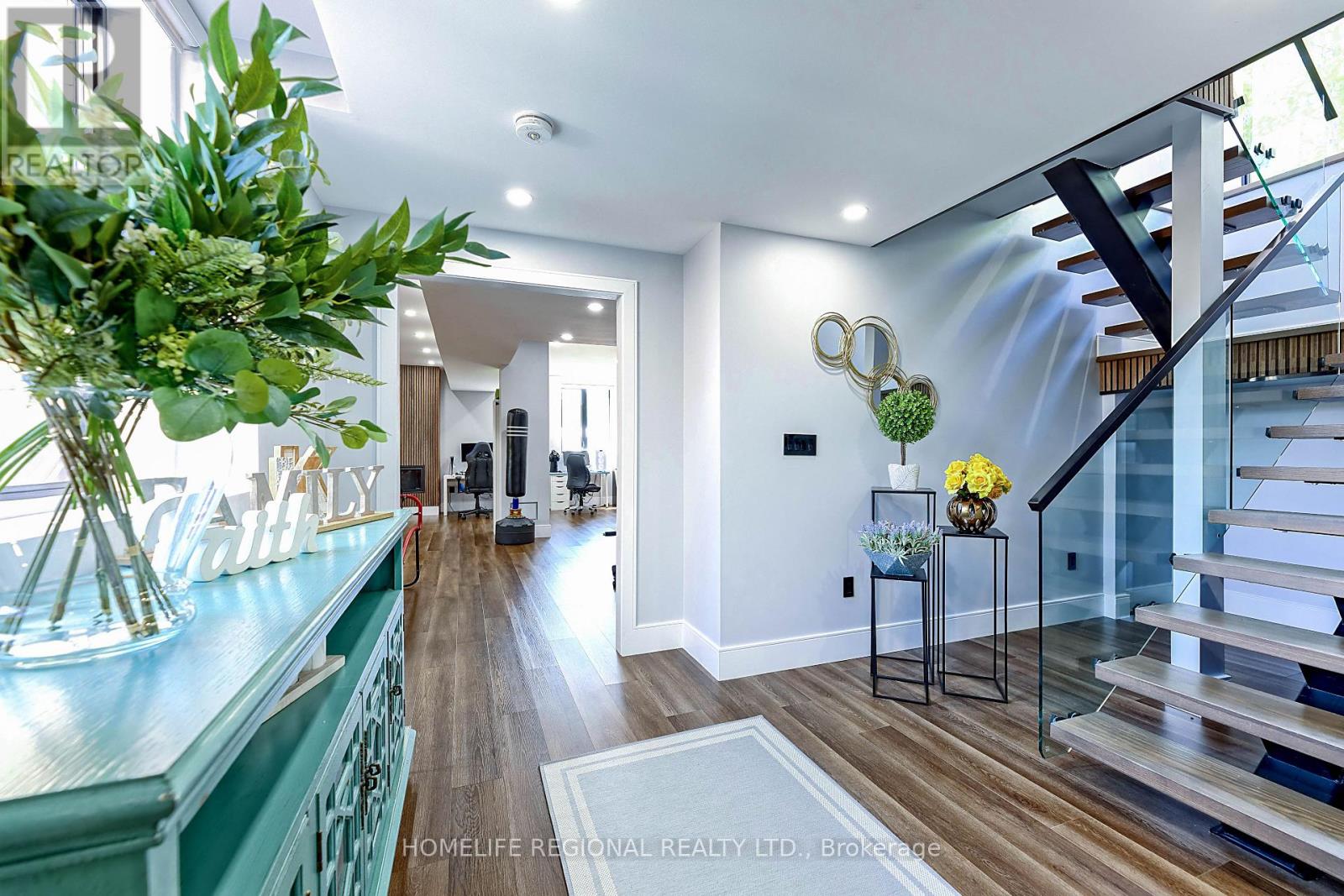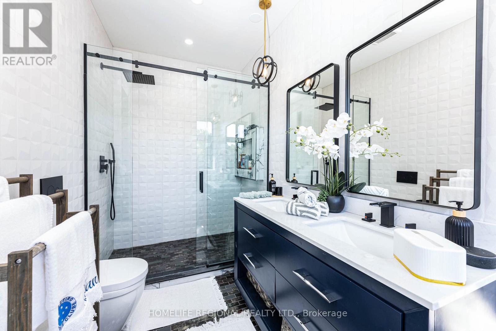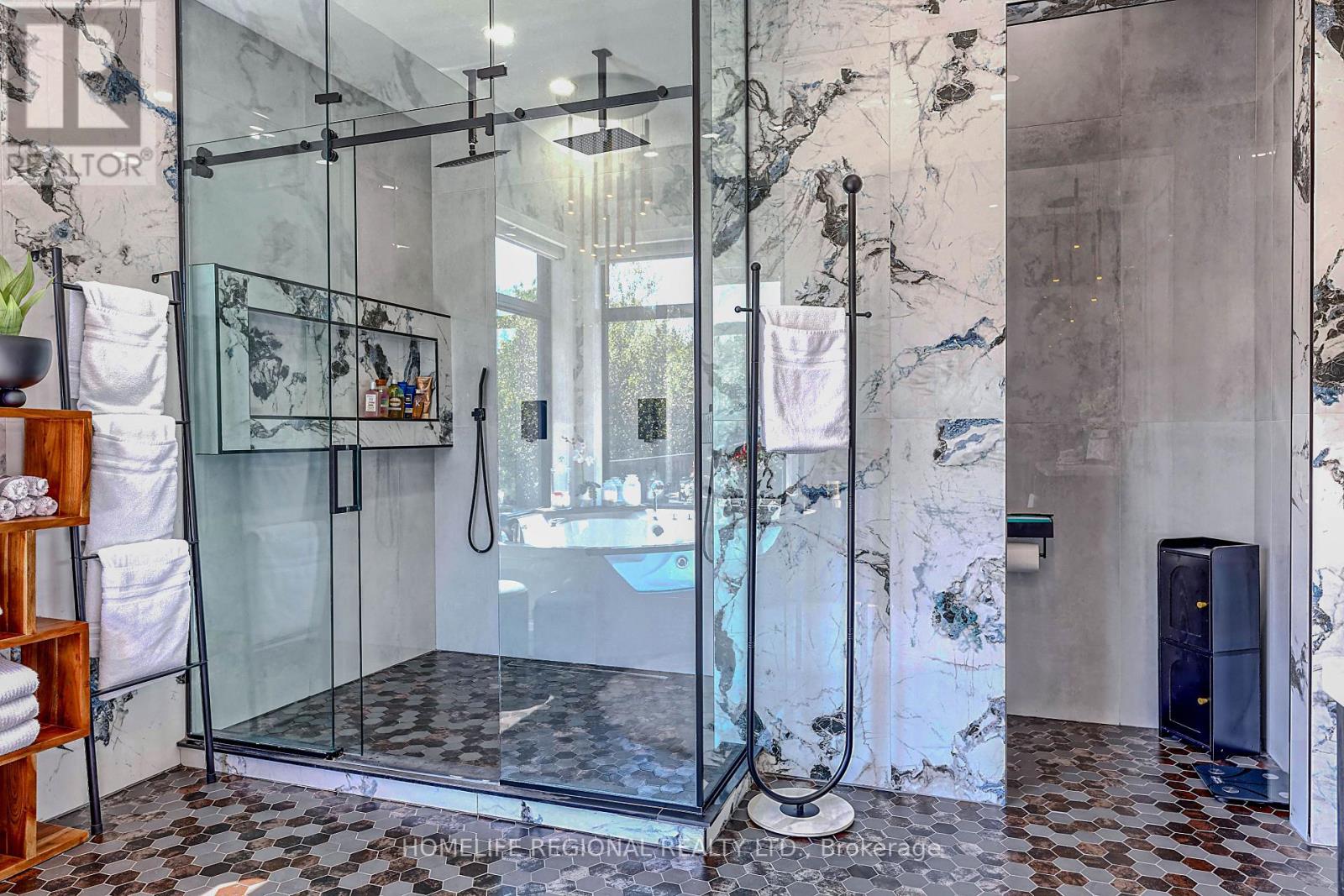 Welcome to 5329 First Line an architectural masterpiece nestled in nature, where luxury meets serenity. This exceptional property offers approximately 7,000 sq. ft. total of luxurious living space, and approximately 4111 sq. ft. above ground! Set on a quiet rural road and nestled on a breathtaking 10-acre lot, including 8 acres of pristine conservation land with walking trails. Featuring 4 spacious bedrooms and 5 bathrooms, each bedroom comes complete with its own walk-in closet and private ensuite bathroom, delivering comfort, privacy, and elegance at every turn. The open-concept main floor boasts soaring ceilings in the great room, a gourmet kitchen with an oversized waterfall island, walk-in pantry, and access to multiple decks perfect for seamless indoor-outdoor living. The fully finished lower level includes a stunning wet bar area with a built-in pizza oven and charcoal BBQ, plus a rough-in for a hot tub ideal for entertaining or relaxing in style. The oversized heated 3-car garage is equipped with Wi-Fi-enabled door openers, Massive 10x10 oversized garage doors, and roughed-in EV charging outlets. A short walk to the Eramosa River, great for fishing and exploring. This is a rare opportunity for the discerning buyer seeking a private, show-stopping home that combines luxury, functionality, and the beauty of nature. If you have been searching for something truly special, your search ends here. Please see attached for an unparalleled level of upgrades, features, and chattels too many to list. (id:50787)