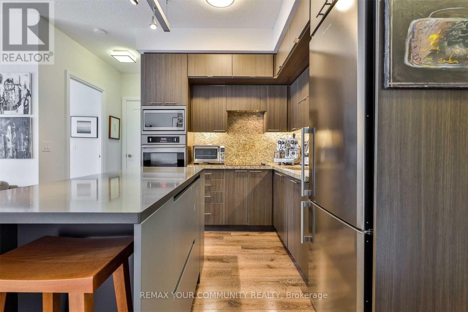 $872.65 MonthlyWelcome This Luxury 964 Sqft. Two-Bedroom Suite, Offering A Well-Designed Split Layout And Two Full Bathrooms, Including A Luxurious Ensuite. The Sunlit Living Area Opens To West-Facing Views Over Avonshire Park. The Chefs Kitchen Is A Highlight, Featuring Integrated Appliances, Custom Lighting And A Custom Island w/ Built-In Dining Table, Perfect For Entertaining. The Separate Den, Bathed In Natural Light, Makes For An Ideal Home Office. The Primary Bedroom Impresses With A Custom Walk-In Closet And 4-Piece Ensuite Bath, While The Spacious Second Bedroom Enjoys Unobstructed Park Views And A Double-Fitted Mirrored Closet. This Suite Is Custom Built-Ins In All Closets, A Double Storage Locker Conveniently Situated Just Across From The Unit And An Underground Parking Space. (id:50787)