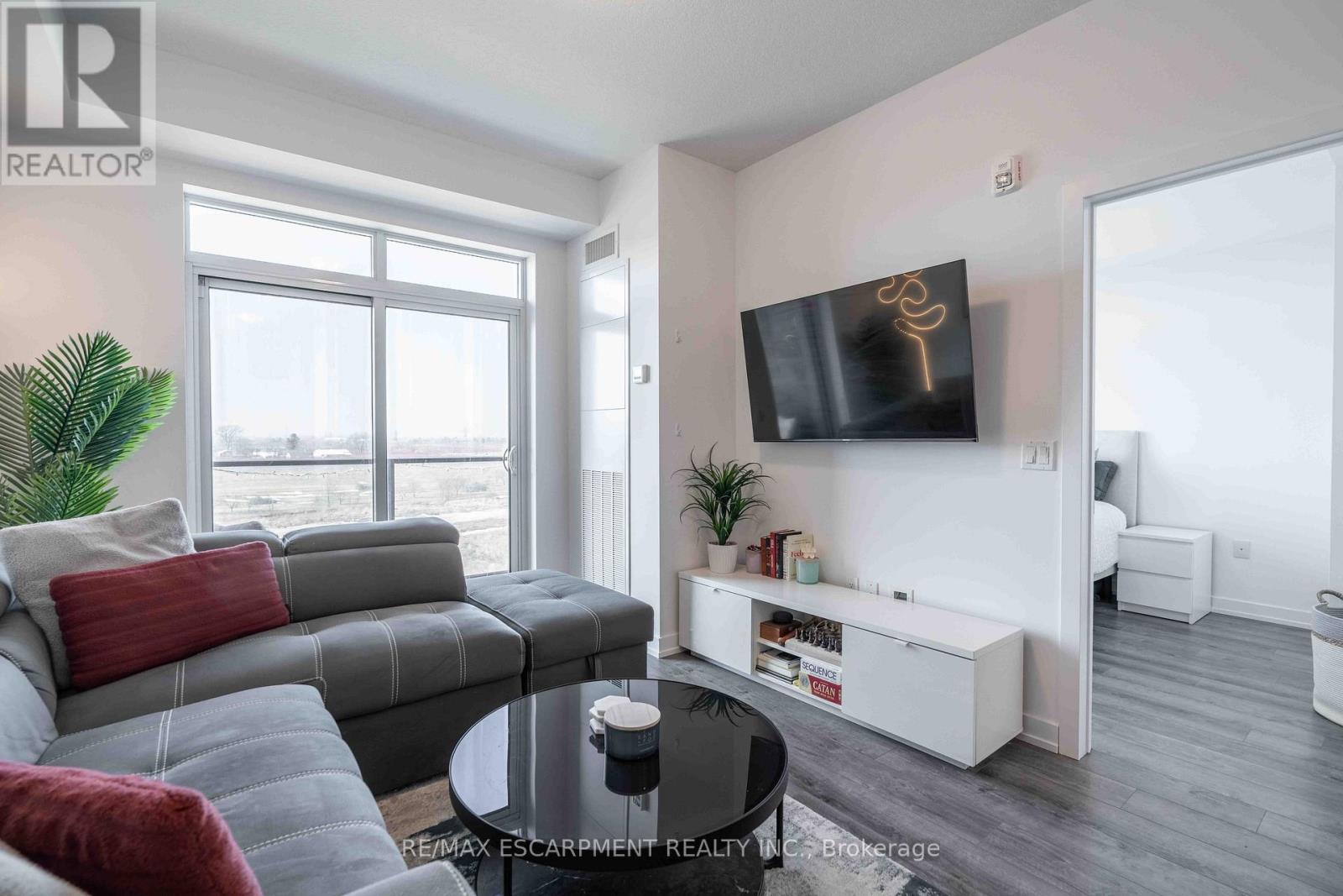 $393.62 MonthlyWelcome home to your spacious new condo in the highly desirable Utopia building in beautiful Beamsville. This stunning open-concept 1 bedroom+ den corner unit is loaded with upgrades including quartz countertops, stainless steel Whirlpool appliances, a breakfast bar, and luxury vinyl plank flooring throughout. Enjoy your morning coffee on the extended-length balcony with access from both the living room and the bedroom. The building offers fantastic amenities, including a party room, fitness room, rooftop terrace, and bike storage and features a state-of-the-art geothermal heating and cooling system designed to help keep utility costs low. Perfect for first-time buyers, downsizers, or investors, this unit is conveniently located close to the highway, shopping, restaurants, wineries, and the GO Station. Includes one owned locker and one owned underground parking space. (id:50787)