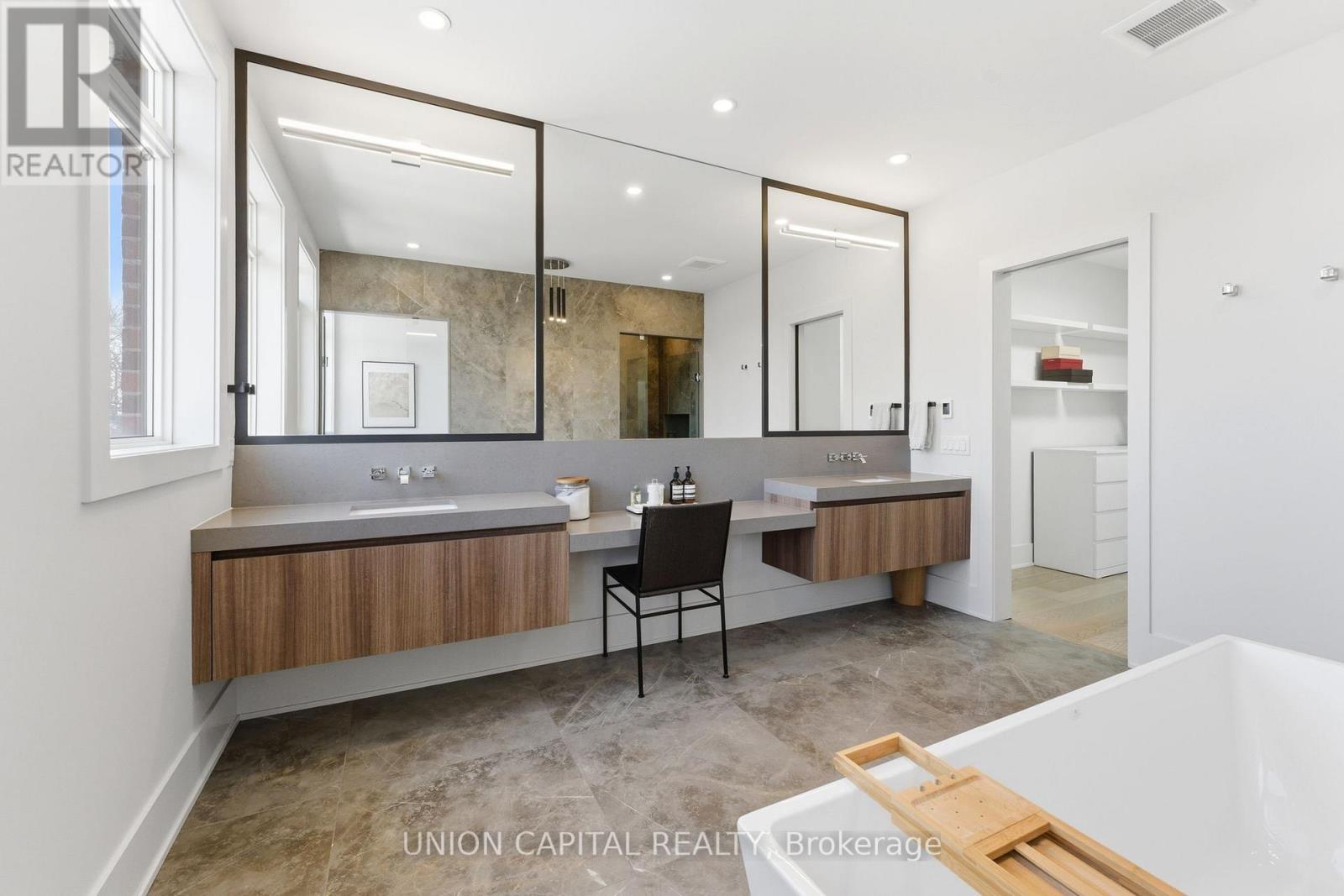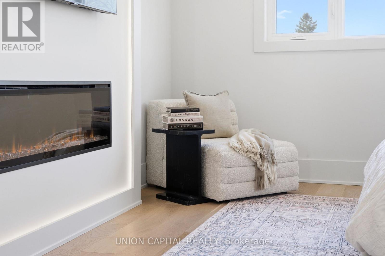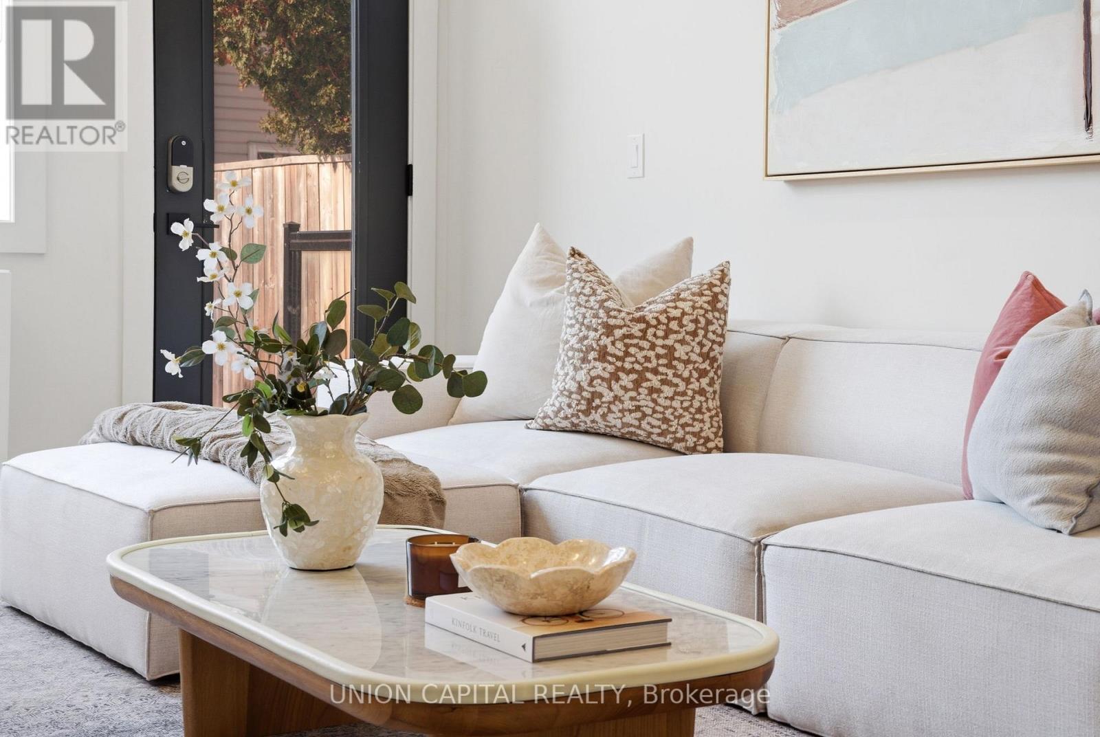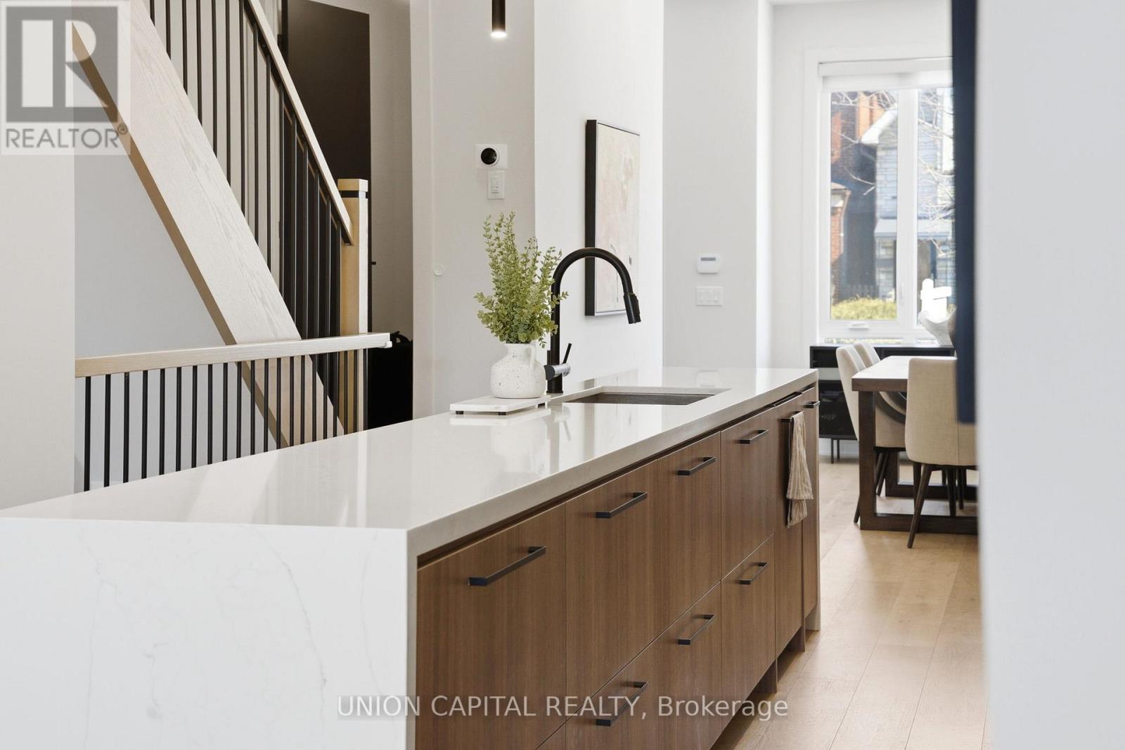 Welcome to this stunning custom-built home in the heart of Bloor West Village, offering over 3,000 sq ft of beautifully finished living space. This impressive 3 bedroom, 5-bathroom residence with a den on the second floor showcasing exceptional craftsmanship, luxury finishes, and a thoughtfully designed layout ideal for modern family living. The main floor features soaring ceilings, wide-plank hardwood floors, pot lights throughout, and an open-concept living and dining area anchored by a sleek linear fireplace with elegant cove lighting. The chef-inspired kitchen boasts custom cabinetry with hardrock maple interiors, Calacatta Vienna quartz countertops, a herringbone backsplash, built-in appliances, and a spacious centre island perfect for entertaining. Walk out to a generously sized private backyard with access to a 1.5 detached garage. The entire top floor is dedicated to a private primary retreat, complete with a luxurious full-floor ensuite and walk-in closet, creating a true sanctuary. Additional bedrooms are generously sized, complemented by a versatile den and convenient upper-level laundry. Fully finished basement with rough-ins for a kitchen and laundry with a separate entrance for extra income potential. Located steps to the shops, cafes, and restaurants of Bloor Street West, excellent schools, parks, Humber River trails, TTC, Jane Station, and easy access to the Gardiner, Hwy 427, and Sherway Gardens. (id:50787)