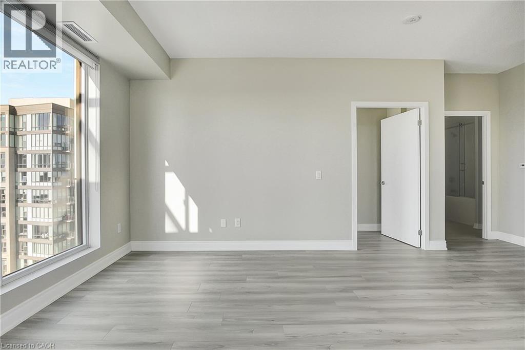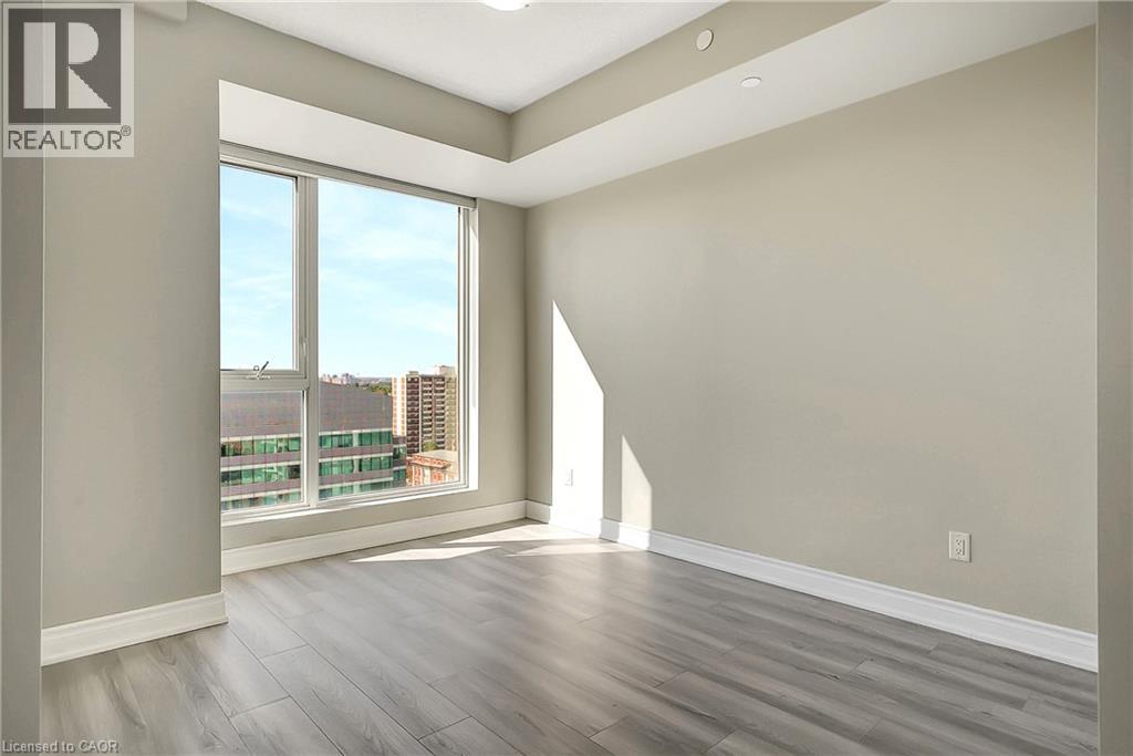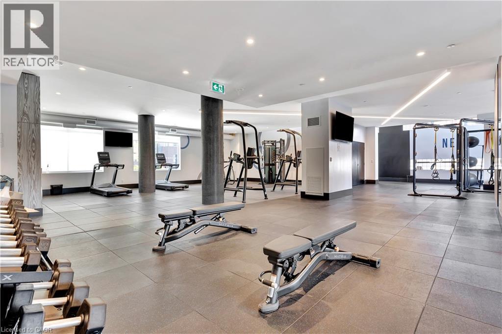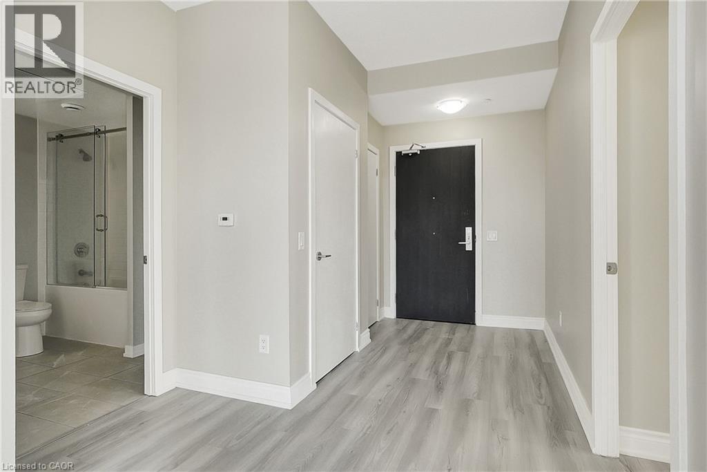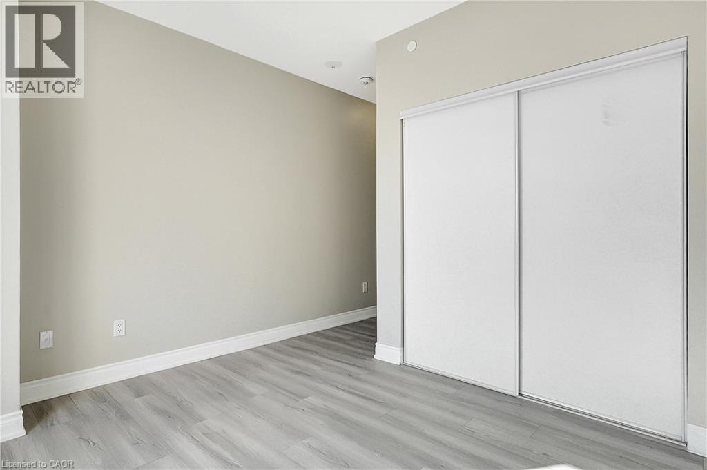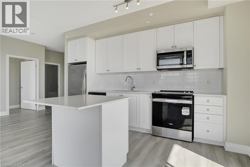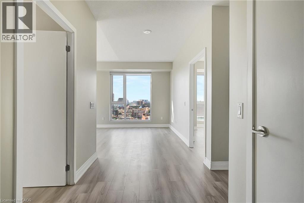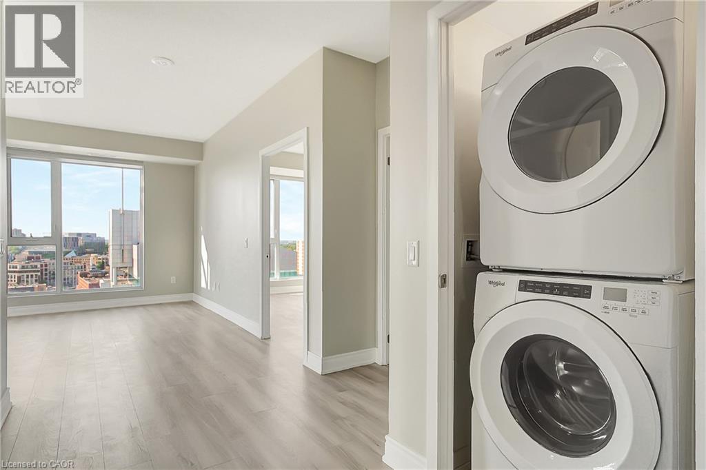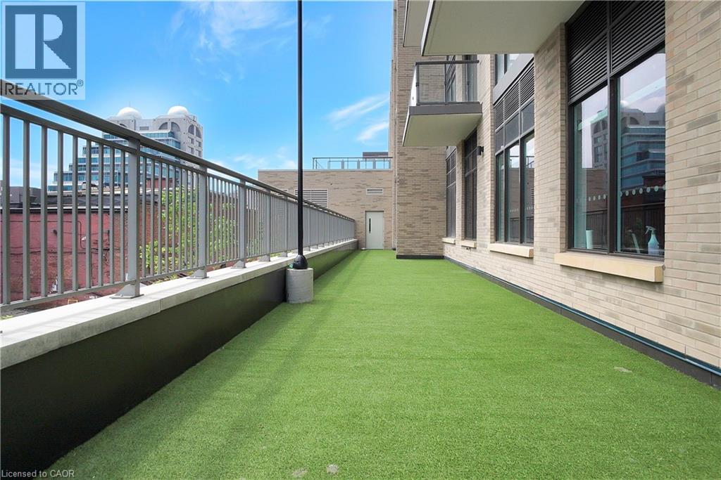 Experience elevated downtown living in this beautifully designed 2-bedroom, 2-bathroom condo in the heart of Kitchener. Offering 1,163 sq. ft. of bright, thoughtfully planned living space, this spacious unit features large windows that fill the home with natural light and showcase sweeping city views. The modern kitchen is both stylish and functional with quartz countertops, ample cabinetry, and a layout that flows seamlessly into the open living and dining areas, creating a comfortable space for everyday living or entertaining. Step outside to the impressive wrap-around balcony, providing plenty of room to relax and enjoy the skyline from multiple vantage points. Inside, upgraded flooring adds a polished feel throughout the unit, while the primary bedroom offers a well-appointed ensuite with a spacious walk-in shower. Ensuite laundry and a dedicated parking space add to the convenience. Located in one of Kitchener’s most connected neighbourhoods, this home places you just steps from the LRT, City Hall, Google, and the region’s thriving tech hub, along with an incredible selection of restaurants, cafés, and shops. Victoria Park is also nearby, offering beautiful green space and year-round events. Residents enjoy a wide range of amenities including a rooftop jogging track, fully equipped exercise room with spin bikes, outdoor yoga space, dog wash station, third-floor sun terrace, and a shared BBQ area. A fantastic opportunity to enjoy modern condo living in the centre of it all. (id:50787)