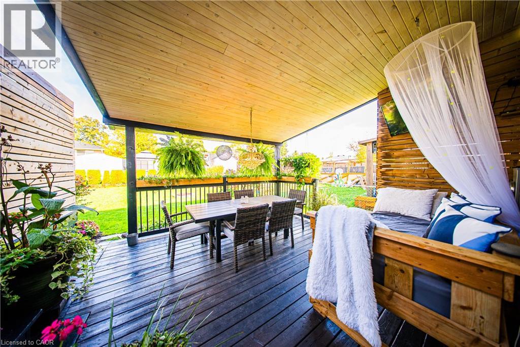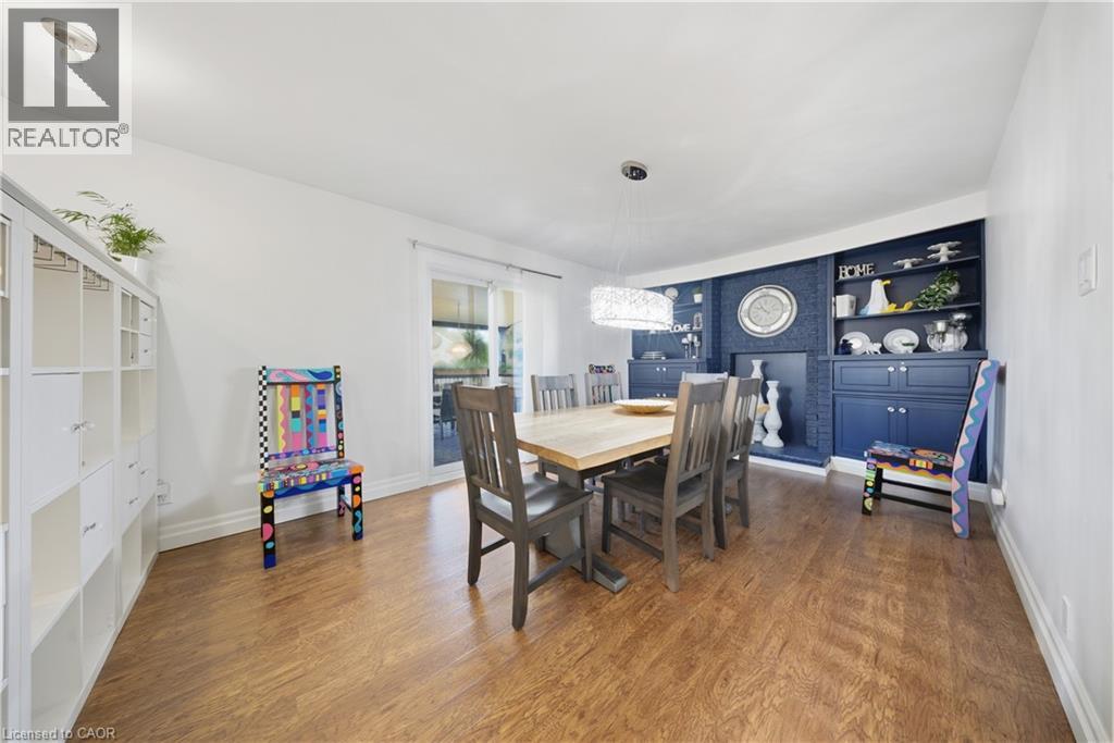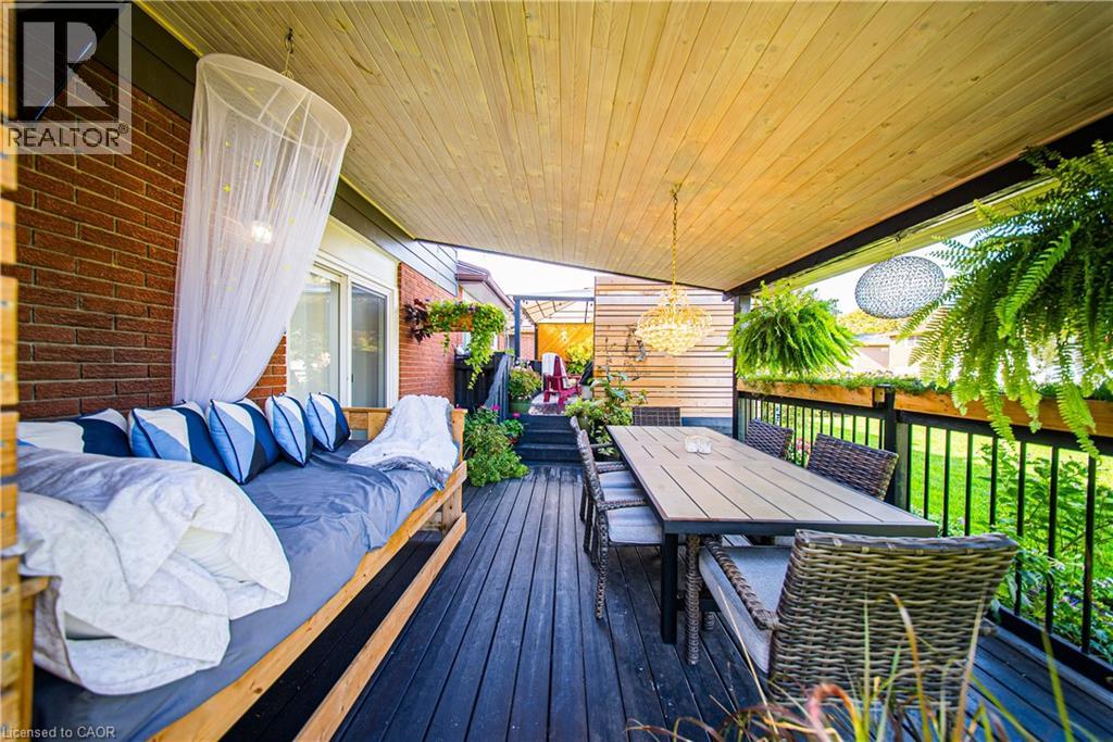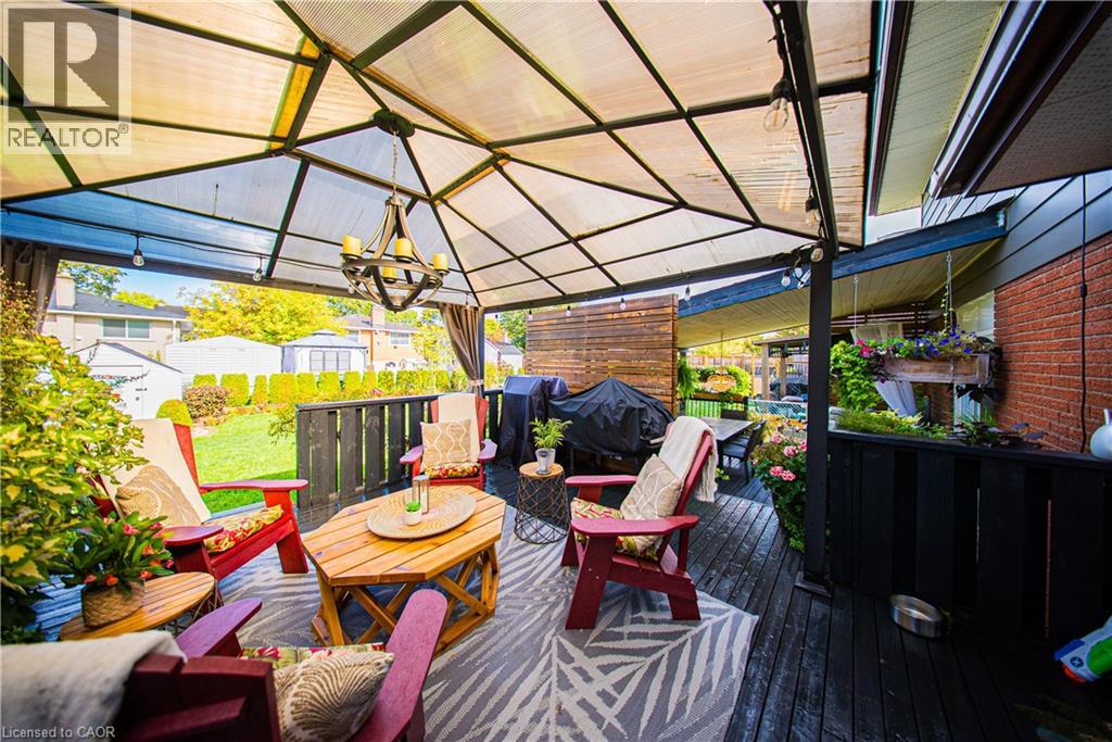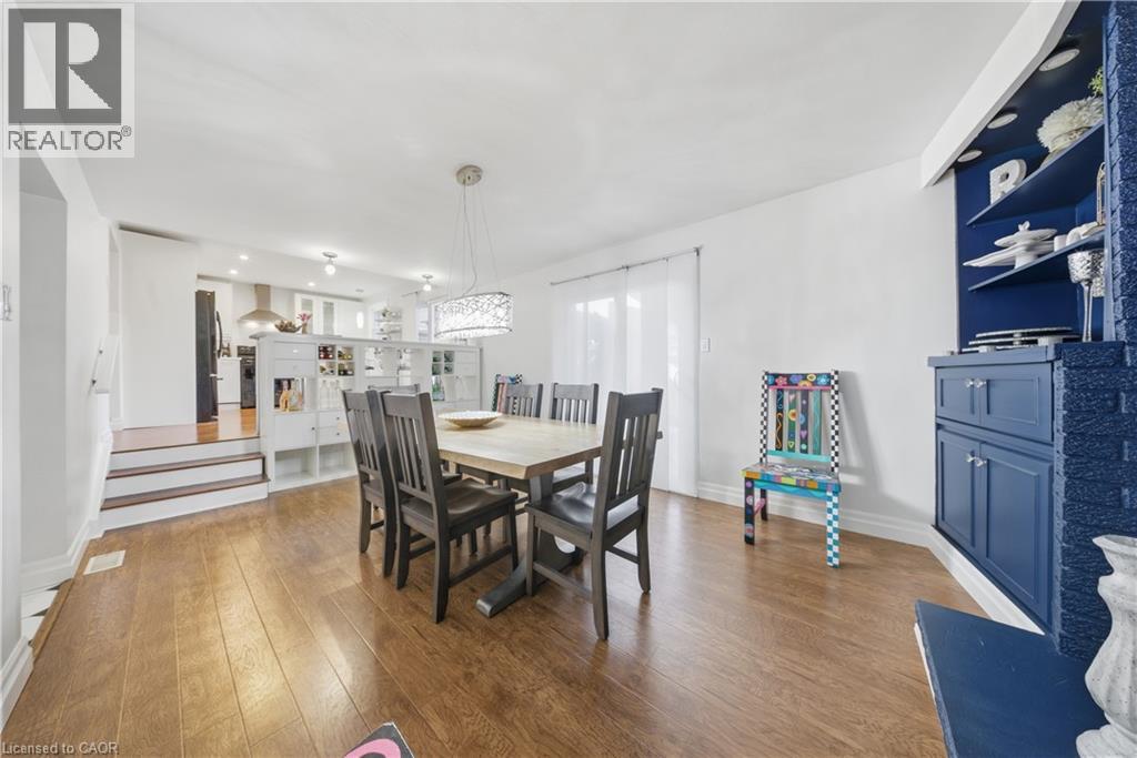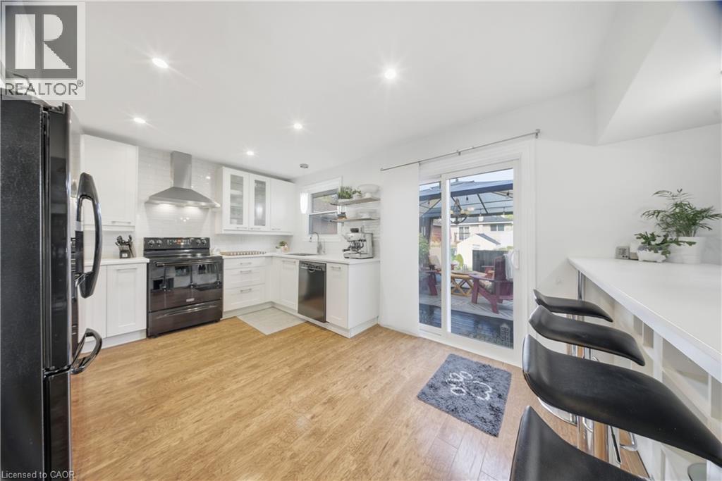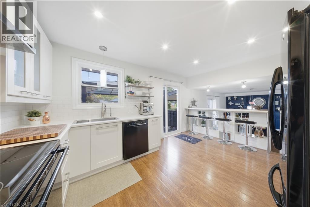 Welcome to this bright and spacious 3-bedroom, 2-bath sidesplit, ideally situated on a quiet street in a highly sought-after, family-oriented neighborhood. This home offers the perfect blend of comfort, style, and functionality. The main floor boasts a large, sun-filled living room and a fully renovated eat-in kitchen (2013) featuring modern finishes and a walkout to a stunning two-tiered deck—perfect for indoor-outdoor living. The adjacent family room, currently used as a dining area, provides flexible space and can easily be converted back to its original layout. Both the kitchen and family room feature sliding glass doors that open to a beautifully landscaped backyard. Upstairs, you’ll find three generously sized bedrooms and an updated bathroom. The primary bedroom includes a convenient walk-in closet, adding to the home’s thoughtful design. The fully finished basement offers excellent in-law suite potential, complete with a separate walkout entrance, above-grade windows, a modern 3-piece bathroom, dedicated office space, and a laundry area. Recent updates include an ESA-certified electrical panel (2018) and a new high-efficiency furnace (2024), ensuring peace of mind for years to come. Step outside to enjoy a professionally landscaped yard with mature perennial gardens and a fully fenced backyard—ideal for children, pets, or entertaining. Freshly painted throughout, this home is bright, clean, and truly move-in ready. (id:50787)