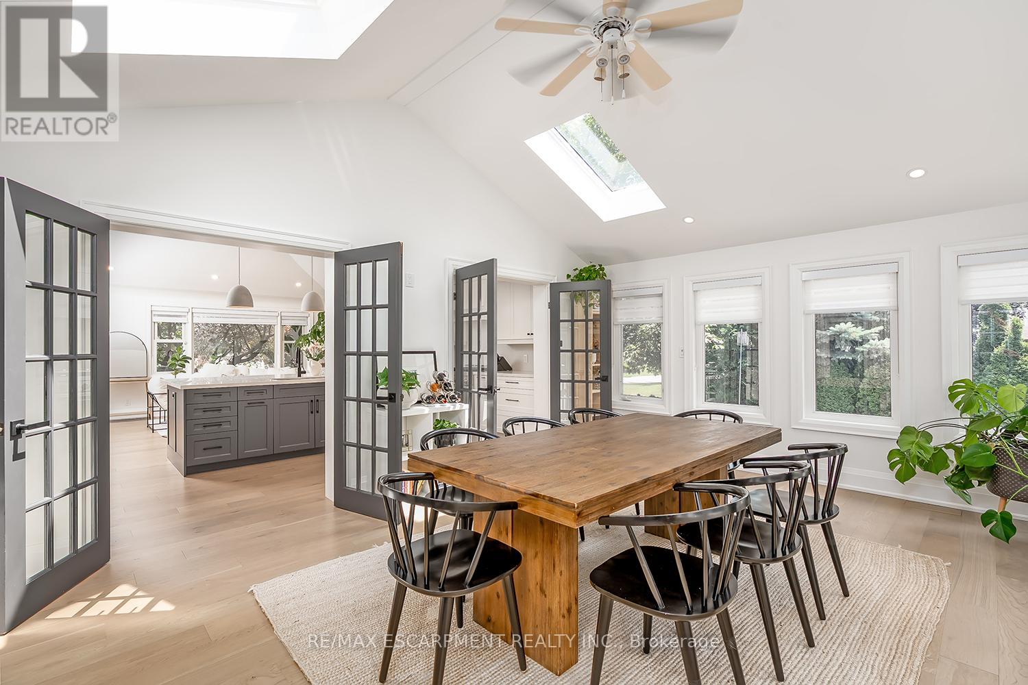 This incredible BUNGALOW in south Burlington has been extensively renovated and is move-in ready. Boasting top quality finishes and situated on a private lot, this home features 2+2 bedrooms, 3 full bathrooms and a double car garage! This home is located on a quiet street and is perfect for young families or empty nesters/retirees alike. Featuring a stunning open-concept floor plan, the main floor has smooth vaulted ceilings with pot lights and wide plank engineered hardwood flooring throughout. The amazing kitchen / dining room combination has 10.5-foot vaulted ceilings. The eat-in kitchen is wide open to the living room and features airy white custom cabinetry, a large accent island, quartz counters, gourmet stainless steel appliances and access to the large family room addition- with 11- foot vaulted ceilings and plenty of natural light. There are also 2 bedrooms, 2 fully renovated bathrooms and main floor laundry! The primary bedroom has a 4-piece ensuite with dual vanities, a walk-in shower and heated flooring. The finished lower level includes a large rec room, 3-piece bathroom with heated flooring, a bedroom, 2nd smaller bedroom, den and plenty of storage space! The exterior of the home has a private back / side yard with plenty of potential. There is a stone patio, pergola, large double car garage and a double driveway with parking for 6 cars! Situated in a quiet neighbourhood and close to all amenities- this home is completely move-in ready! (id:50787)