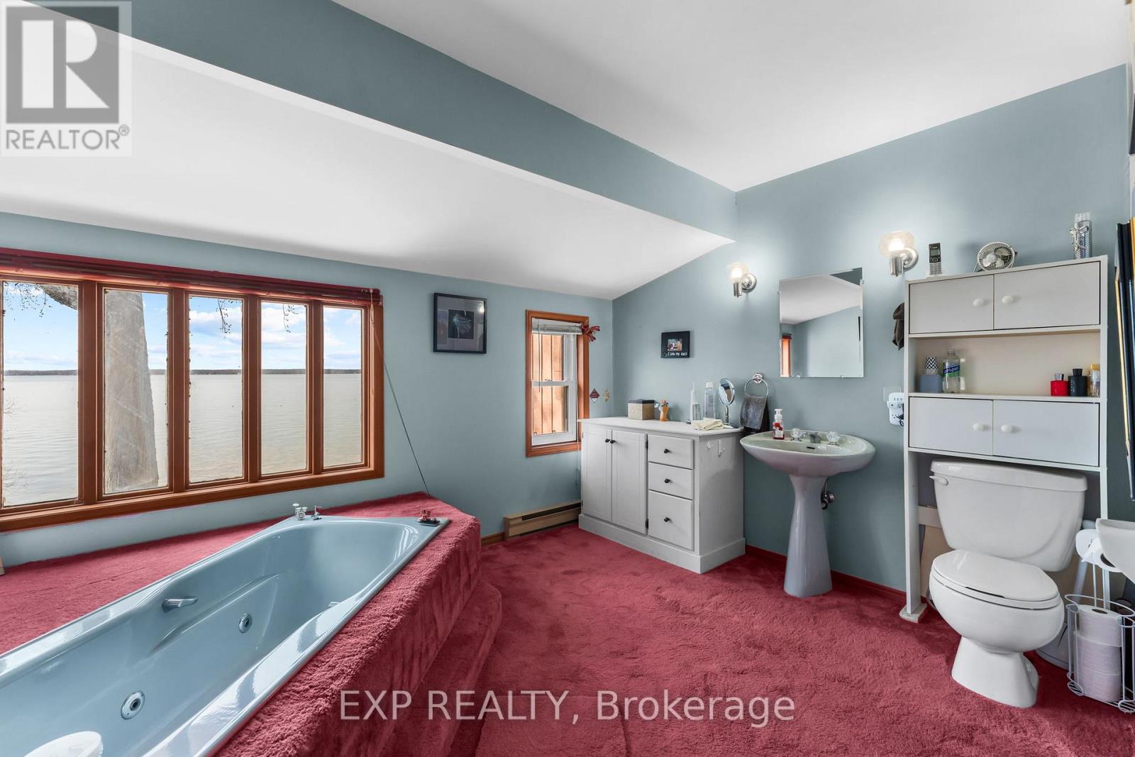 Experience the pinnacle of waterfront living at Duclos Point one of Georgina's most sought after areas. This direct lakefront retreat offers breathtaking sunset views over Lake Simcoe, complete with a retaining wall at the water's edge and the kind of natural beauty that simply cannot be replicated.The spacious 4-bedroom, 4-bathroom home spans 2,723 sq ft with a thoughtfully unique layout designed for both comfort and entertaining. The open-concept family and dining area is anchored by a wood-burning fireplace and framed by sweeping lake views, while the sunken living room adds an architectural charm rarely found at this price point. A dedicated home office walks out directly to the deck and waterfront - making working from home feel like a permanent vacation. The primary bedroom features a generous ensuite, and the finished basement rec room offers additional space for family, guests, or hobbies. A 2-car garage completes the package.Step outside your door and into the exclusive Duclos Point community, where an 8-acre private park awaits with tennis and pickleball courts, volleyball, a gazebo, playgrounds, and seasonal community events - all for just $300/year in membership fees.Just one hour from Toronto, this is the rare property that works as a year-round residence or the ultimate summer escape from city life. Whether you're watching the sun dip below the horizon from your deck or rallying on the courts with neighbours.Your waterfront lifestyle starts here. (id:50787)