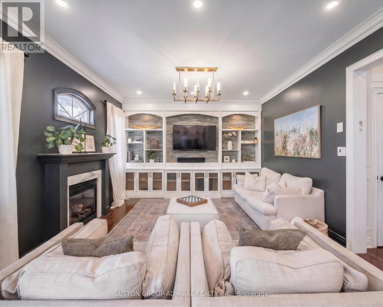 Extensively renovated showhome in the heart of sought-after Thornhill Woods. This beautifully maintained property offers 2,836 sq ft above grade + a fully finished bsmt, delivering over 4,000 sq ft of total luxury living space. Featuring exquisite crown moulding & wainscotting, smooth ceilings, pot lights, stunning light fixtures, u/g 24" tiles, designer paint & a secure front door w/ multipoint lock; this home exudes quality at every turn. The chef-inspired kosher kitchen is a standout, complete w/ high-end shaker-style solid wood cabinetry, Caesarstone counters & matching backsplash, pot filler, 2 oversized single-bowl sinks, gleaming gold hardware, soft-close drawers, pull-out pantry, spice rack, 2 lazy Susans, built-in charging station, pull-out recycling bins, under-valance LED lighting, & premium appliances. The main floor also features a bright living room w/ a cozy library space & an elegant formal dining room. The family room is anchored by a custom built-in wall unit w/ showcase lighting, as well as a gas fireplace, adding warmth & sophistication. Upstairs, 4 spacious bedrooms include upgraded closet organizers & custom drapery. The primary suite offers 2 closets (1 walk-in) & a stunning 6-piece ensuite w/ floating double vanity, frameless glass shower & 4'x2' porcelain tilework. The "Zen" main bath is equally impressive w/ frameless shower & natural-tone finishes, while the 2nd bdrm ensuite provides more eye-catching details. The finished basement extends the living space w/ premium vinyl flooring, a bedroom, office (w/ kitchen rough-in), 3-pc bath, dedicated home gym & a theatre room separated by a sleek glass partition. Dream laundry room w/ quartz counter, porcelain tiles & shaker cabs. Gorgeous curb appeal w/ fully interlocked driveway, stone steps, wrought iron hand rails, rear patio & lush landscaping. Close to North Thornhill Comunity Centre, Bakersfield PS, Stephen Lewis SS, numerous parks & restaurants. Minutes to Hwy's 7 & 407, GO Train & YR (id:50787)