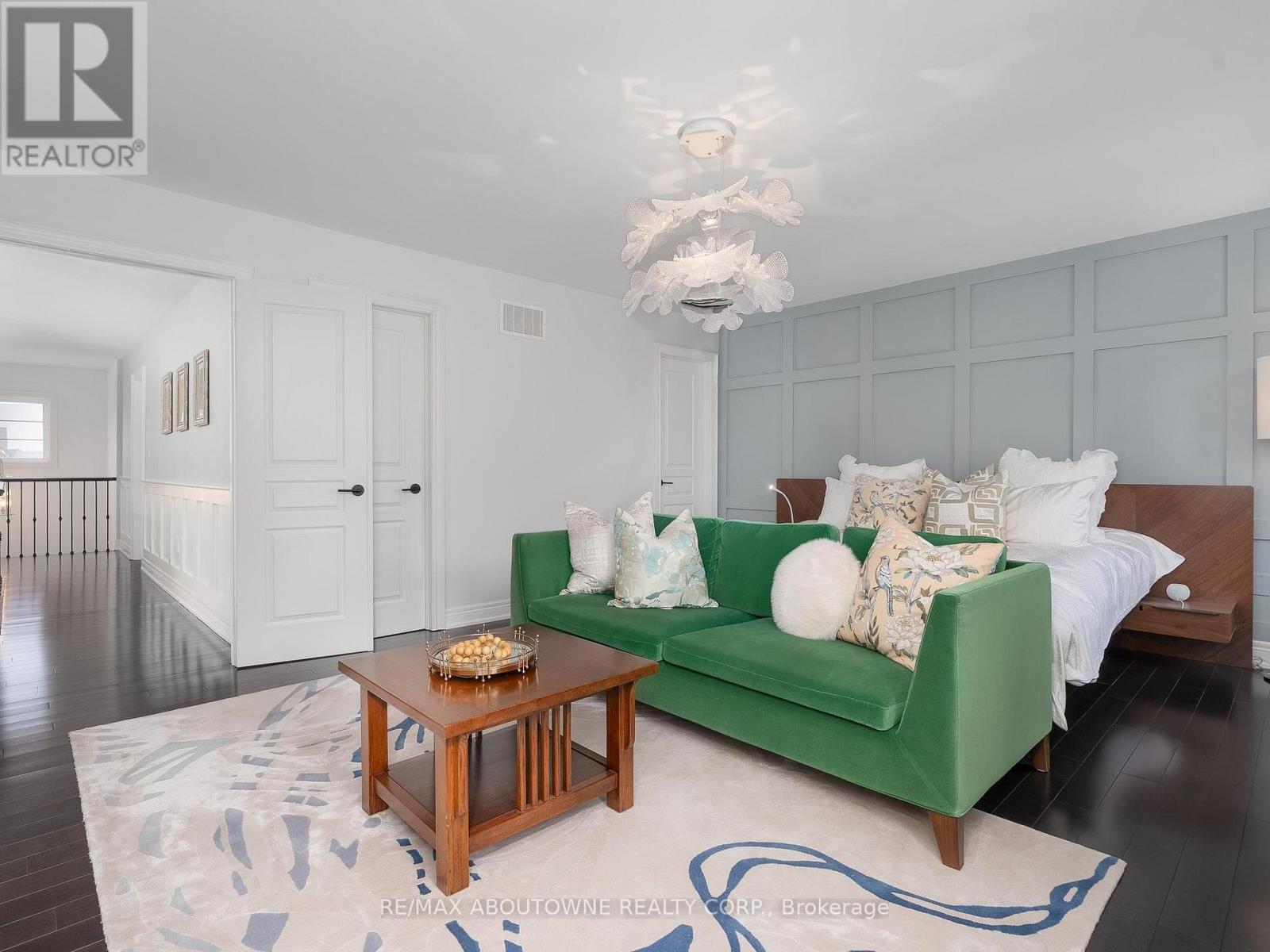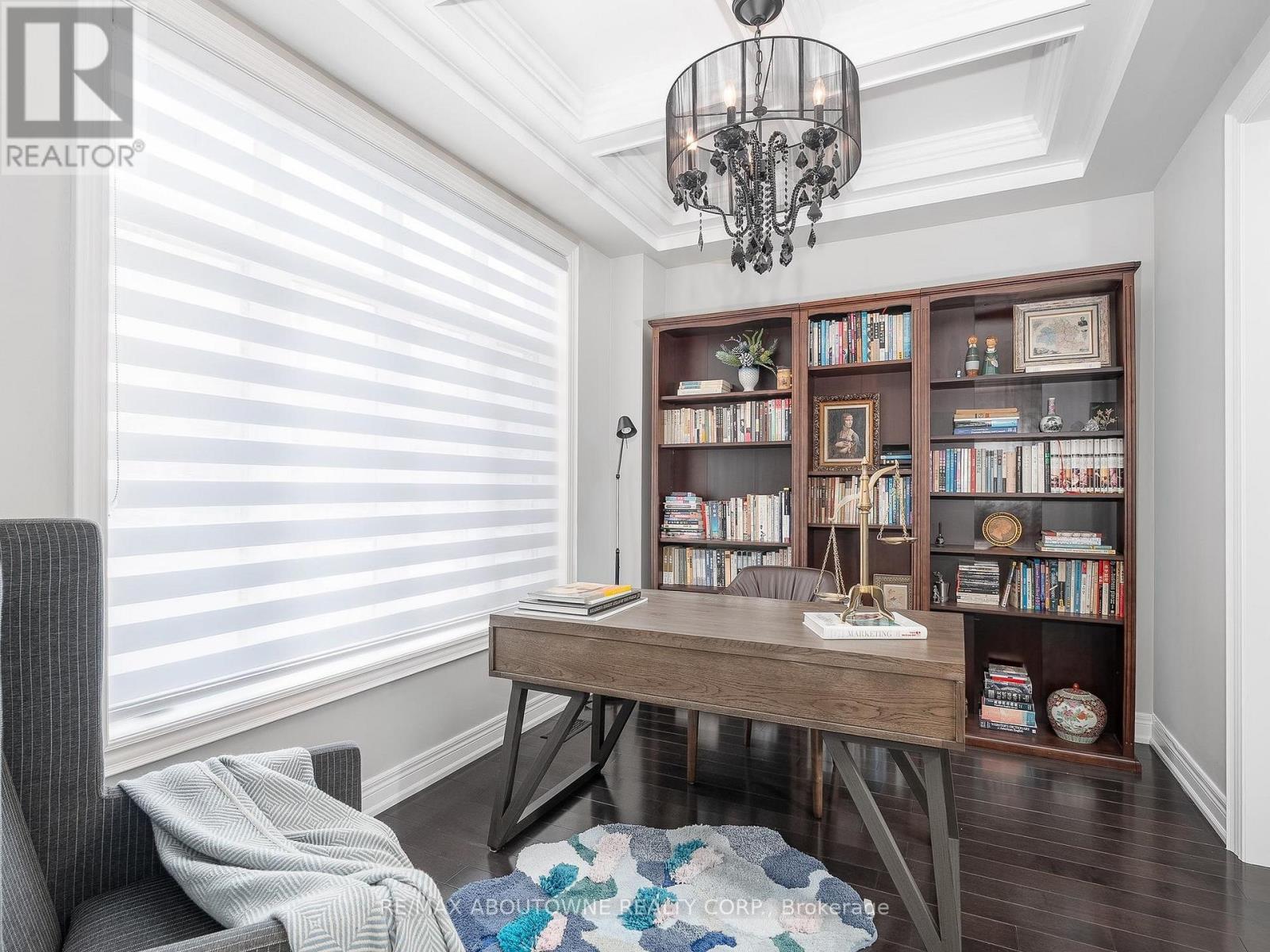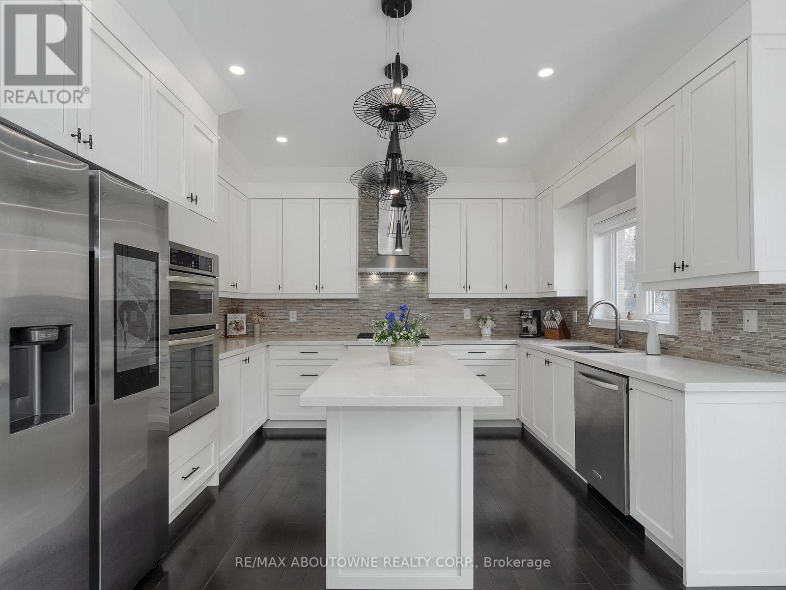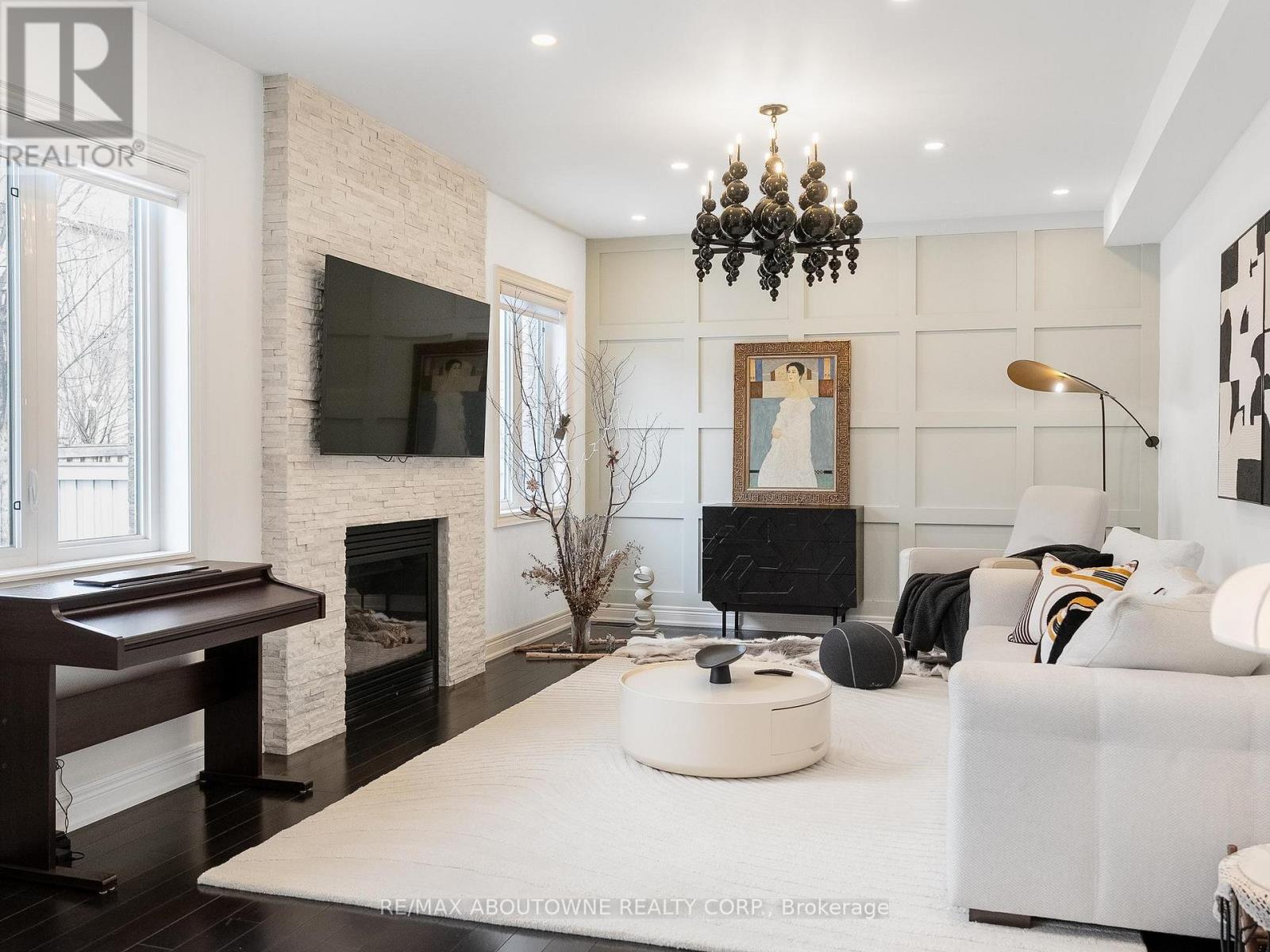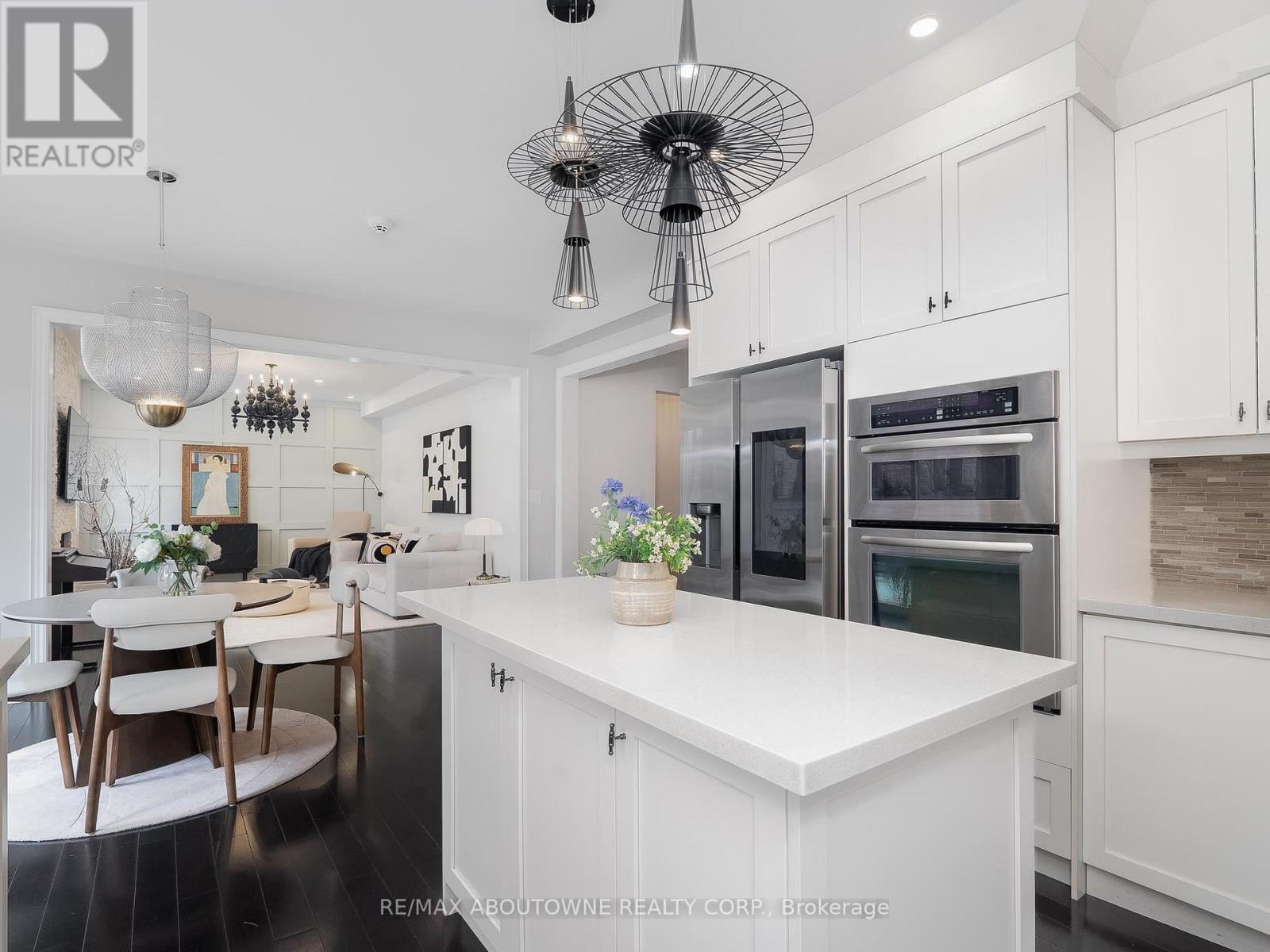 Meticulously Maintained Double Garage Detached Home With Approximately 4500 Sq. Ft Of Refined Living Space Featuring 4 Bedrooms, 4.5 Bathrooms, And A Professionally Finished Basement, Ideally Situated In Oakville's Prestigious Preserve Community. The Main Level Boasts Open-To-Above Foyer And Elegant Living Spaces, Including A Private Library/Den With Coffered Ceiling, Formal Living And Dining Rooms, And An Inviting Family Room Enhanced By Custom Designed Wall Panelling .The Chef's Kitchen Features Quartz Countertops, A Gas Cooktop, Built-In Stainless Steel Appliances And Premium Cabinetry. The Sun-Filled Breakfast Area Overlooks The Professionally Landscaped Japanese-Inspired Garden, Creating A Serene And Private Outdoor Retreat. Luxurious Primary Suite Accented With Designer Wall Paneling, Features His-And-Hers Walk-In Closets And A Spa-Inspired Five-Piece Ensuite Designed For Ultimate Comfort. Additional Bedrooms Feature Closets With Built-In Organizational Shelves For Style And Functionality. Professionally Finished Basement With Up To 9-Ft Ceilings Extends The Living Space With A Stylish Wet Bar (Easily Converted To A Second Kitchen), A Home Theatre/Media Room, And A Full Bathroom - Perfect For Hosting And Relaxation. Designer Artistic Light Fixtures Installed In 2025 Add A Distinctive Contemporary Touch Throughout The Home. Ideally Located On A Quiet Street , Within Walking Distance To Parks, Trails, Top-Rated Schools, And The Newly Expanded Sixteen Mile Community Centre. Minutes To Shopping, Public Transit, Major Highways, The Hospital, And All Essential Amenities. (id:50787)