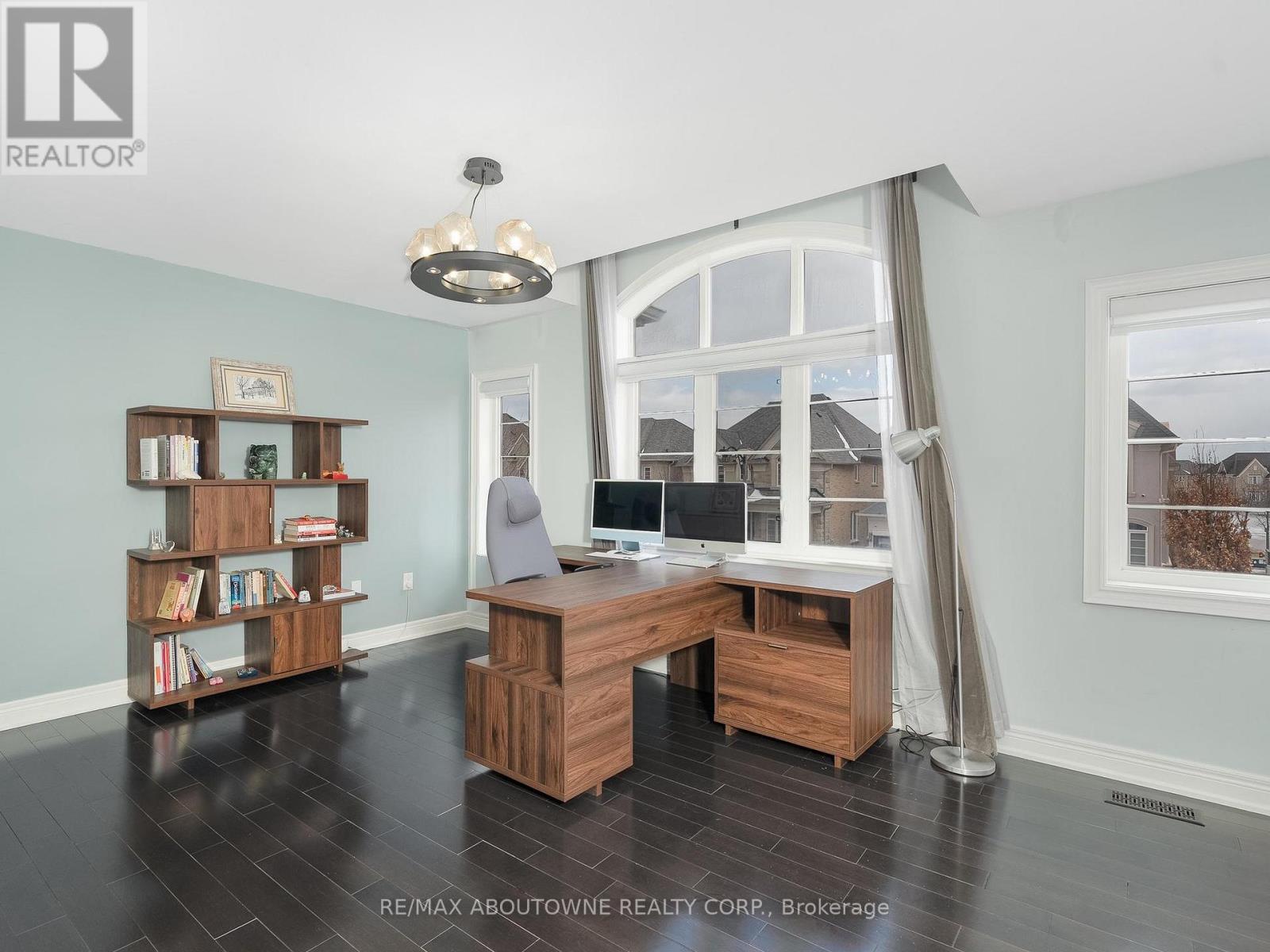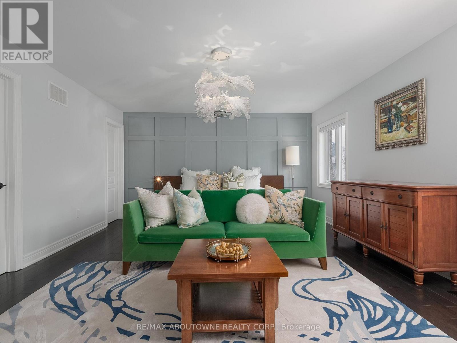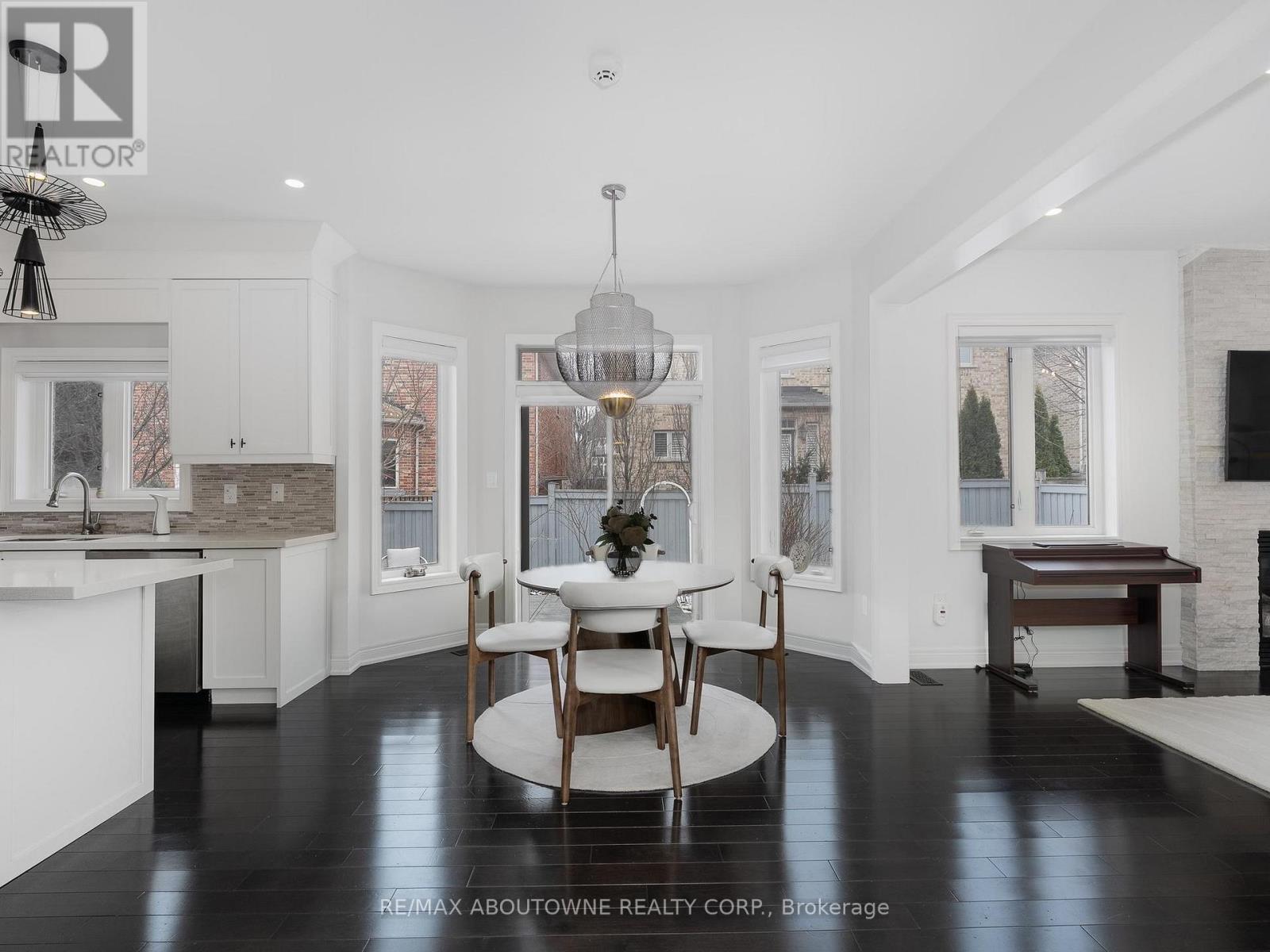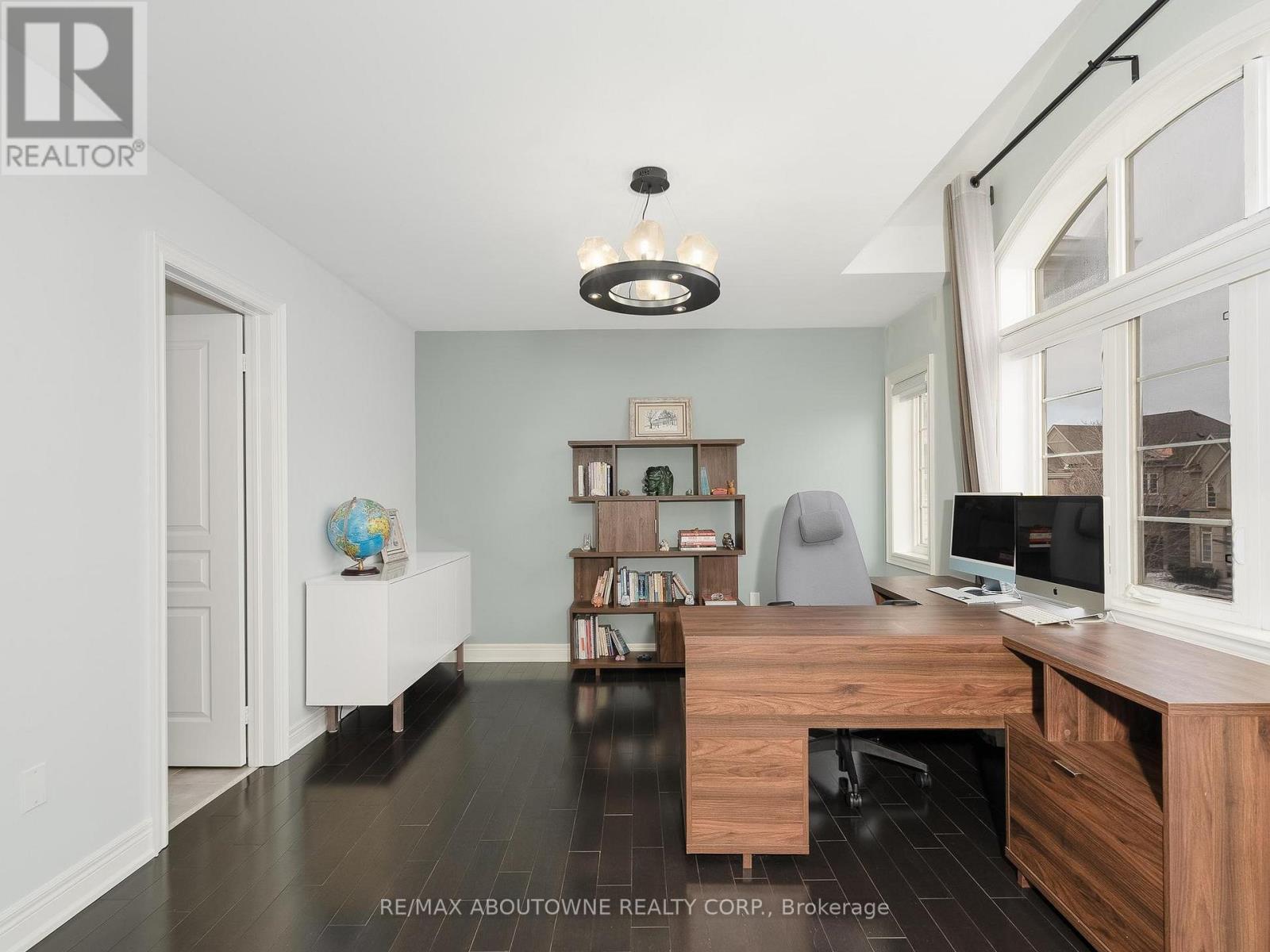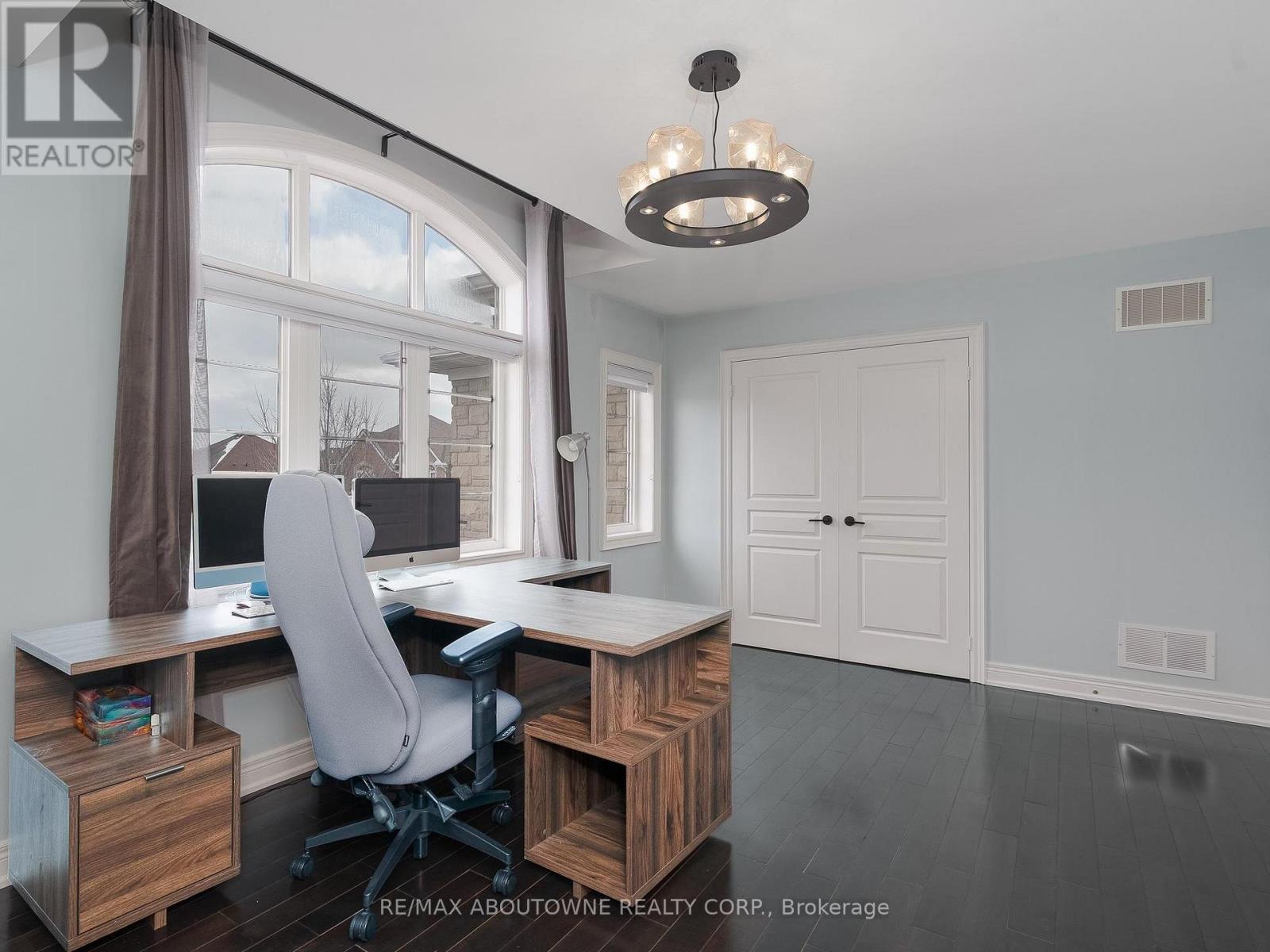 Meticulously Maintained Double Garage Detached Home With Approximately 4500 Sq. Ft Of Refined Living Space Featuring 4 Bedrooms, 4.5 Bathrooms, And A Professionally Finished Basement, Ideally Situated In Oakville's Prestigious Preserve Community. The Main Level Boasts Open-To-Above Foyer And Elegant Living Spaces, Including A Private Library/Den With Coffered Ceiling, Formal Living And Dining Rooms, And An Inviting Family Room Enhanced By Custom Designed Wall Panelling .The Chef's Kitchen Features Quartz Countertops, A Gas Cooktop, Built-In Stainless Steel Appliances And Premium Cabinetry. The Sun-Filled Breakfast Area Overlooks The Professionally Landscaped Japanese-Inspired Garden, Creating A Serene And Private Outdoor Retreat. Luxurious Primary Suite Accented With Designer Wall Paneling, Features His-And-Hers Walk-In Closets And A Spa-Inspired Five-Piece Ensuite Designed For Ultimate Comfort. Additional Bedrooms Feature Closets With Built-In Organizational Shelves For Style And Functionality. Professionally Finished Basement With Up To 9-Ft Ceilings Extends The Living Space With A Stylish Wet Bar (Easily Converted To A Second Kitchen), A Home Theatre/Media Room, And A Full Bathroom - Perfect For Hosting And Relaxation. Designer Artistic Light Fixtures Installed In 2025 Add A Distinctive Contemporary Touch Throughout The Home. Ideally Located On A Quiet Street , Within Walking Distance To Parks, Trails, Top-Rated Schools, And The Newly Expanded Sixteen Mile Community Centre. Minutes To Shopping, Public Transit, Major Highways, The Hospital, And All Essential Amenities. (id:50787)