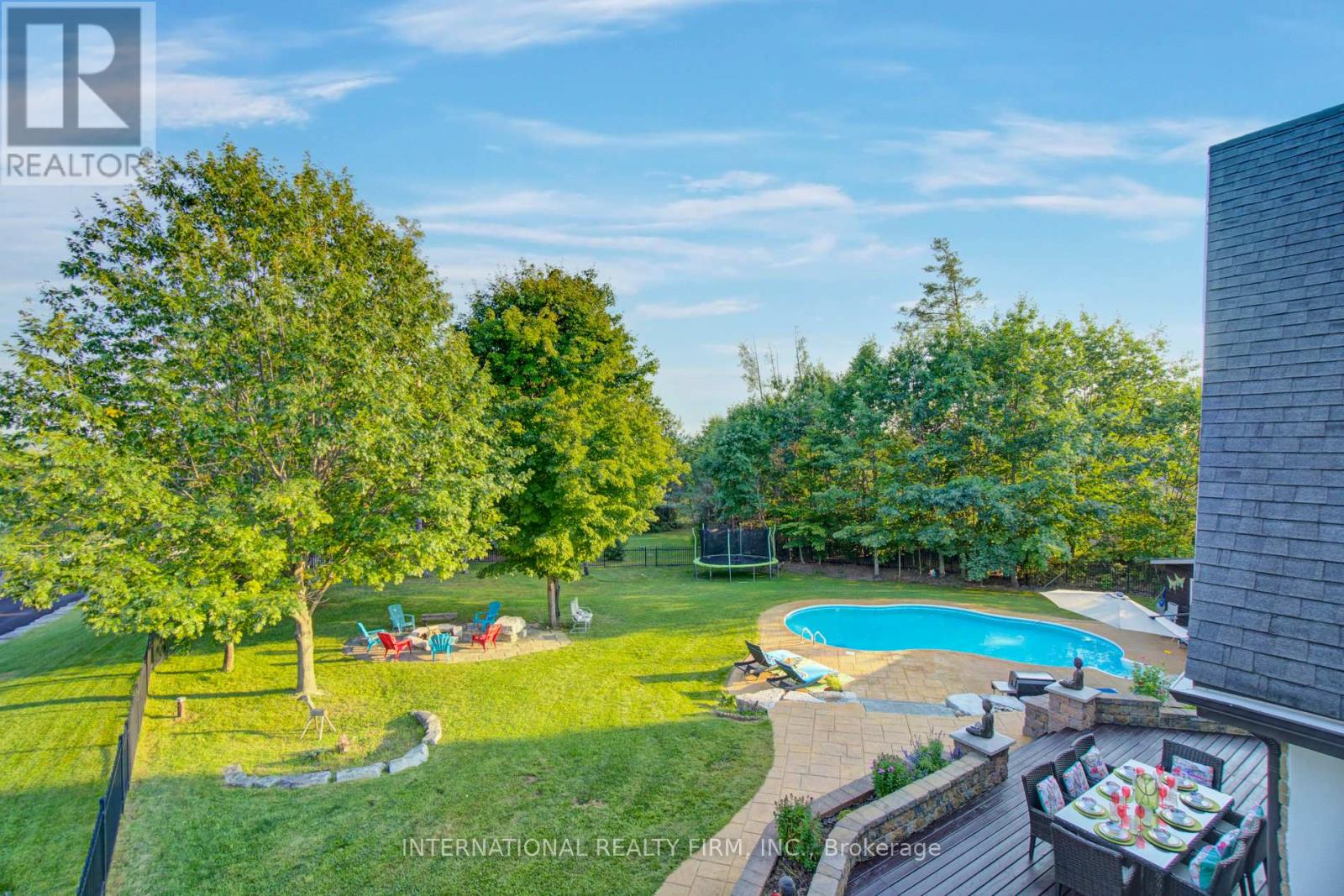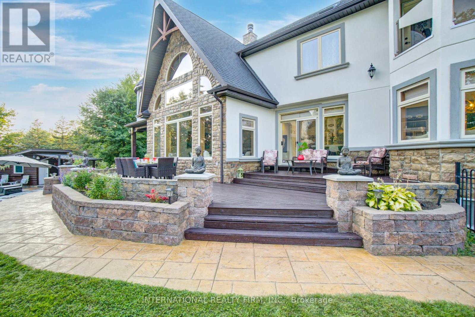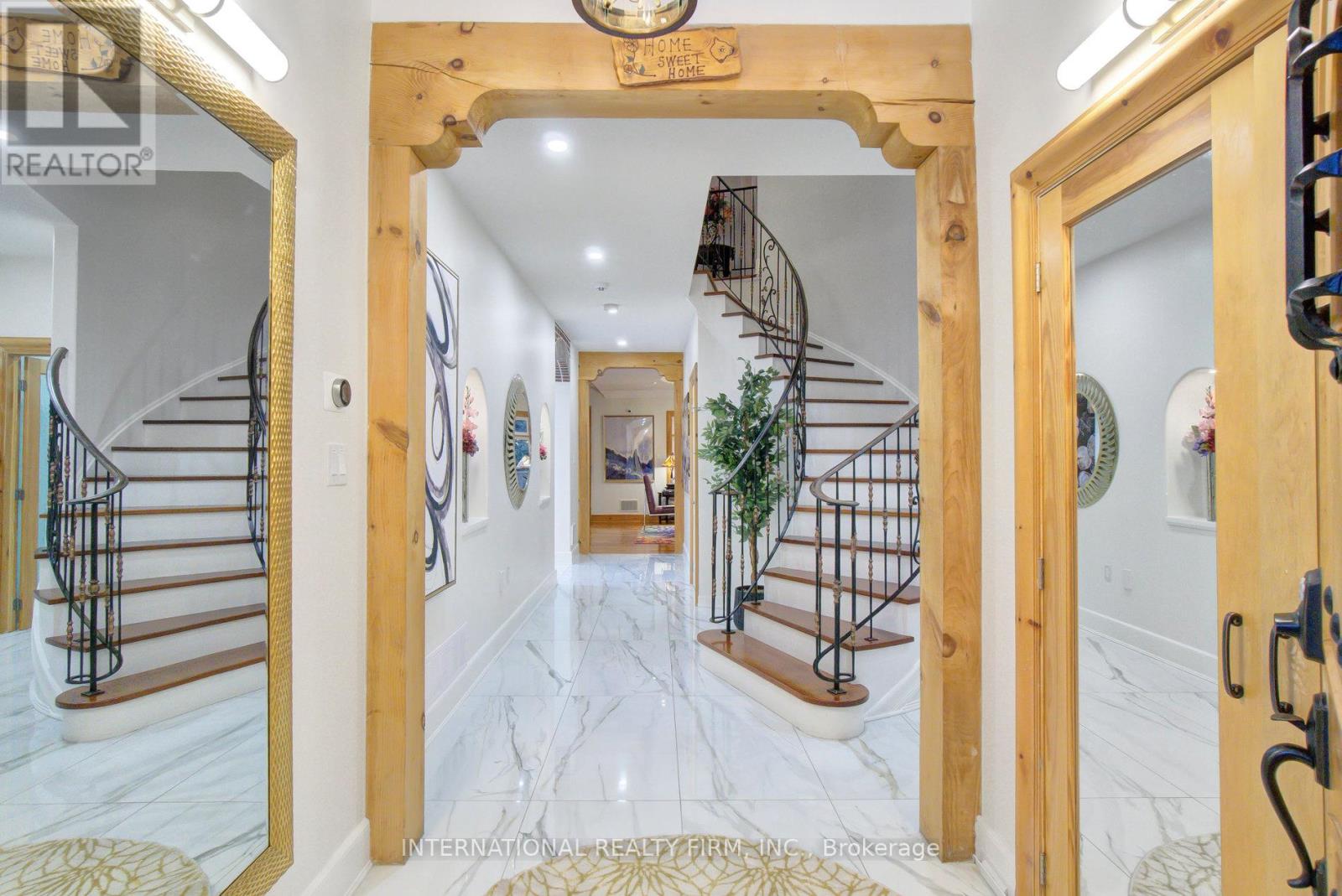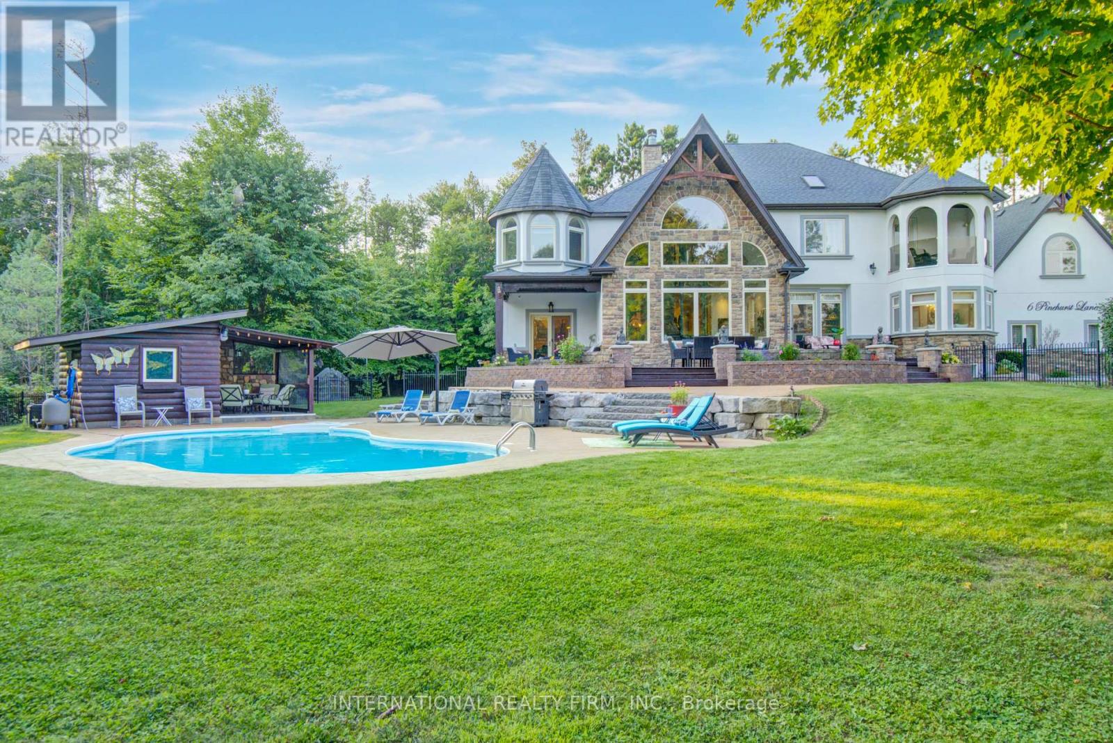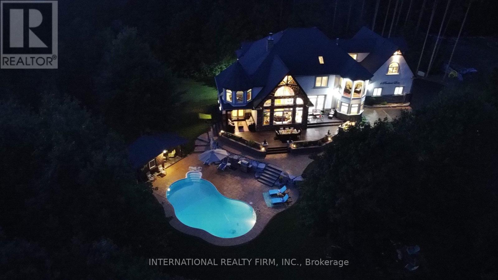 Experience the ultimate retreat in this stunning custom-built estate, perfectly positioned on a private 1.62-acre lot just minutes from Barrie. Designed for the move-up buyer seeking space and sophistication, this residence offers over 7,000 square ft of high-end living space that functions as both a grand entertaining venue and a private family sanctuary. Step into a breathtaking two-storey foyer, where polished porcelain floors meet a signature chandelier. The heart of the home is the massive Great Room, where 24-ft cathedral ceilings and a double-sided stone fireplace meet a wall of panoramic windows overlooking your private "Pool Paradise"-a spectacular backyard oasis featuring a saltwater pool, pool house, and lush professional landscaping. The chef's kitchen is a showstopper, anchored by a 12x5 Ft quartz island and top-of-the-line stainless appliances. Detailed with brick arches, pine beams, and a dedicated butler's bar and baking station, it is a dream space for hosting. An elegant dining room awaits your next dinner party, paired with a "Zen-like" family room perfect for quiet evenings. The primary suite is a true luxury retreat, featuring its own fireplace, a private Juliette balcony, and a spa-style ensuite with heated floors and a deep-soaking Jacuzzi. The home's unique character continues to the second floor with an elevator lift, a built-in library, and a spectacular octagonal room featuring soaring cathedral ceilings. Designed for versatility, the property includes an ultra-convenient 2nd-floor laundry, a contemporary guest suite with its own kitchenette and ensuite, plus a massive lower level featuring a gym, dance studio, and billiards room. Outside, the 1.64-acre grounds are fully fenced for privacy, featuring a circular driveway with parking for 13 cars and a 3-car garage with 14-ft ceilings. Nestled on a quiet cul-de-sac only 10 minutes from Barrie and 25 minutes from Wasaga Beach, this is the definitive 4-season estate for the discerning buye (id:50787)