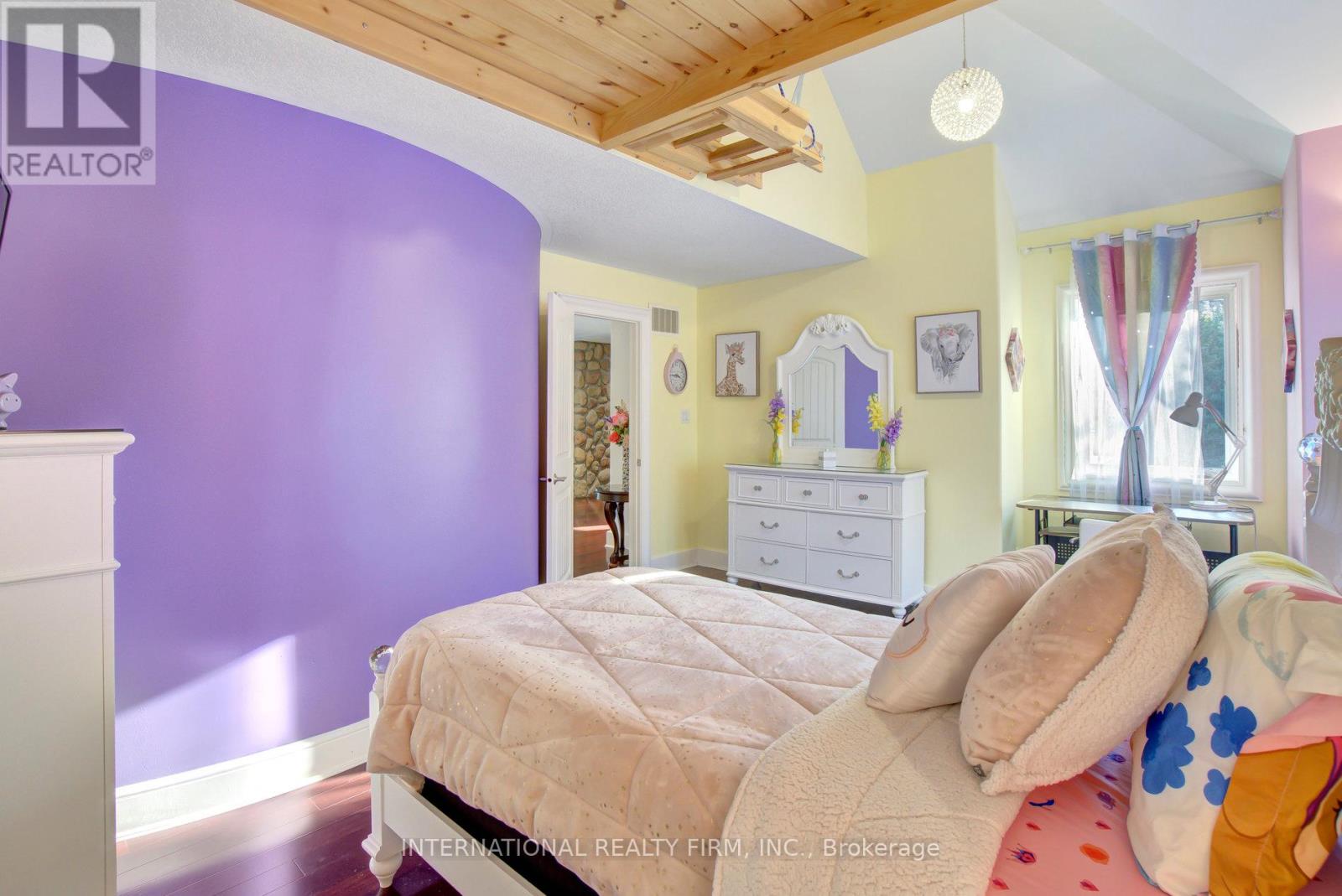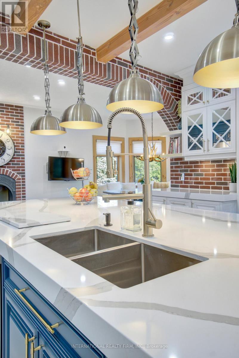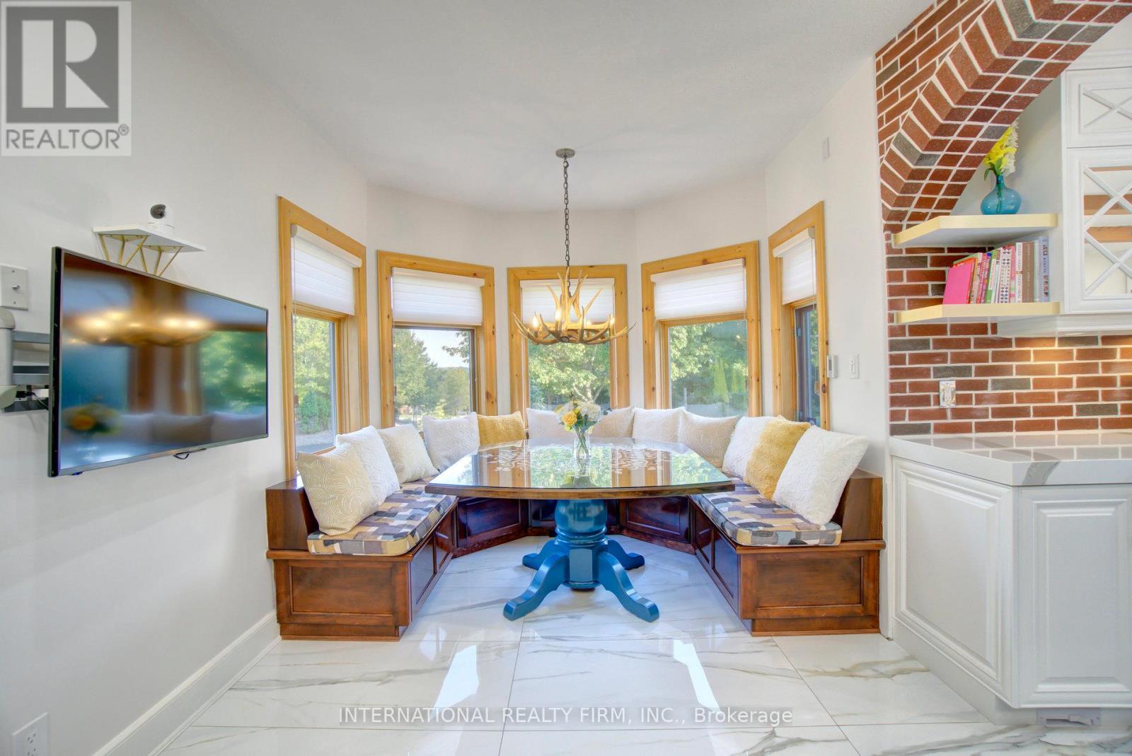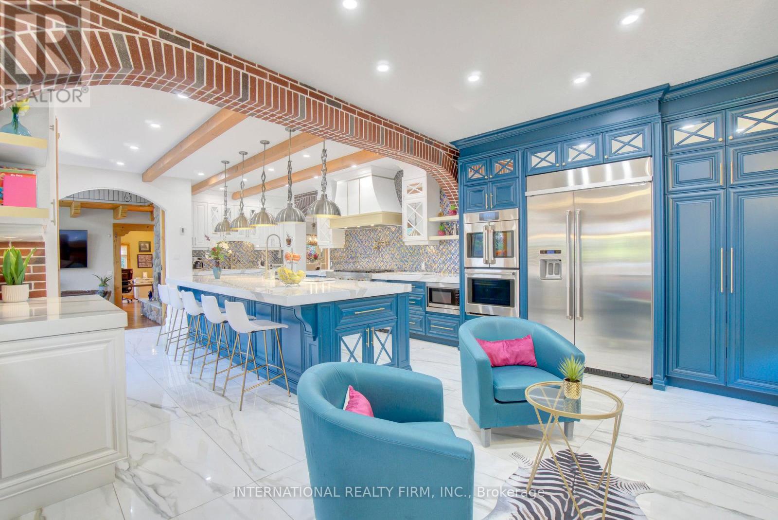 Experience the ultimate retreat in this stunning custom-built estate, perfectly positioned on a private 1.62-acre lot just minutes from Barrie. Designed for the move-up buyer seeking space and sophistication, this residence offers over 7,000 square ft of high-end living space that functions as both a grand entertaining venue and a private family sanctuary. Step into a breathtaking two-storey foyer, where polished porcelain floors meet a signature chandelier. The heart of the home is the massive Great Room, where 24-ft cathedral ceilings and a double-sided stone fireplace meet a wall of panoramic windows overlooking your private "Pool Paradise"-a spectacular backyard oasis featuring a saltwater pool, pool house, and lush professional landscaping. The chef's kitchen is a showstopper, anchored by a 12x5 Ft quartz island and top-of-the-line stainless appliances. Detailed with brick arches, pine beams, and a dedicated butler's bar and baking station, it is a dream space for hosting. An elegant dining room awaits your next dinner party, paired with a "Zen-like" family room perfect for quiet evenings. The primary suite is a true luxury retreat, featuring its own fireplace, a private Juliette balcony, and a spa-style ensuite with heated floors and a deep-soaking Jacuzzi. The home's unique character continues to the second floor with an elevator lift, a built-in library, and a spectacular octagonal room featuring soaring cathedral ceilings. Designed for versatility, the property includes an ultra-convenient 2nd-floor laundry, a contemporary guest suite with its own kitchenette and ensuite, plus a massive lower level featuring a gym, dance studio, and billiards room. Outside, the 1.64-acre grounds are fully fenced for privacy, featuring a circular driveway with parking for 13 cars and a 3-car garage with 14-ft ceilings. Nestled on a quiet cul-de-sac only 10 minutes from Barrie and 25 minutes from Wasaga Beach, this is the definitive 4-season estate for the discerning buye (id:50787)